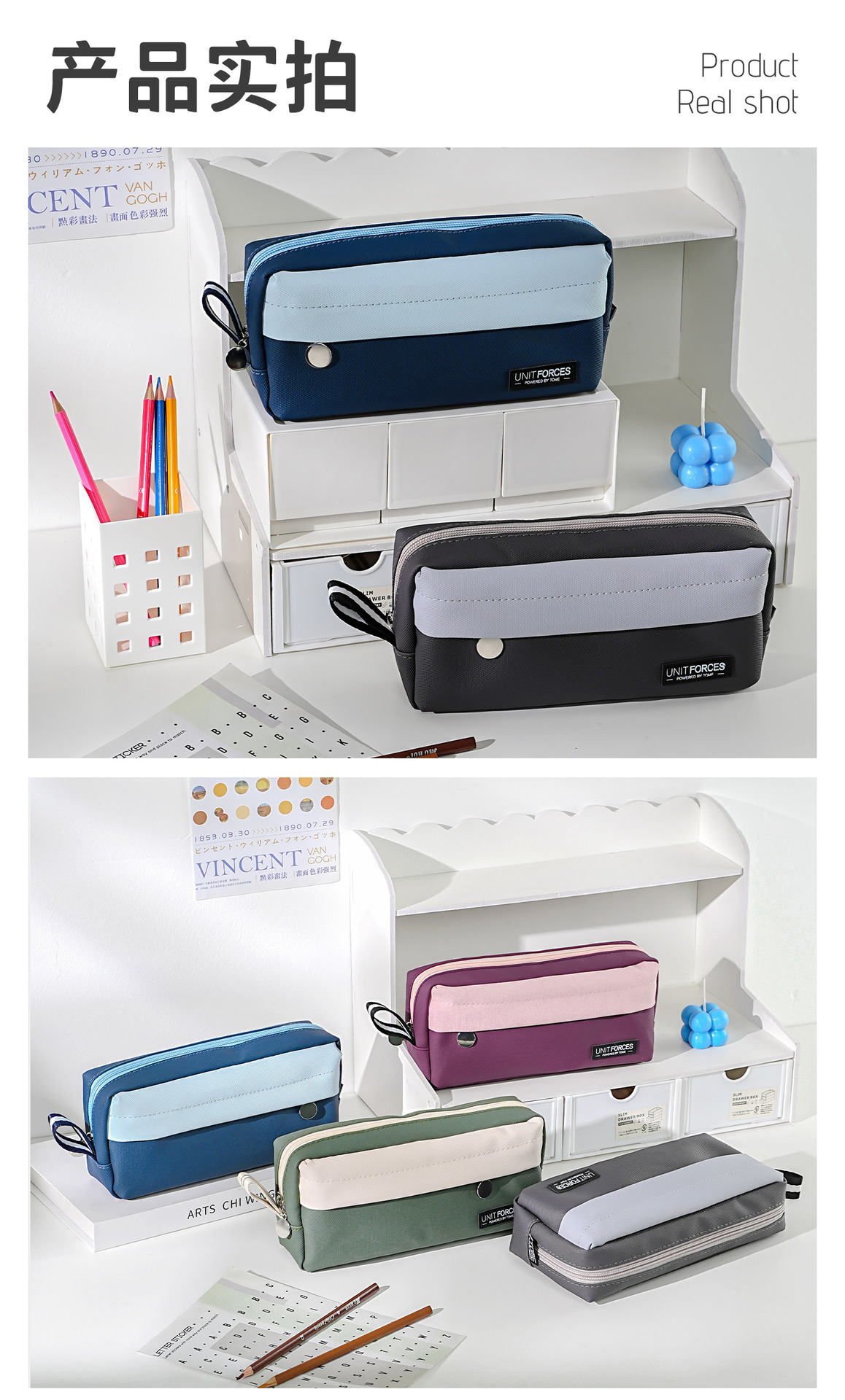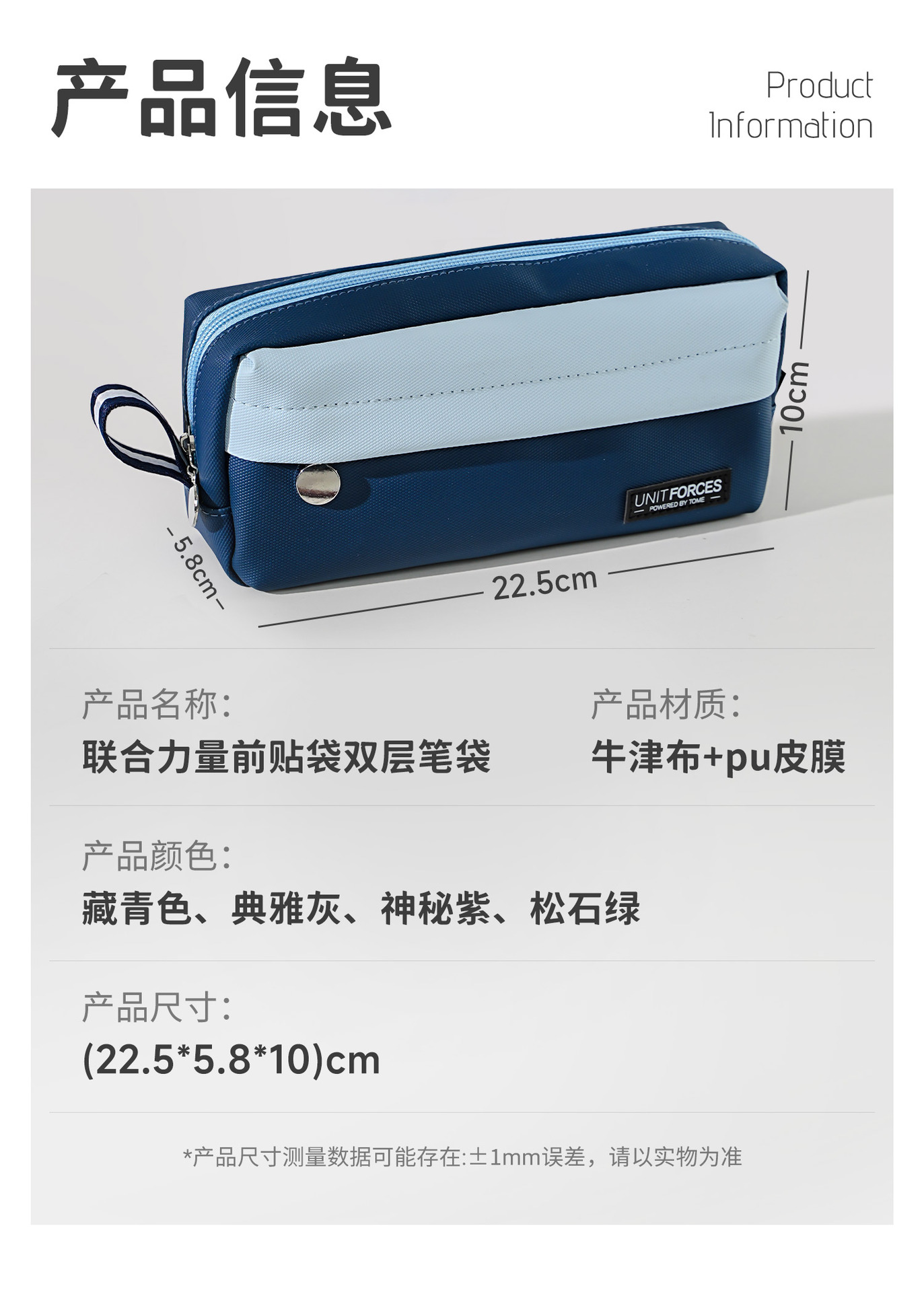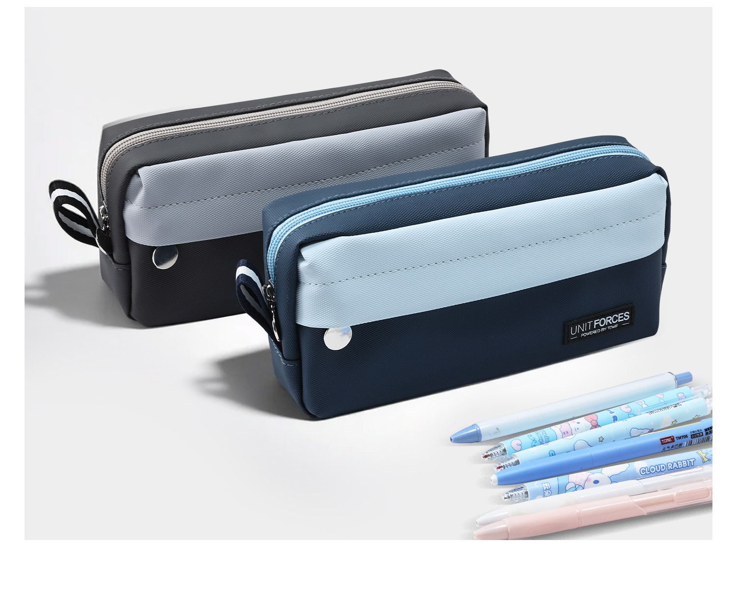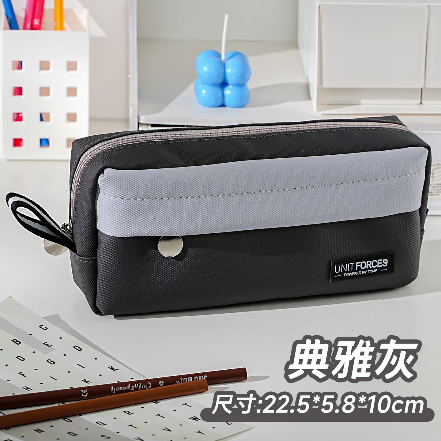 • United Power 전면 패치 포켓 PU 필통 - 우아한 그레이