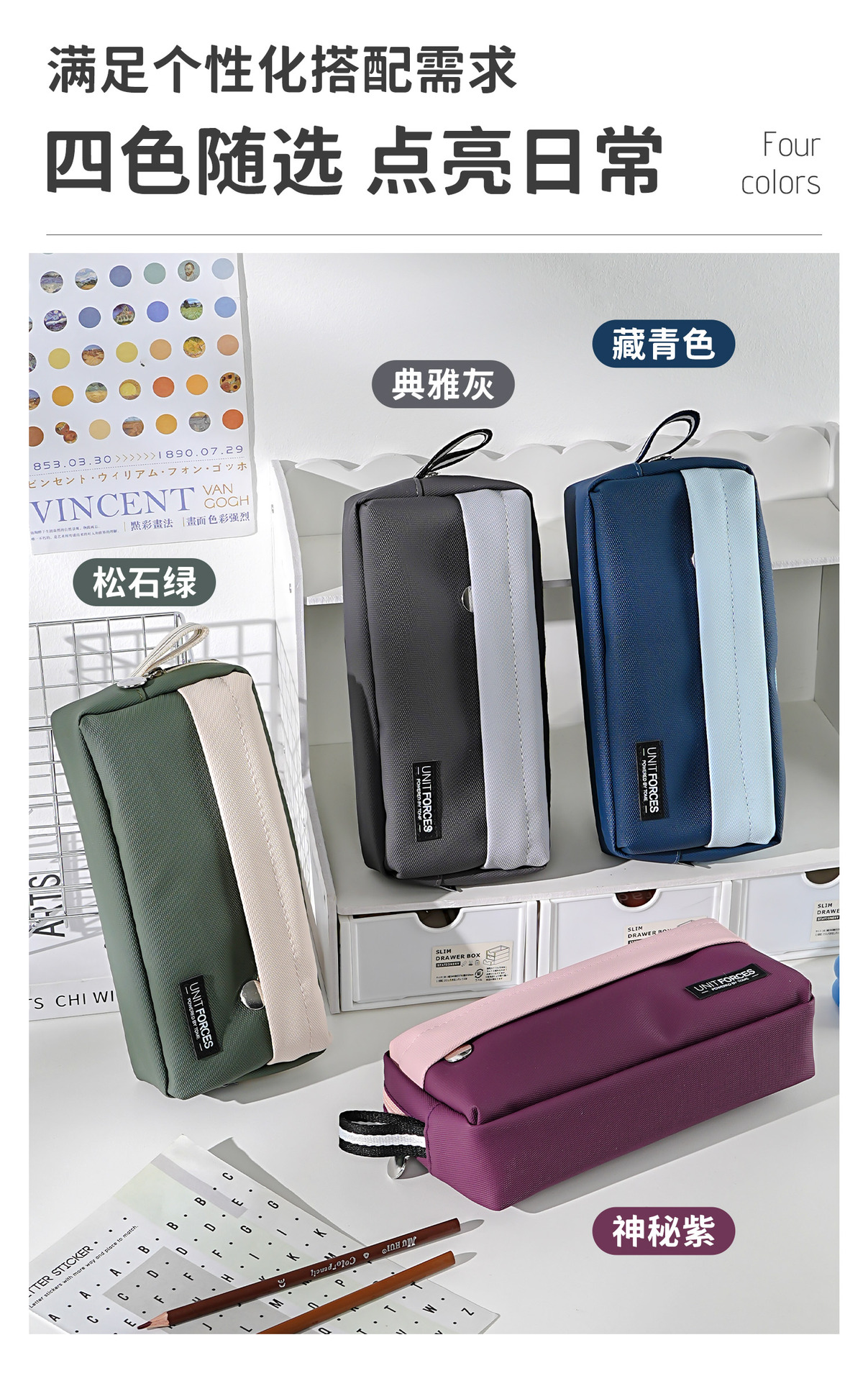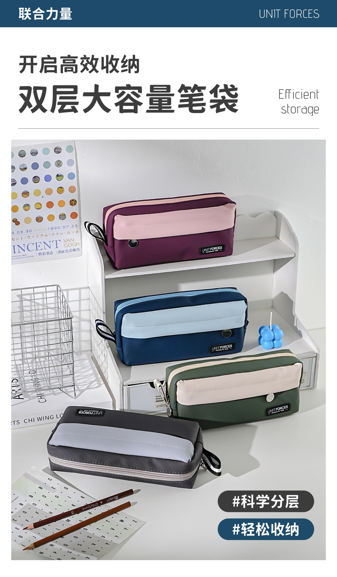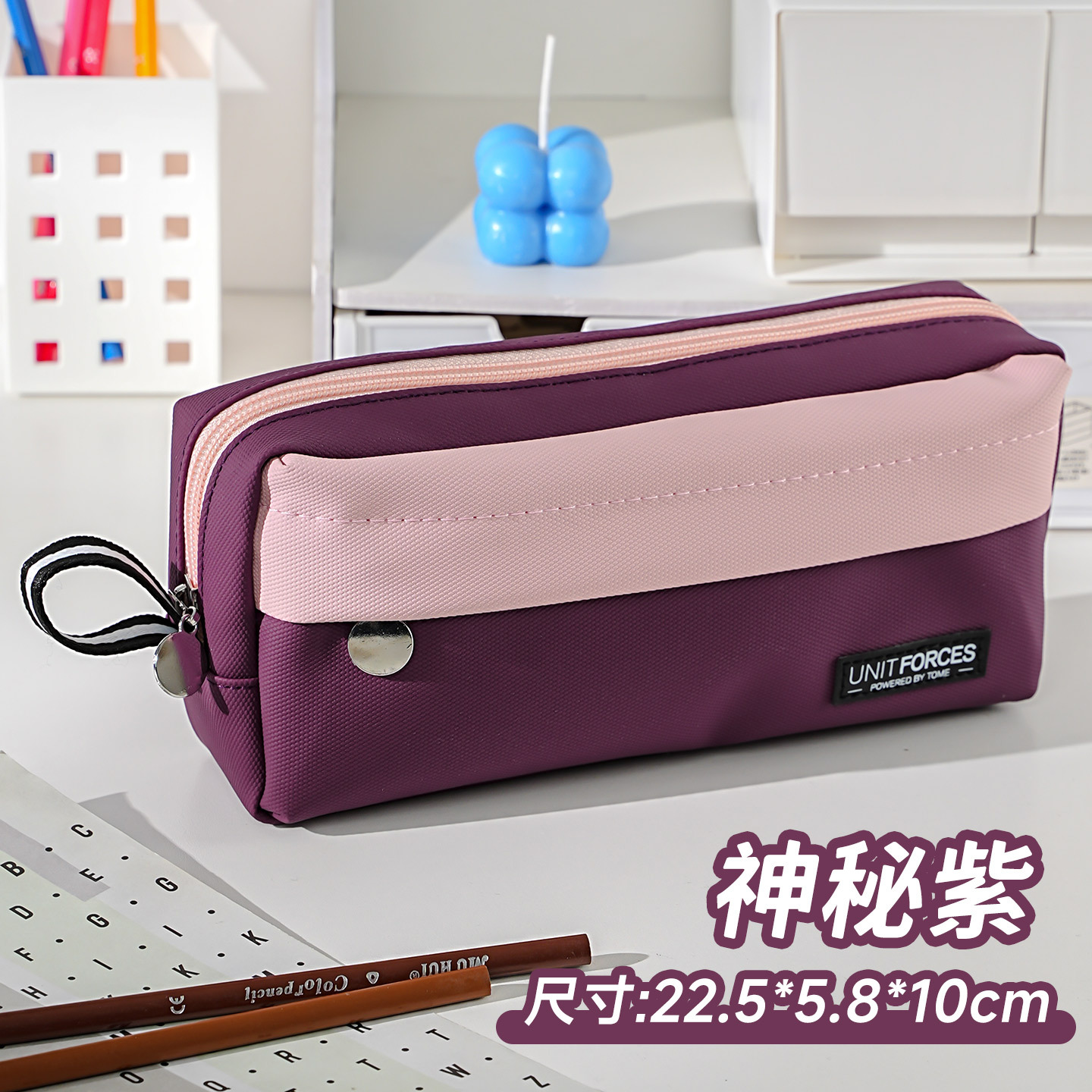 • United Power 프론트 패치 포켓 PU 필통 - 미스테리어스 퍼플