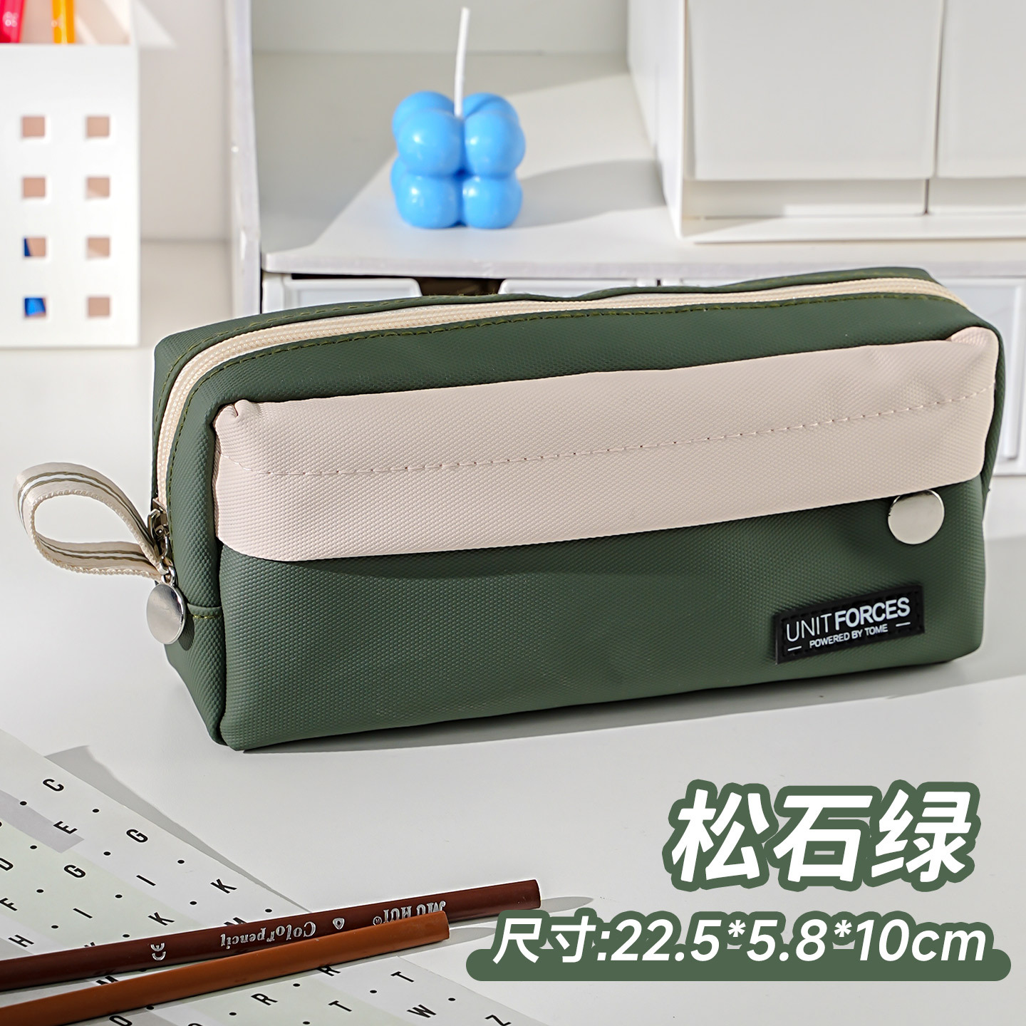 • United Power 프론트 패치 포켓 PU 필통 - 청록색