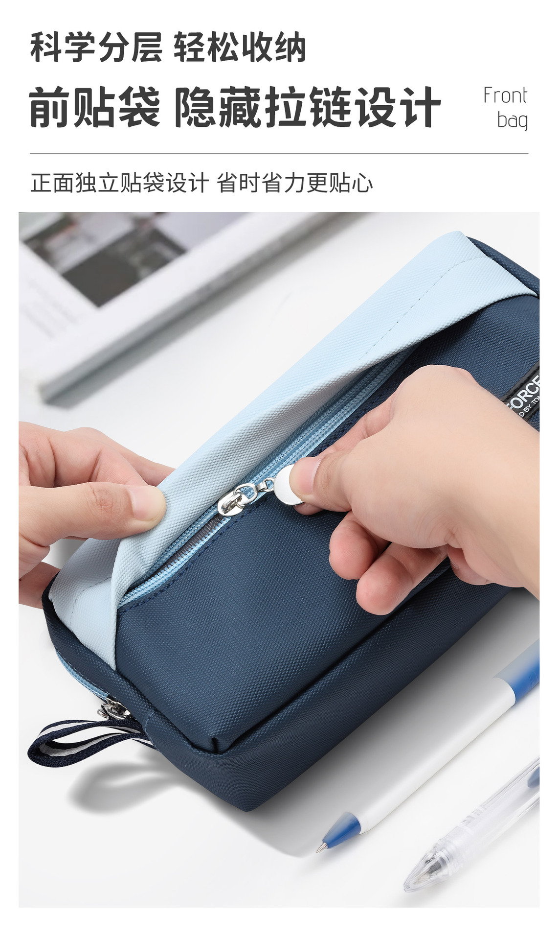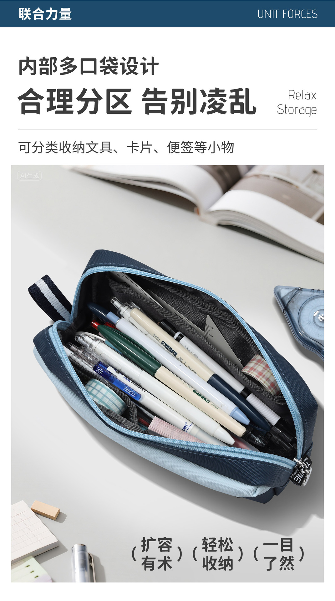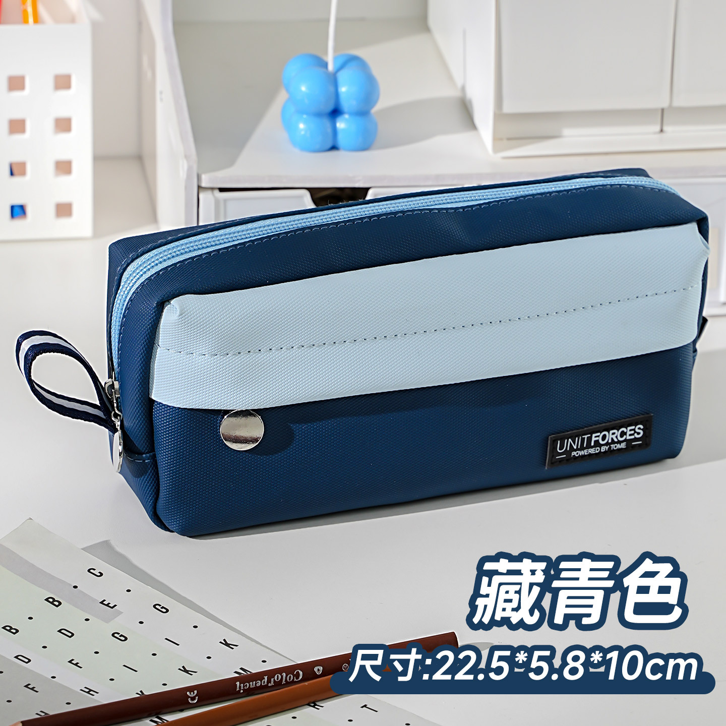 • United Power 프론트 패치 포켓 PU 필통 - 네이비 블루