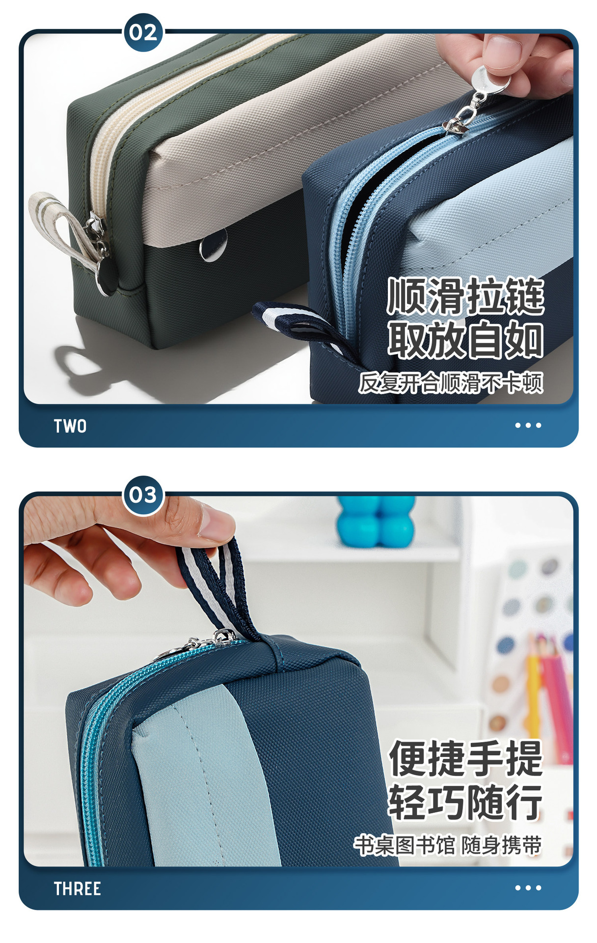 TOME 휴대용 방수 PU 가죽 연필 가방 소년의 고급스러운 간단한 중학생 더블 풀 문구 가방 연필 상자스토어 가기