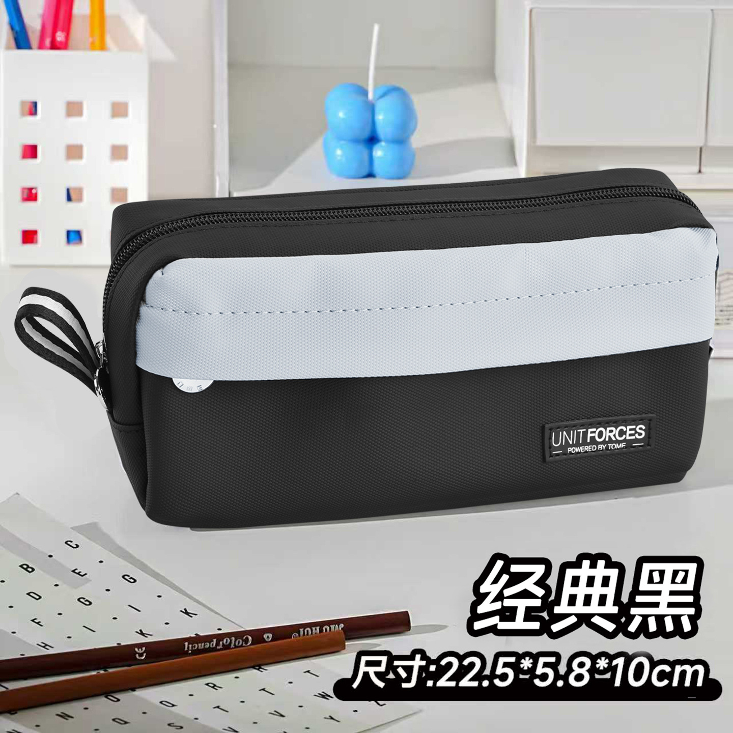 • United Power 프론트 포켓 PU 필통 - 클래식 블랙