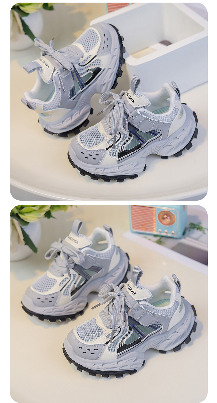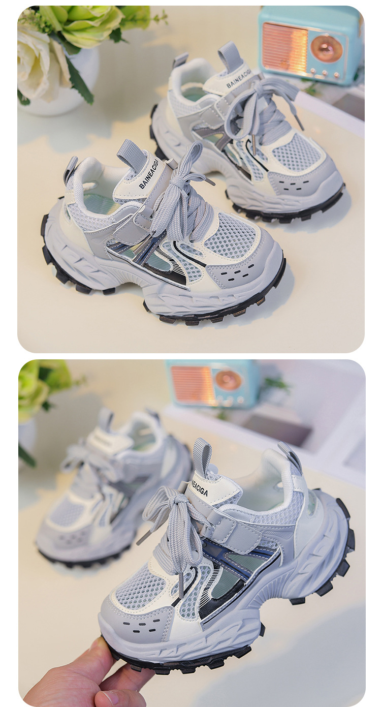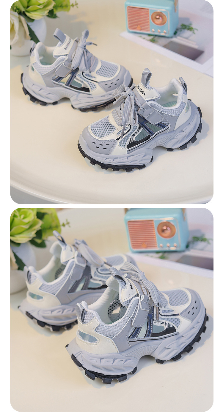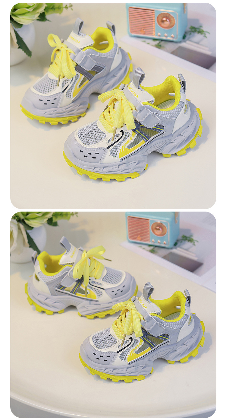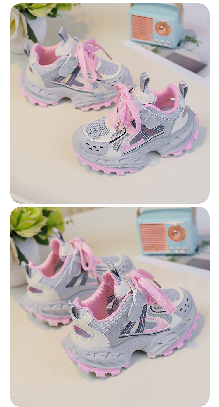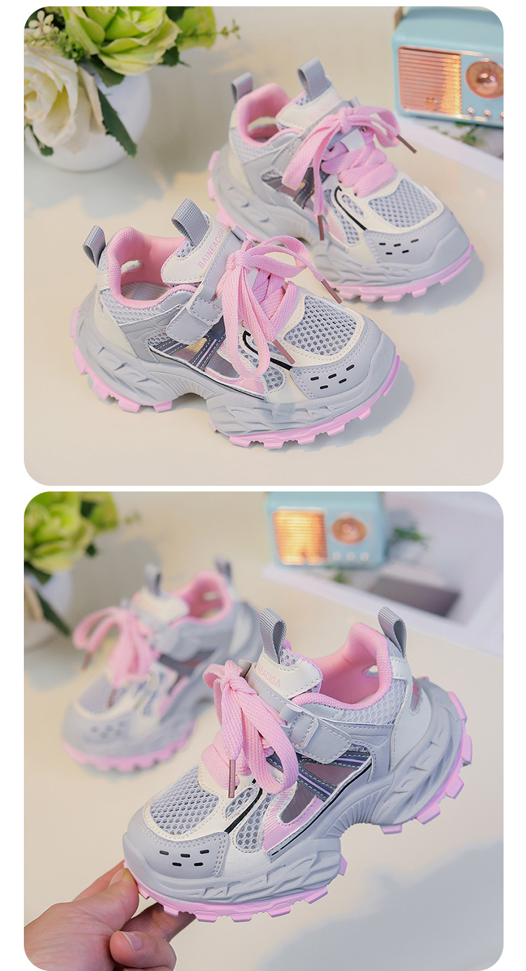 세련되고 통기성 어린이 아빠 신발 여름과 가을 프레임 신발 소년을위한 새로운 부드러운 단독 소녀 더블 메쉬 스포츠 신발