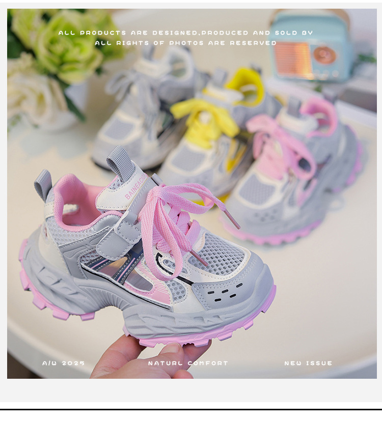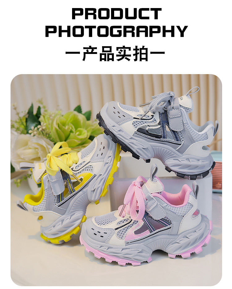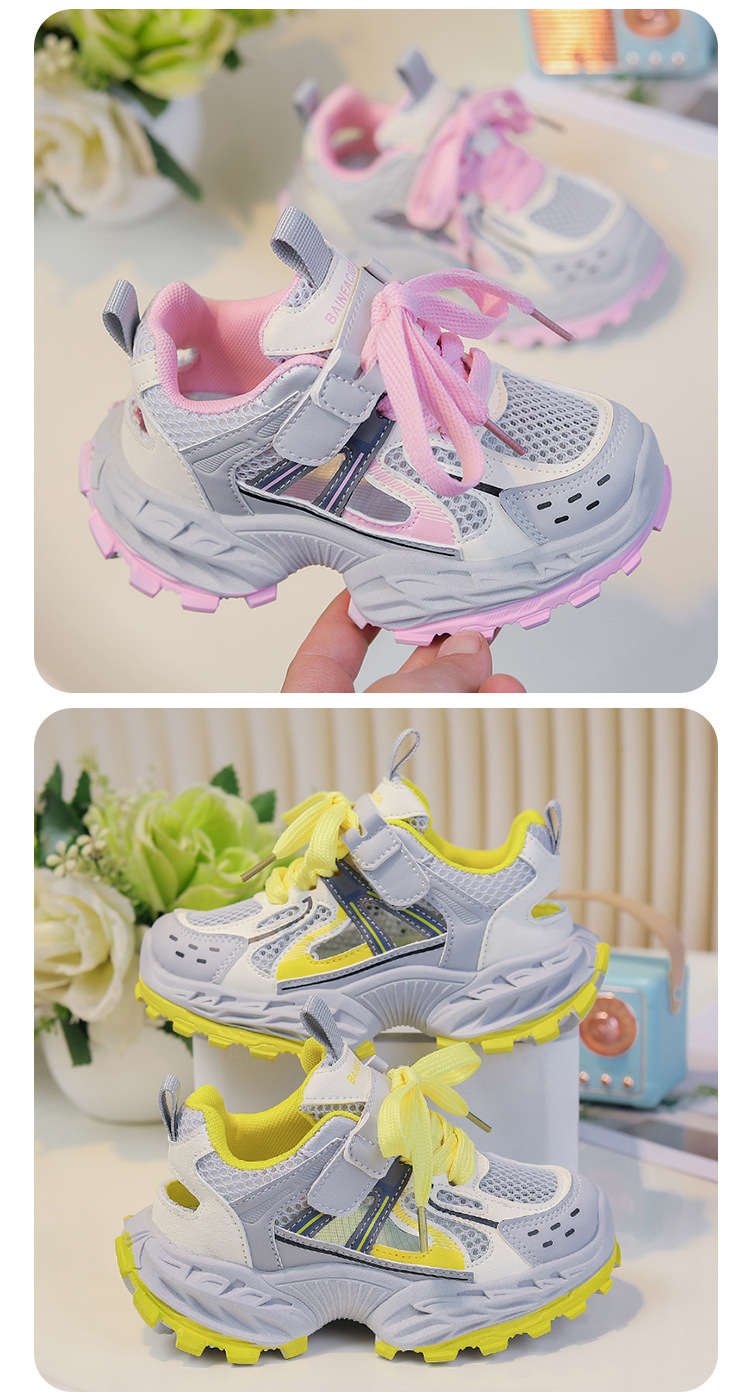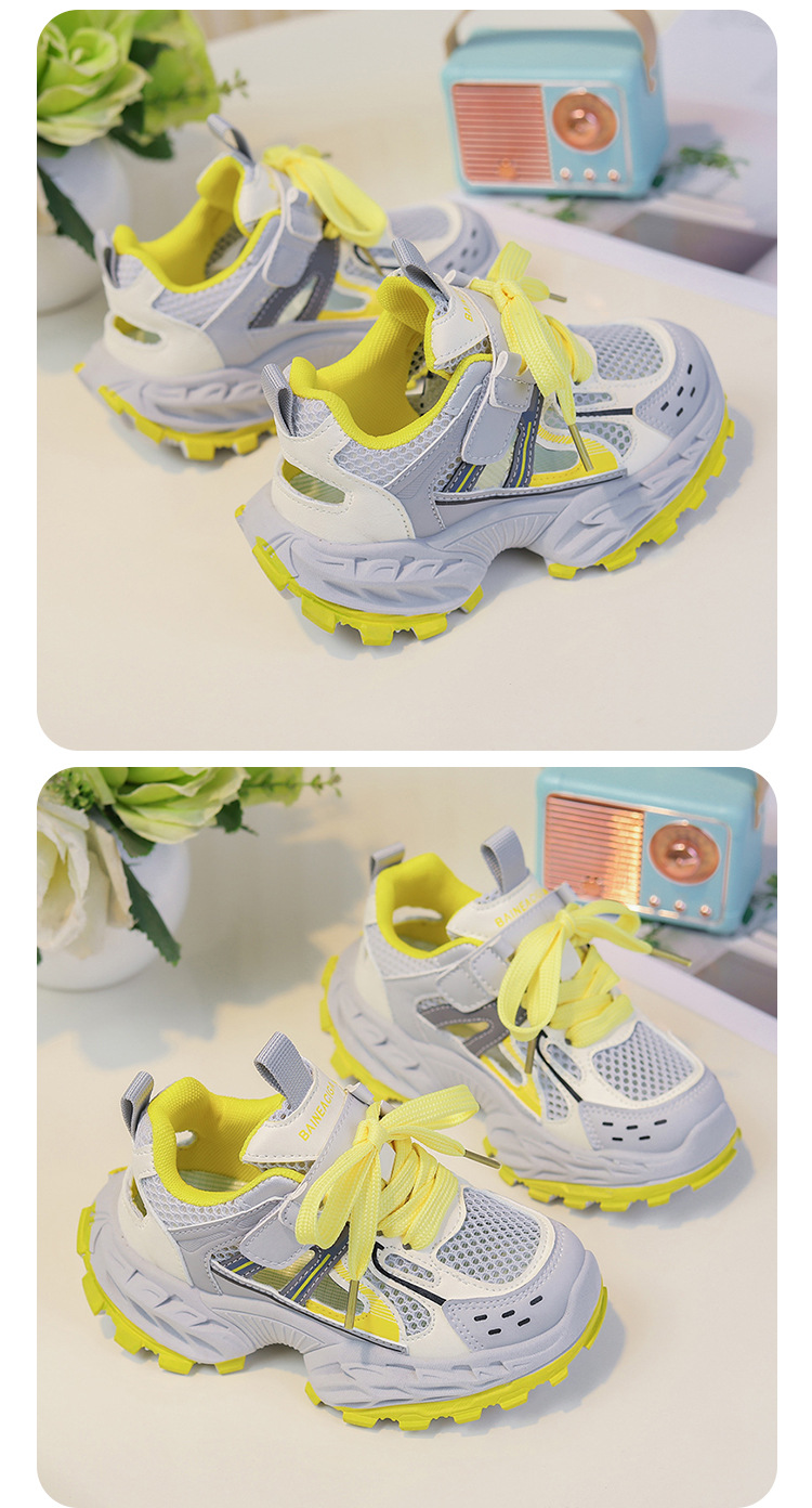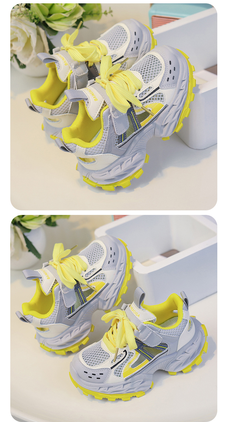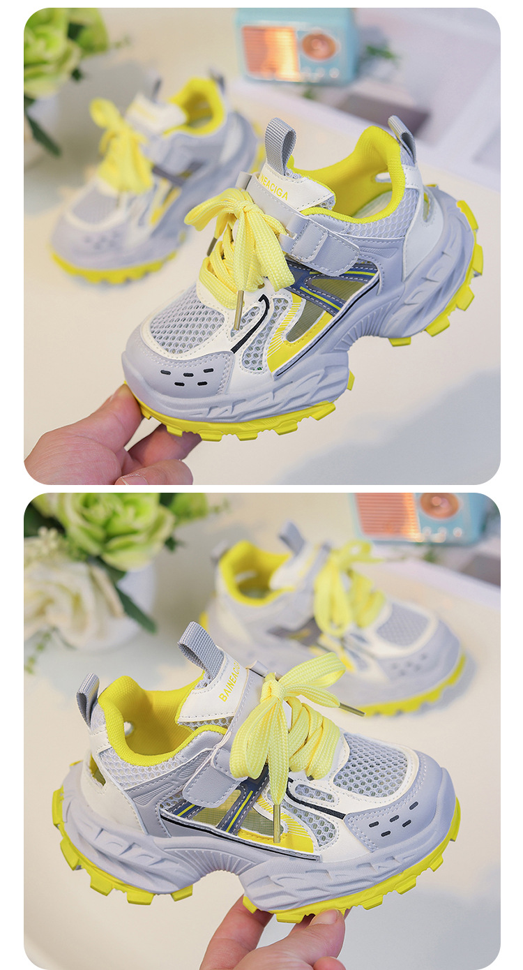 세련되고 통기성 어린이 아빠 신발 여름과 가을 프레임 신발 소년을위한 새로운 부드러운 단독 소녀 더블 메쉬 스포츠 신발