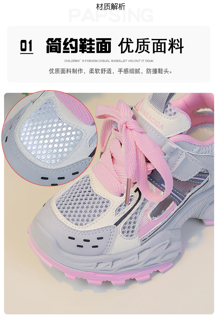 세련되고 통기성 어린이 아빠 신발 여름과 가을 프레임 신발 소년을위한 새로운 부드러운 단독 소녀 더블 메쉬 스포츠 신발스토어 가기