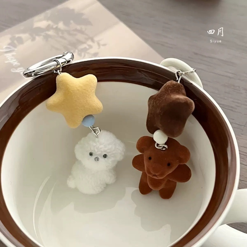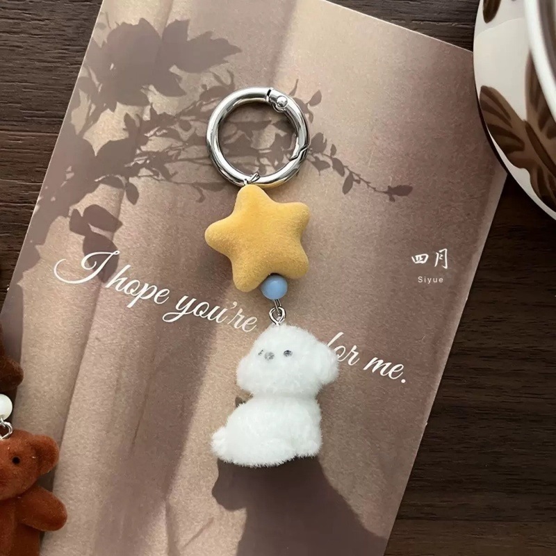 한국 강아지 스타 곱슬 개 열쇠 고리 달콤하고 귀여운 벨벳 다용도 가방 자동차 열쇠 고리 헤드폰 펜던트스토어 가기
