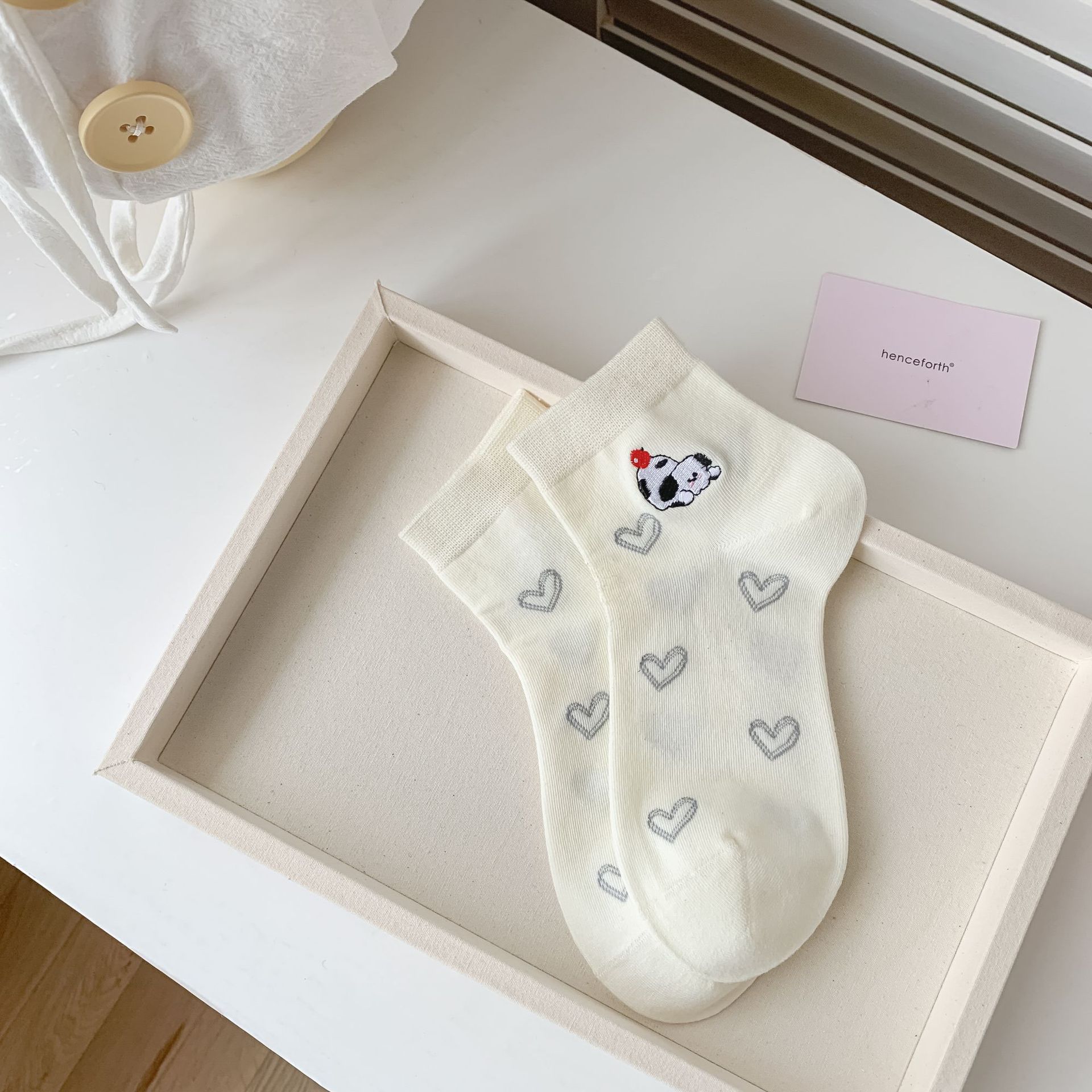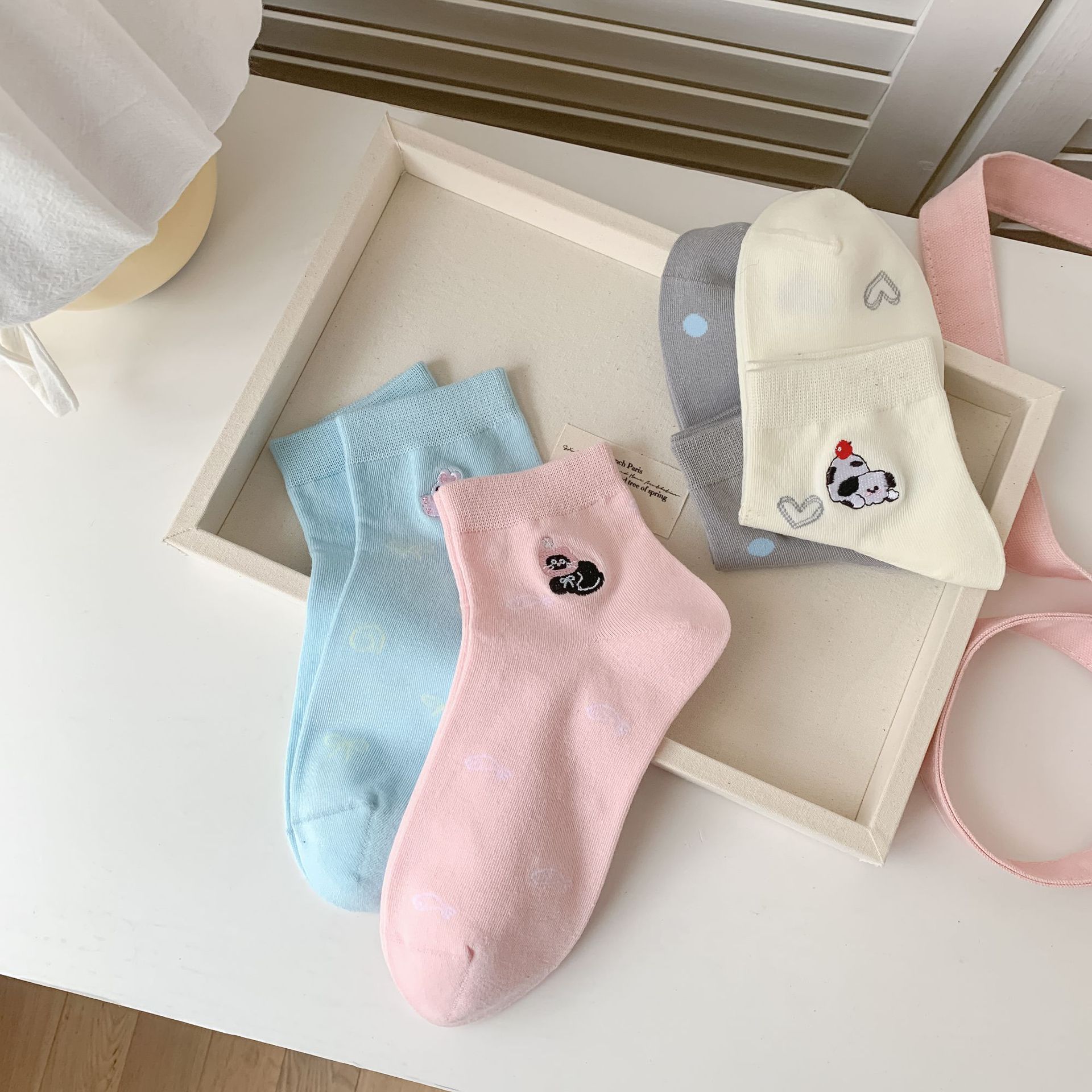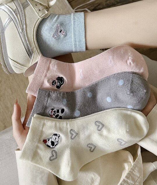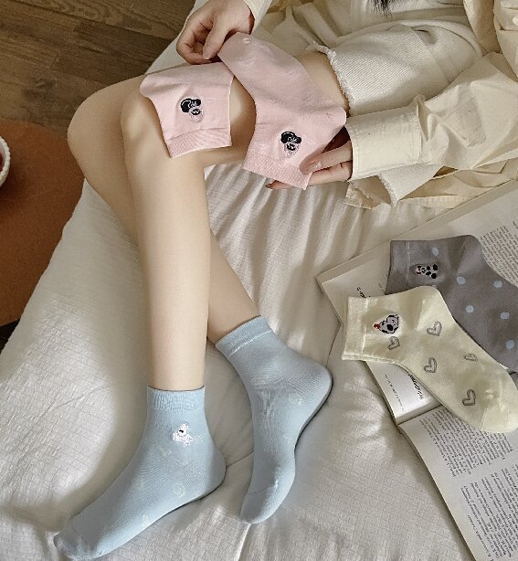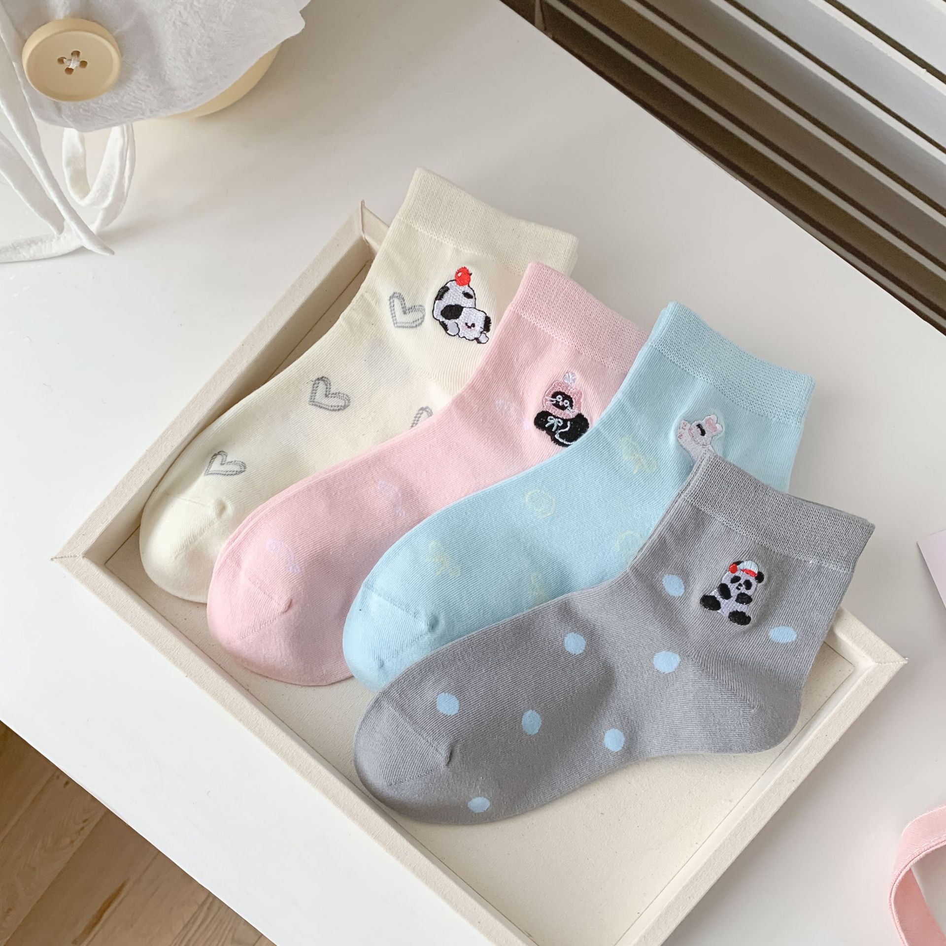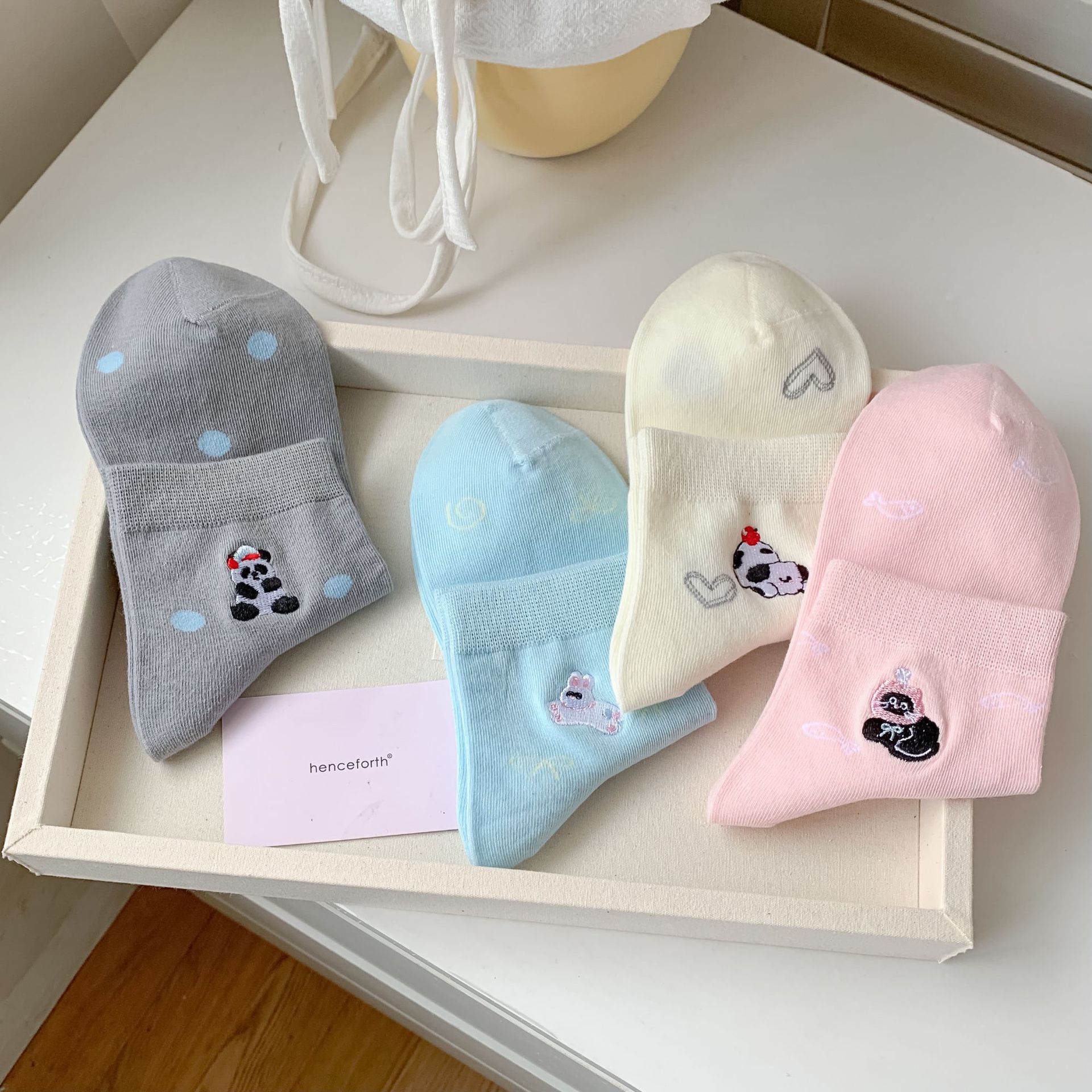 2025 새로운 봄, 여름 양말 여성 면화 중간 튜브 양말 여성 유행 일본어 자수 만화 중간 튜브 양말 제조 업체 도매스토어 가기