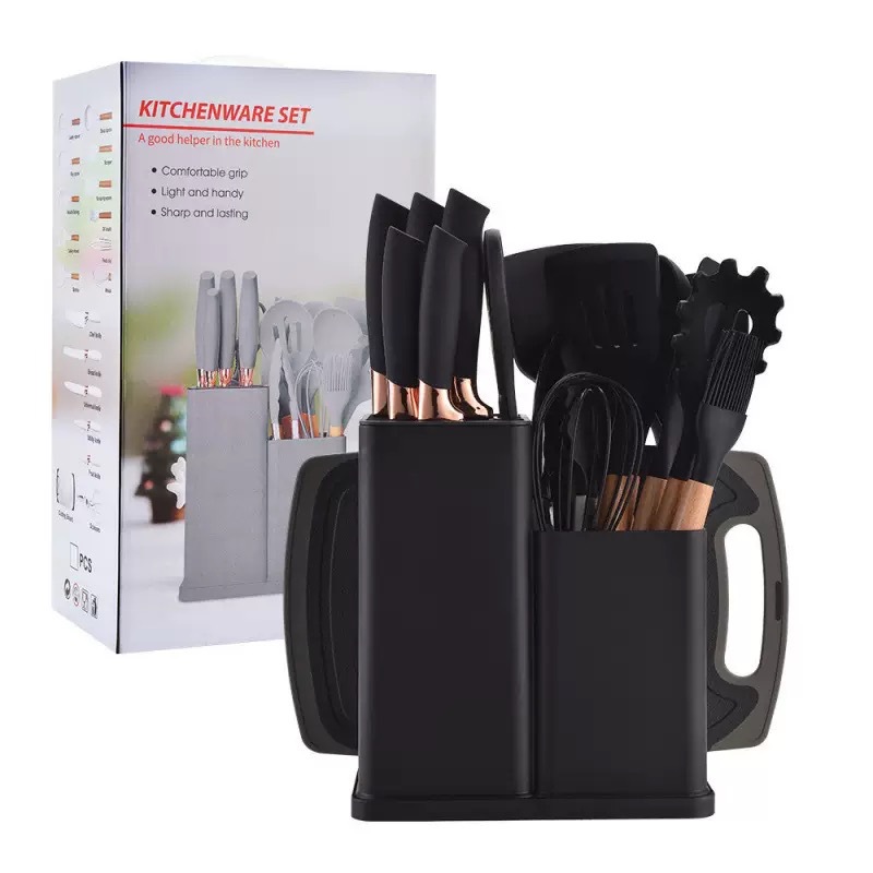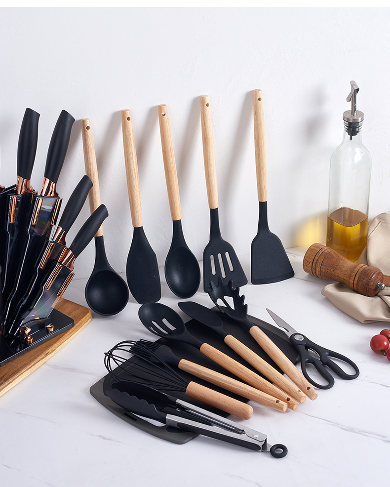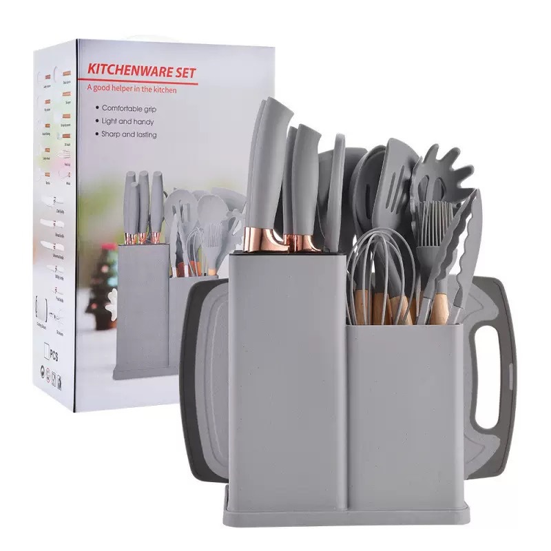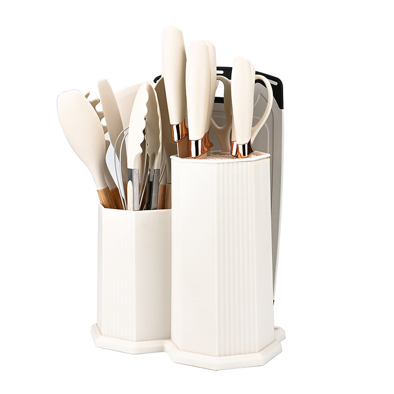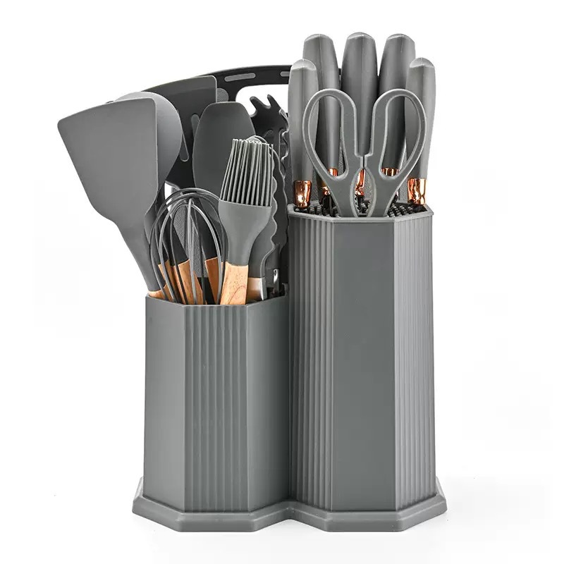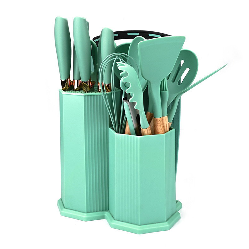 실리콘 주방용품 아크릴 나이프와 함께 19 조각 세트 주방 실리콘 주방용품 칼 저장 배럴 비 스틱 세트