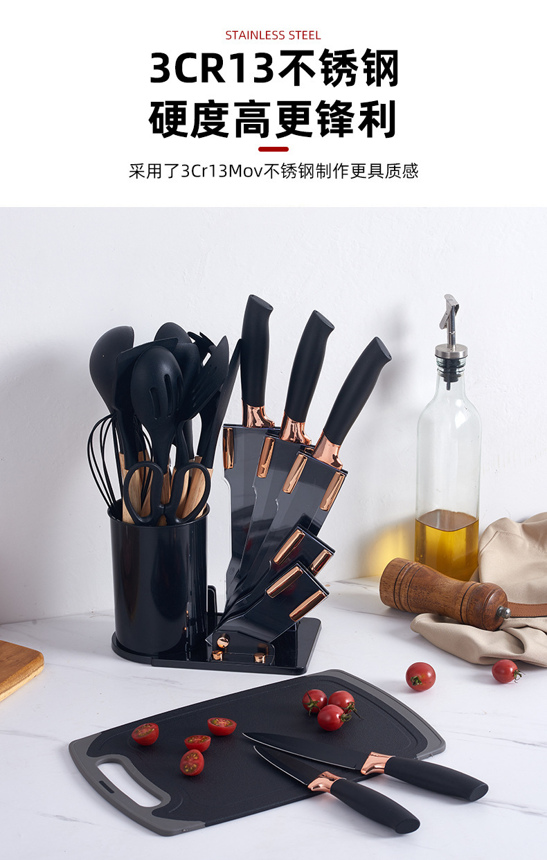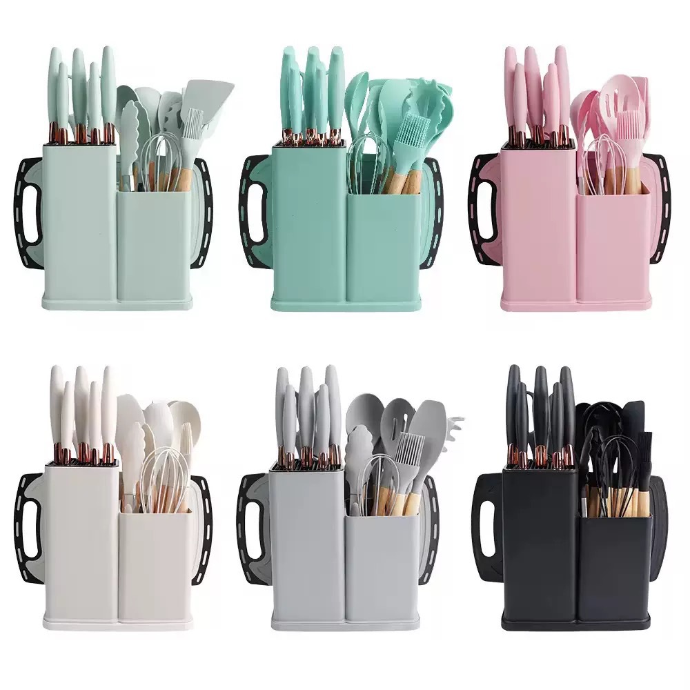 실리콘 주방용품 아크릴 나이프와 함께 19 조각 세트 주방 실리콘 주방용품 칼 저장 배럴 비 스틱 세트스토어 가기