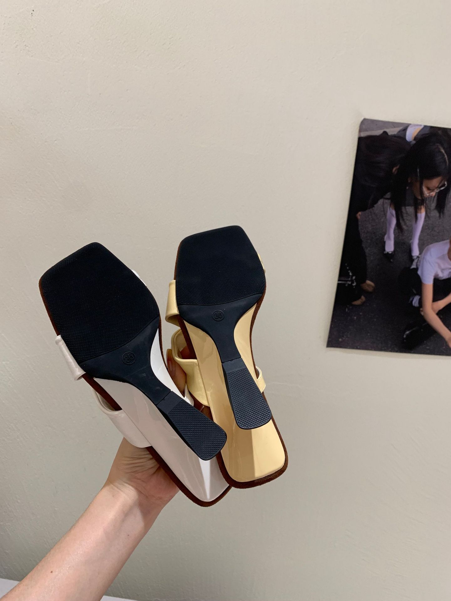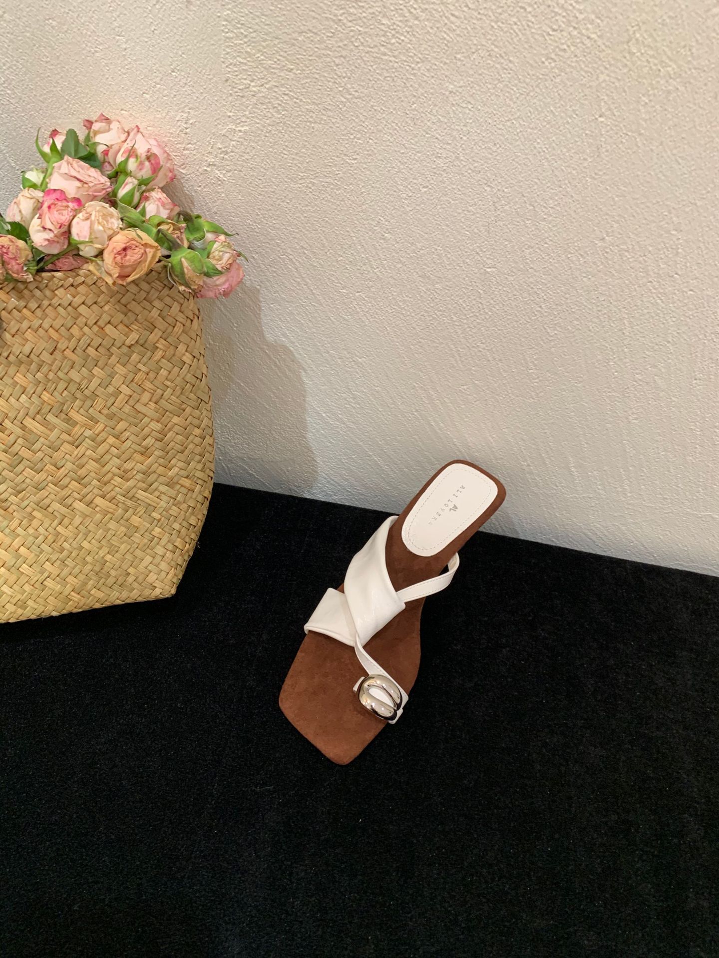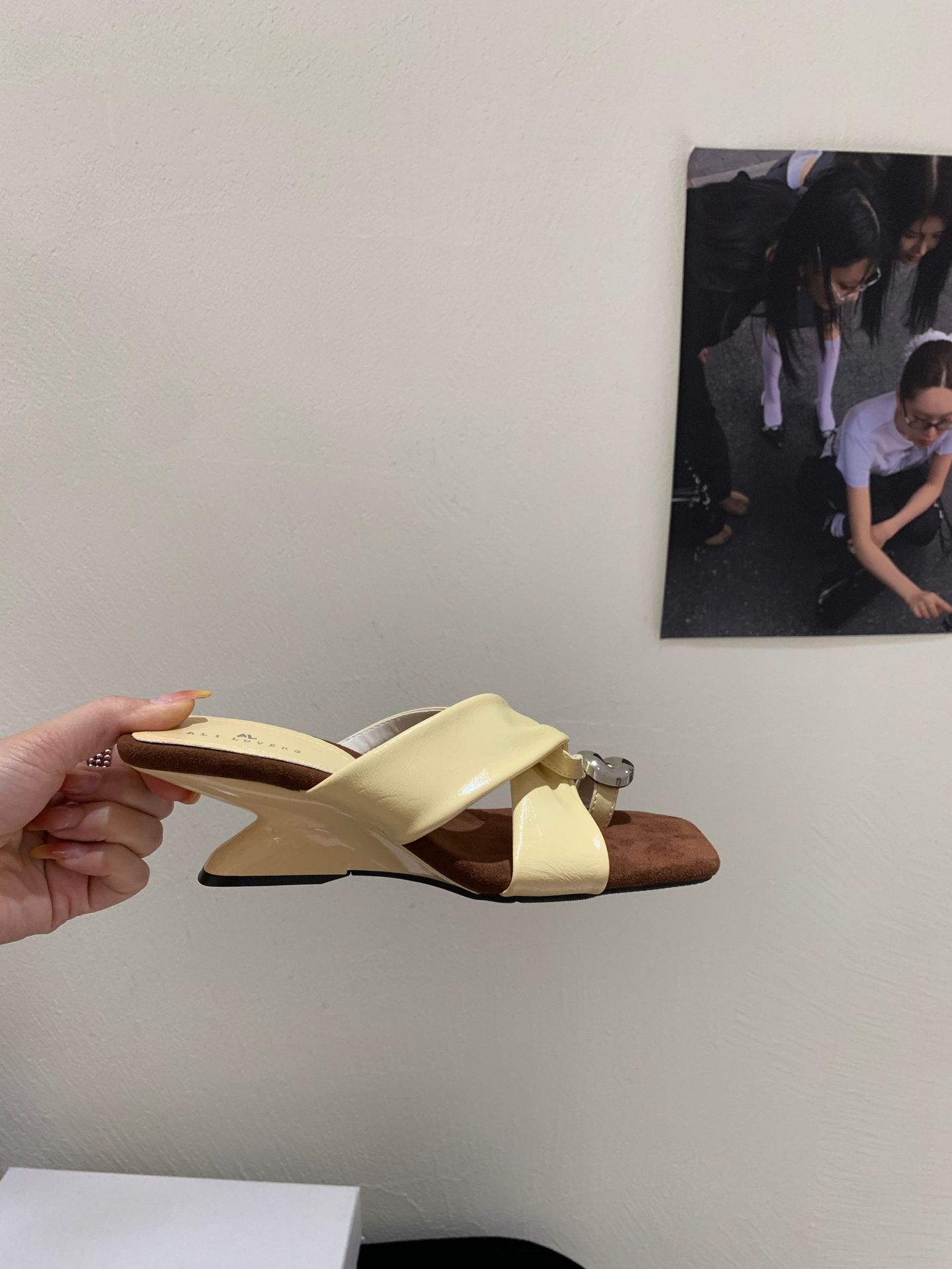 2025년 여름 신상 스퀘어토 원라인 중공 웨지힐 게으른 하프드로잉 오픈토 여성 샌들스토어 가기