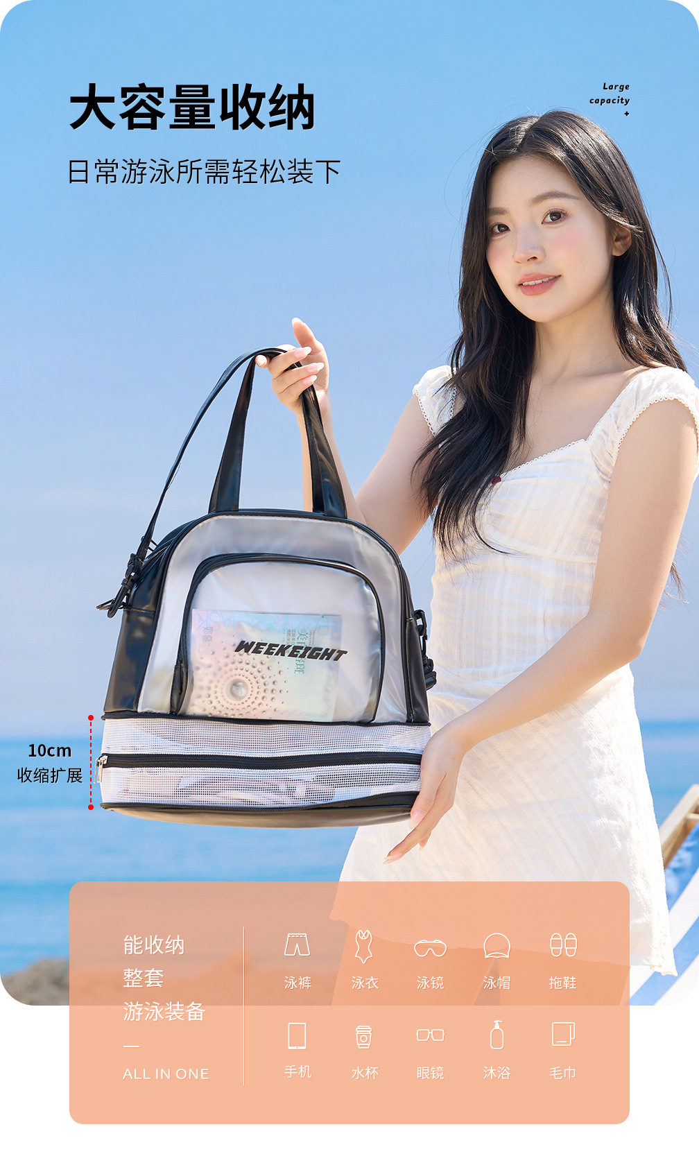 새로운 건조하고 젖은 별도의 수영 가방 Frosted 반투명 체육관 가방 대용량 방수 세척 비치 백 여행 가방스토어 가기