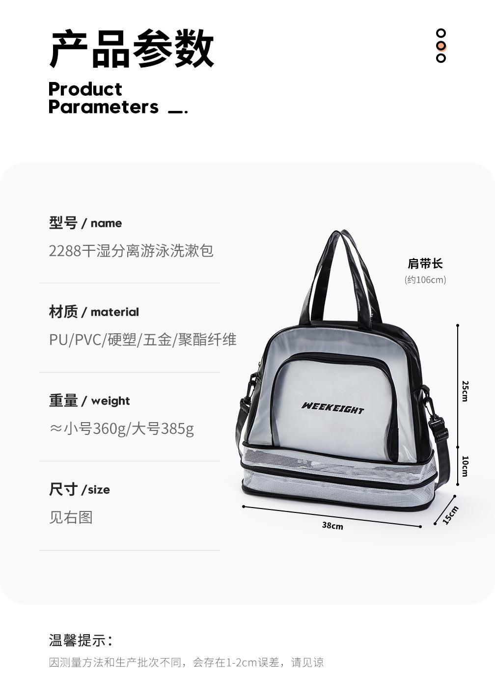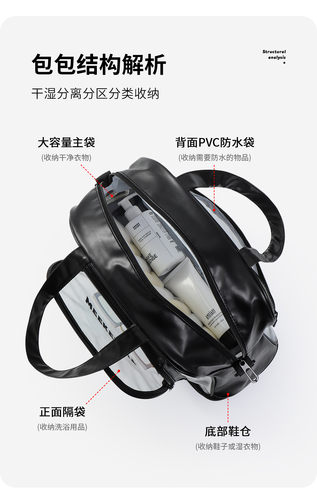 새로운 건조하고 젖은 별도의 수영 가방 Frosted 반투명 체육관 가방 대용량 방수 세척 비치 백 여행 가방
