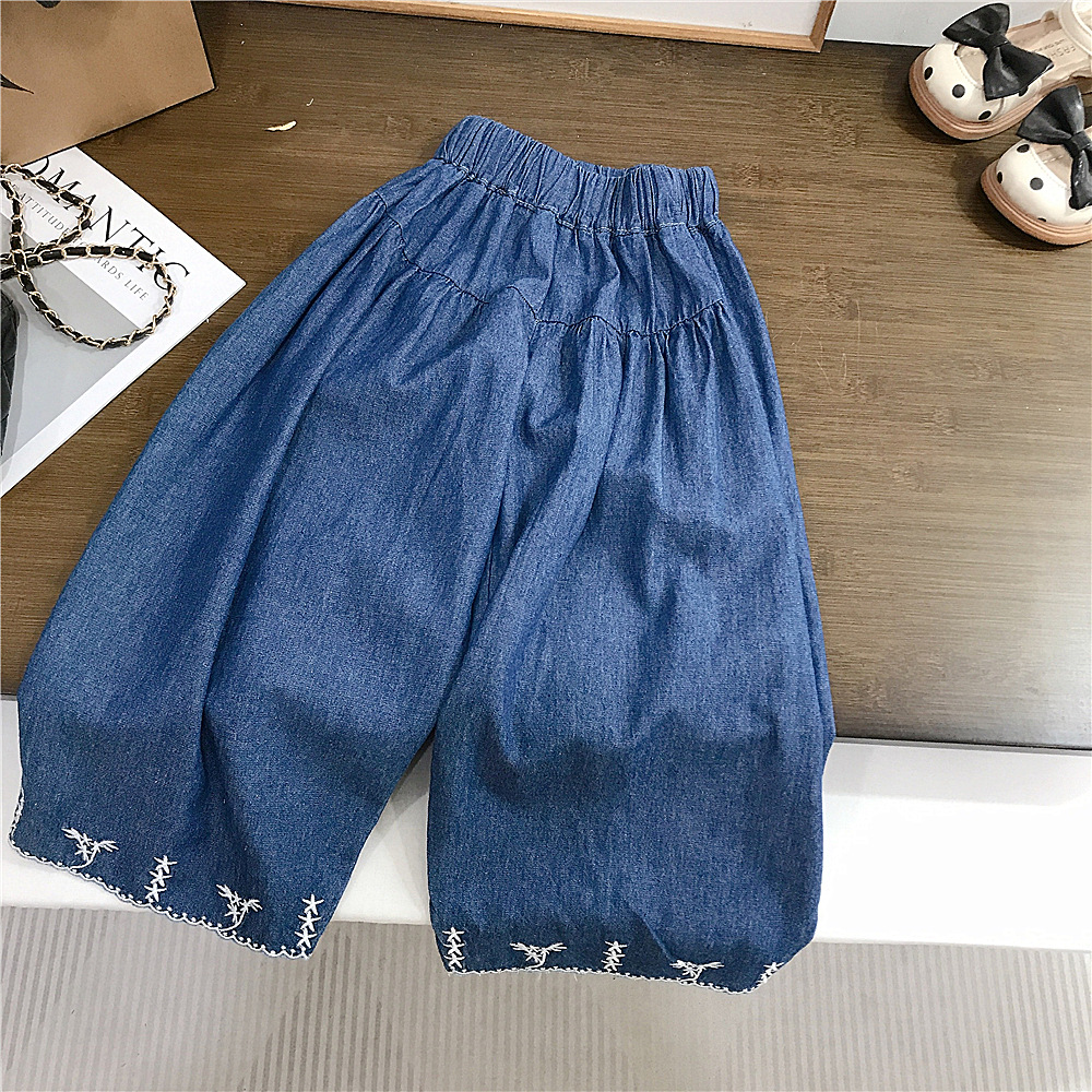 • 다크블루 자수 밑단 데님 9포인트 팬츠