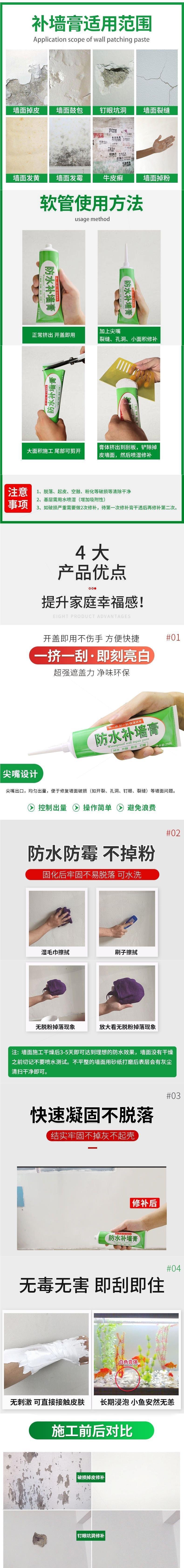 수입 재료 방수 벽 수리 페이스트 벽 수리 페이스트 흰색 퍼티 페이스트 가정용 벽 수리 페인트 퍼티스토어 가기