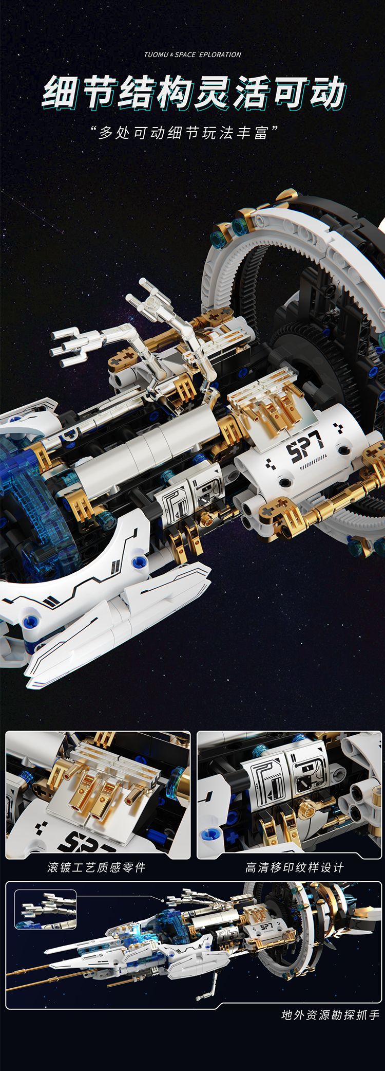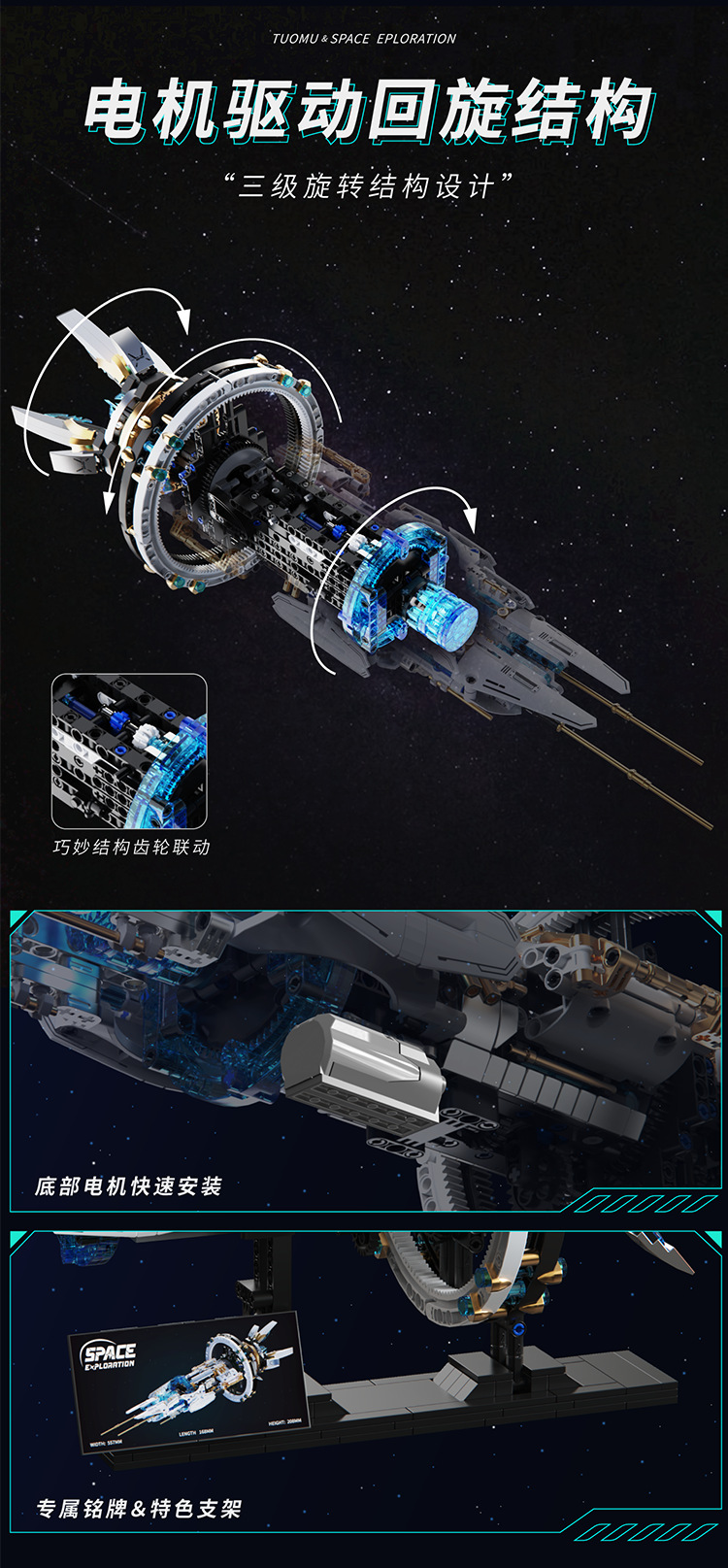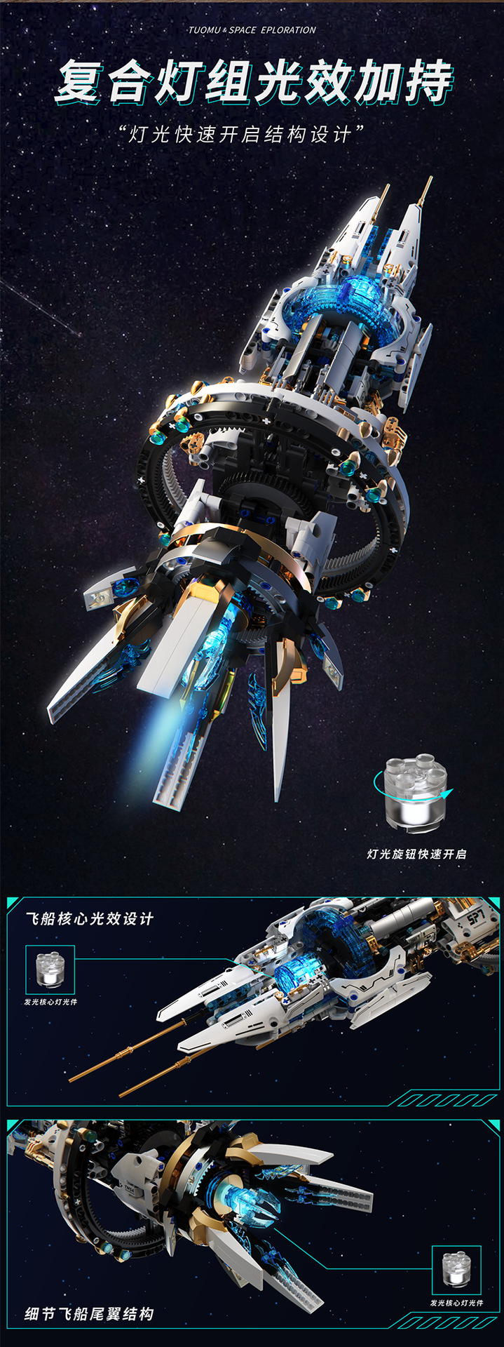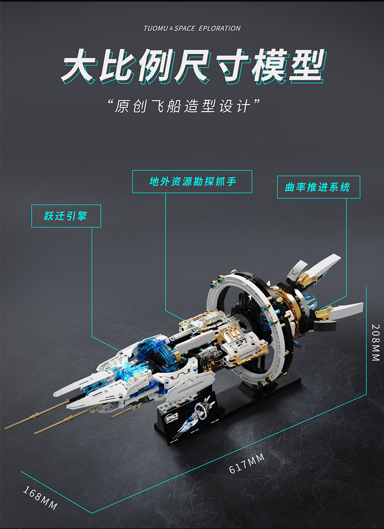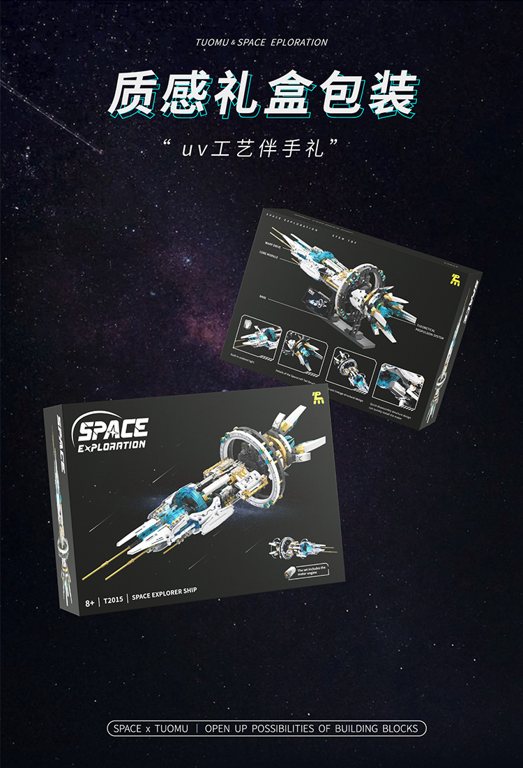 투오무 T2015 전동 회전 우주선 과학 교육 삼체 지능형 조립 블록 모델 어린이 장난감 8