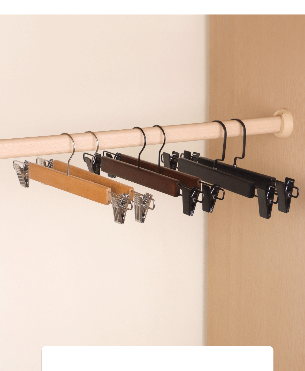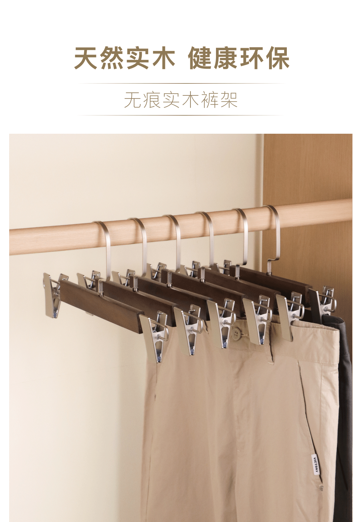 단단한 나무 바지 걸이, 바지 클립, 가정용 흔적 없는 바지 걸이, 클립이 있는 스커트, 바지 클립, 옷걸이, 제조업체 도매, 팬티 스타킹 보관스토어 가기