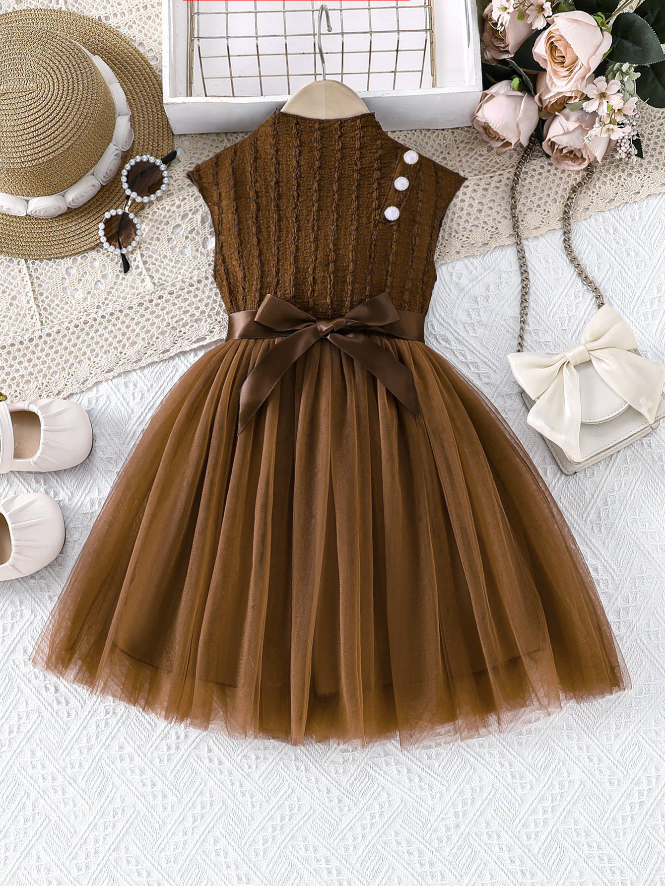 어린이 민소매 메쉬 원피스 3-8 세 원피스 벨트 생일 파티와 소녀 오간 퍼프 원피스