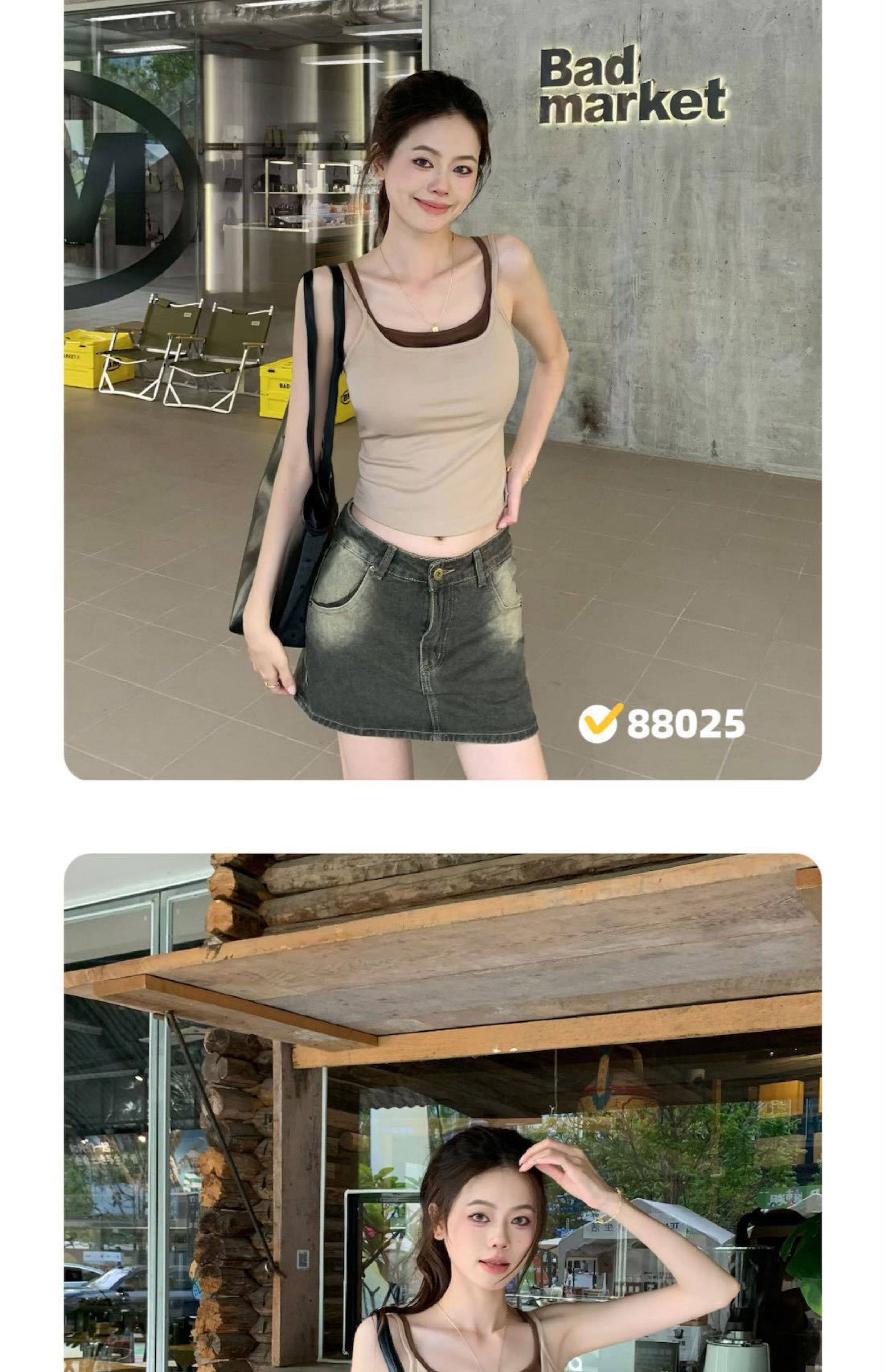 88025 # 가짜 두 아름다운 등 활 속이 빈 작은 캐미솔 고정 컵 스티칭 대비 색상 슬림베이스 여성스토어 가기