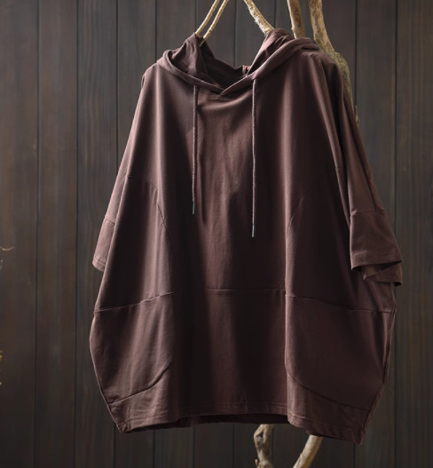 여름 새로운 더블 포켓 후드 반팔 티셔츠 여성용 느슨한 둥근 목 얇은 캐주얼 고기 커버 풀오버 81231스토어 가기