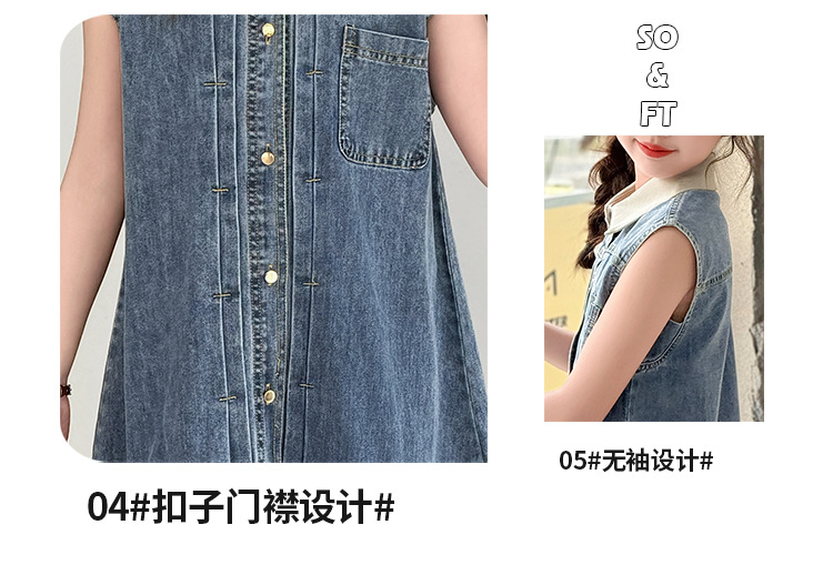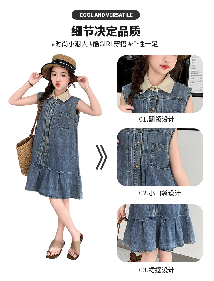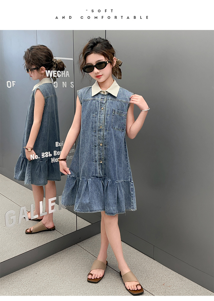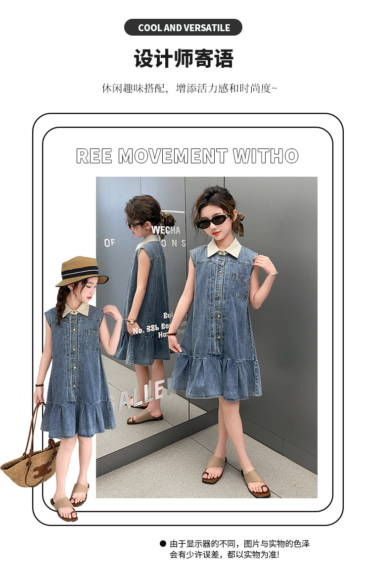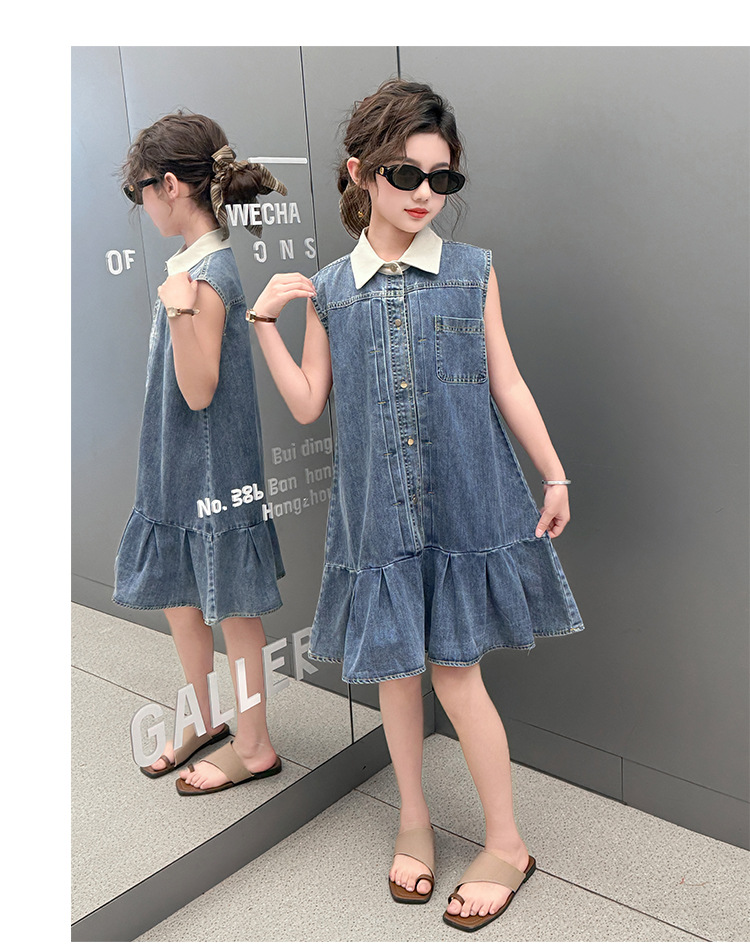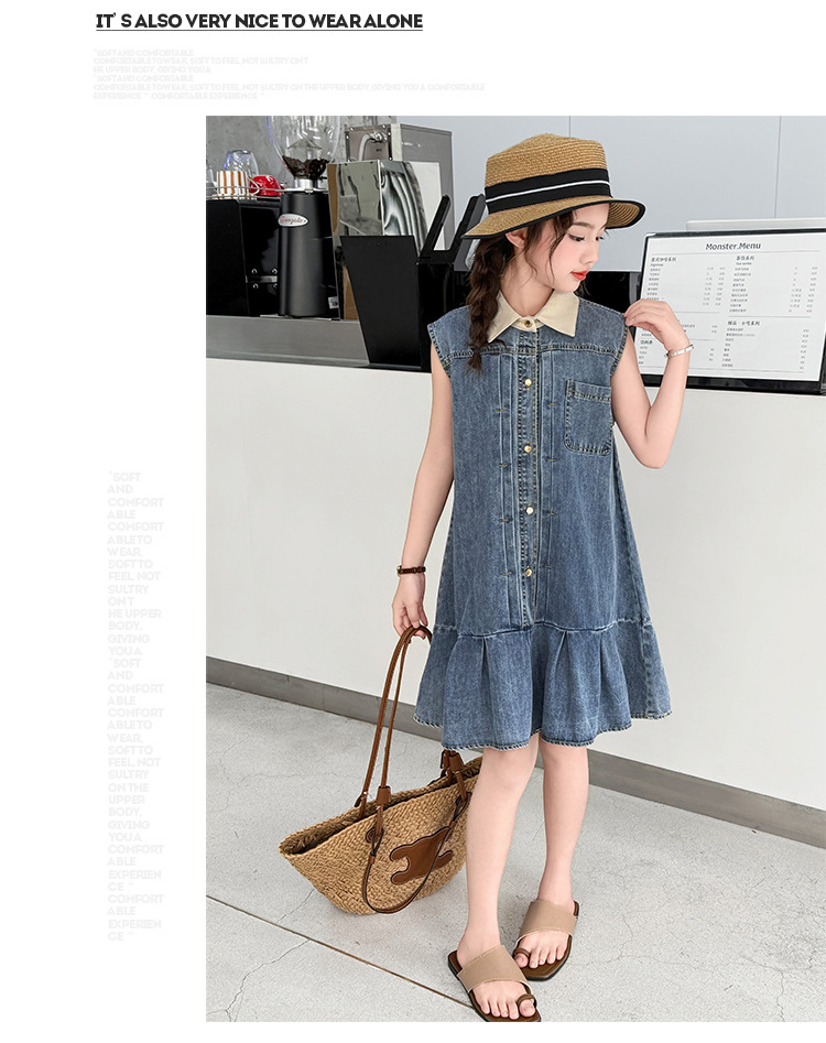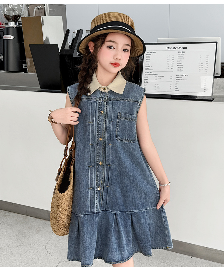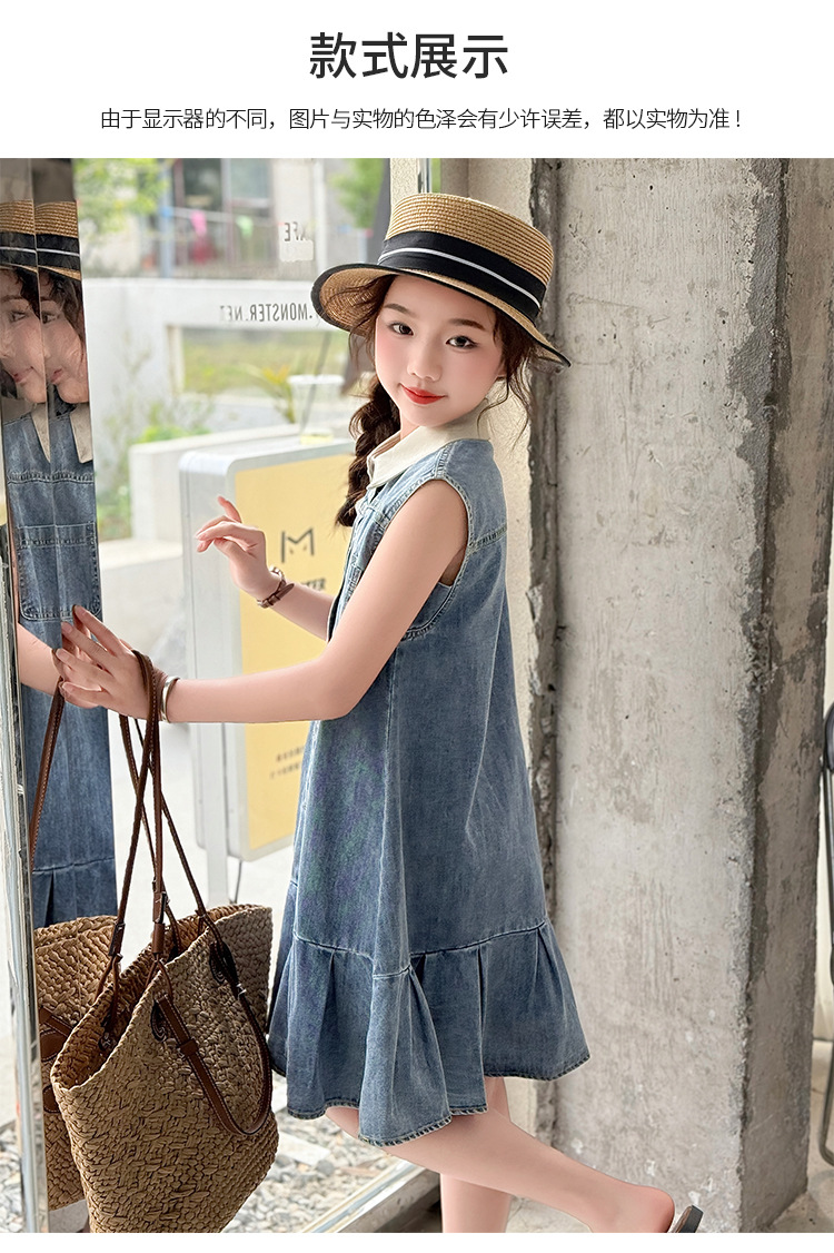 여자 여름 데님 스커트 2025 새로운 큰 어린이 한국 스타일 느슨한 조끼 드레스 어린이 여름 슈퍼 멋진 드레스스토어 가기