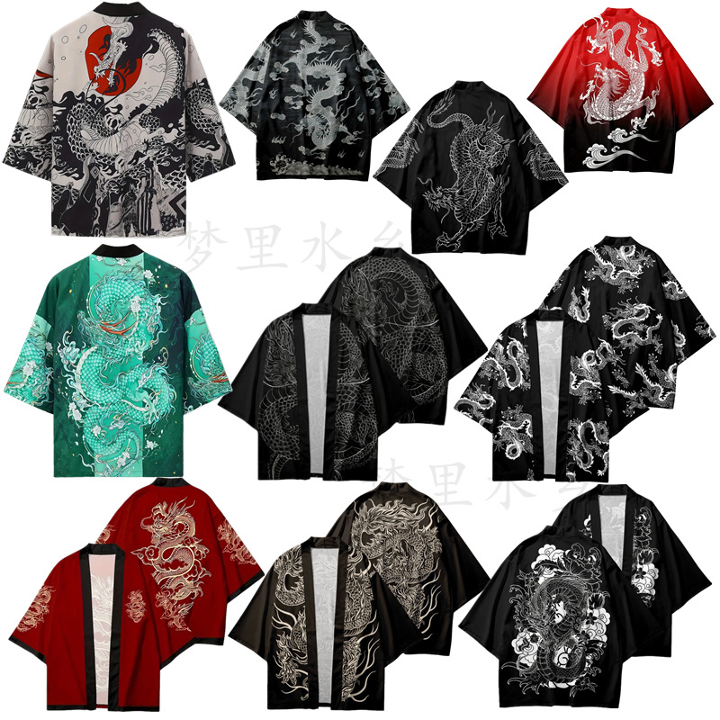 국경 간 2025 새로운 3D 디지털 인쇄 드래곤 패턴 일본식 기모노 망토 코트 잠옷 카디건 여성용스토어 가기