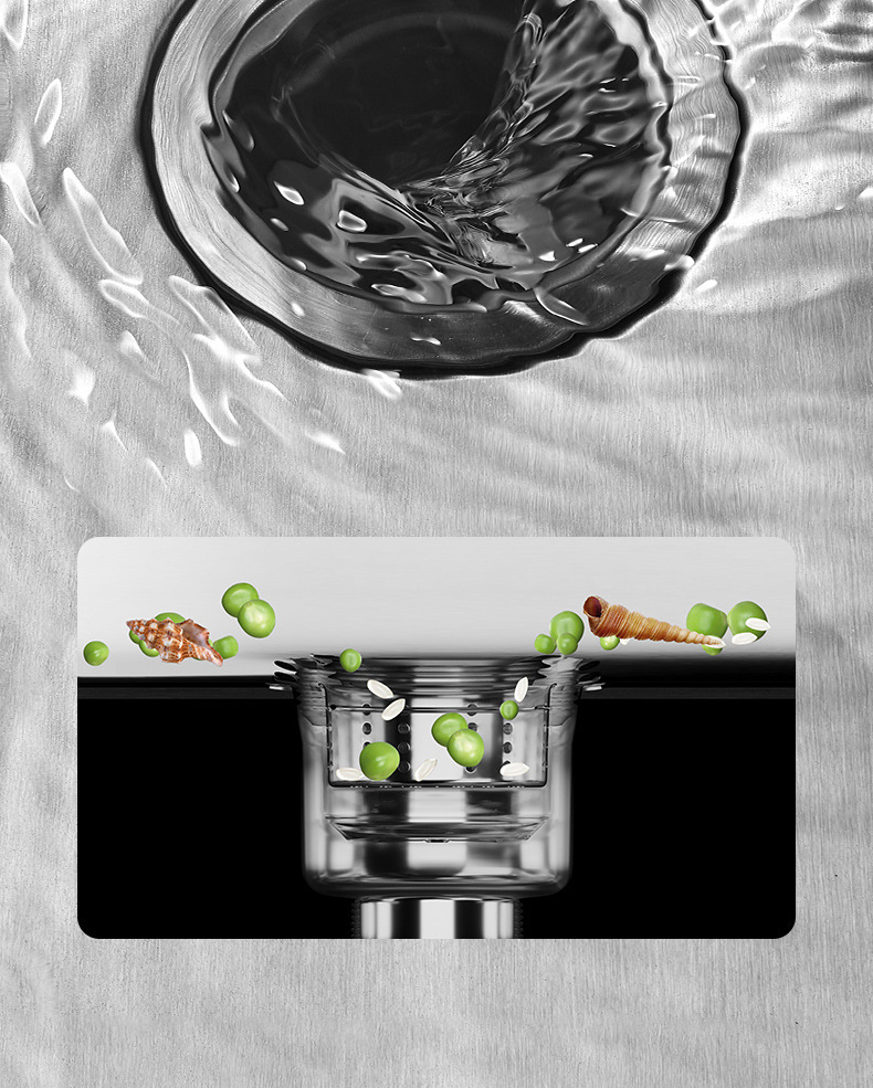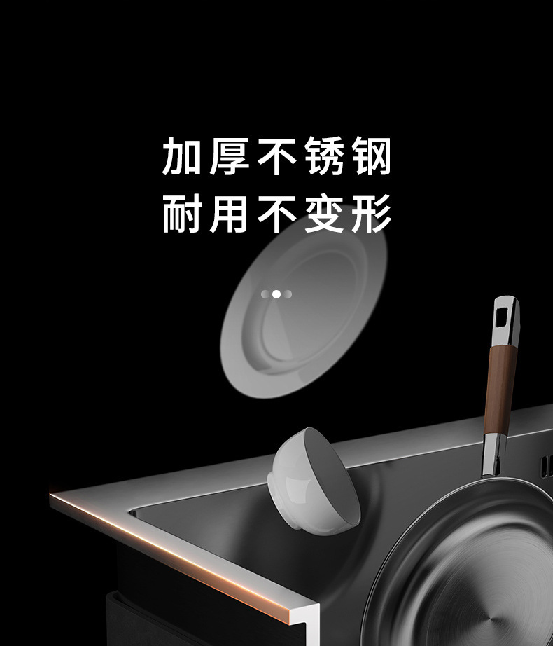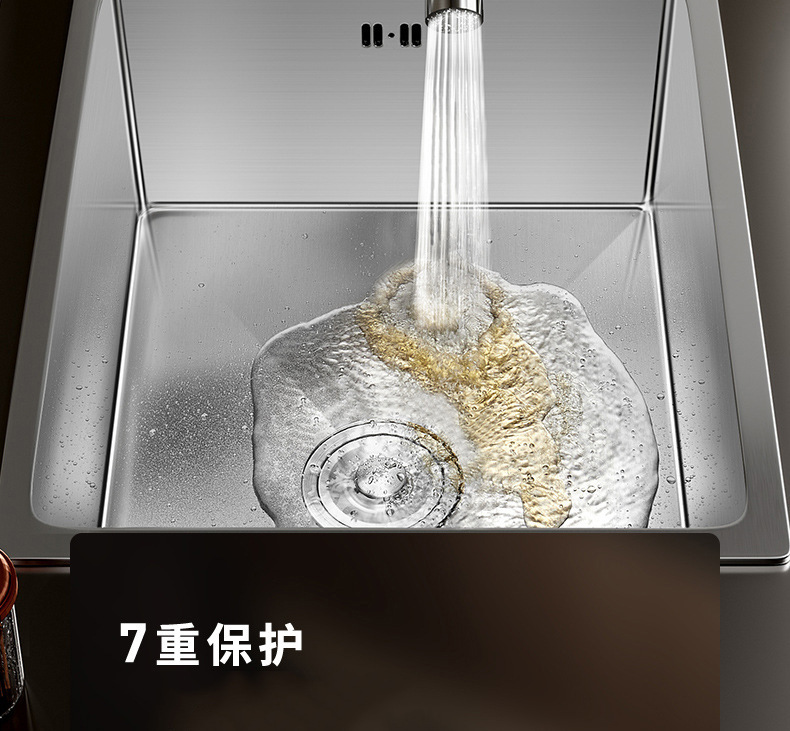 • SUS304—7843 싱크대 + 2단 인출식 수도꼭지 + 비누 디스펜서 + 접이식 바구니