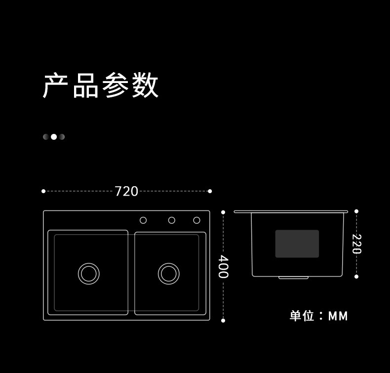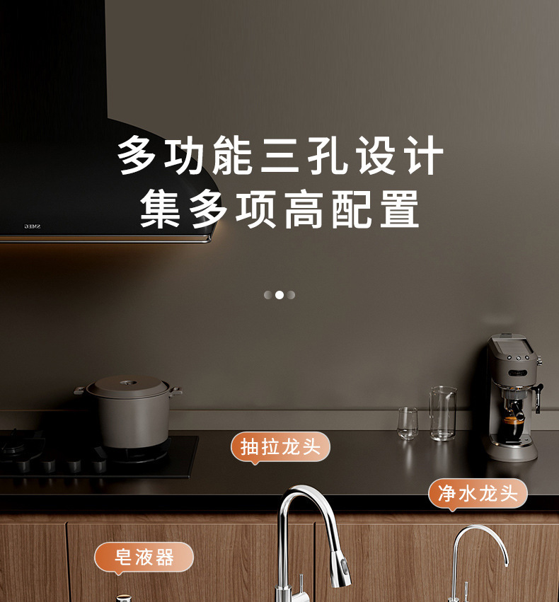 • SUS304—7843 싱크대 + 2단 인출식 수도꼭지 + 비누 디스펜서