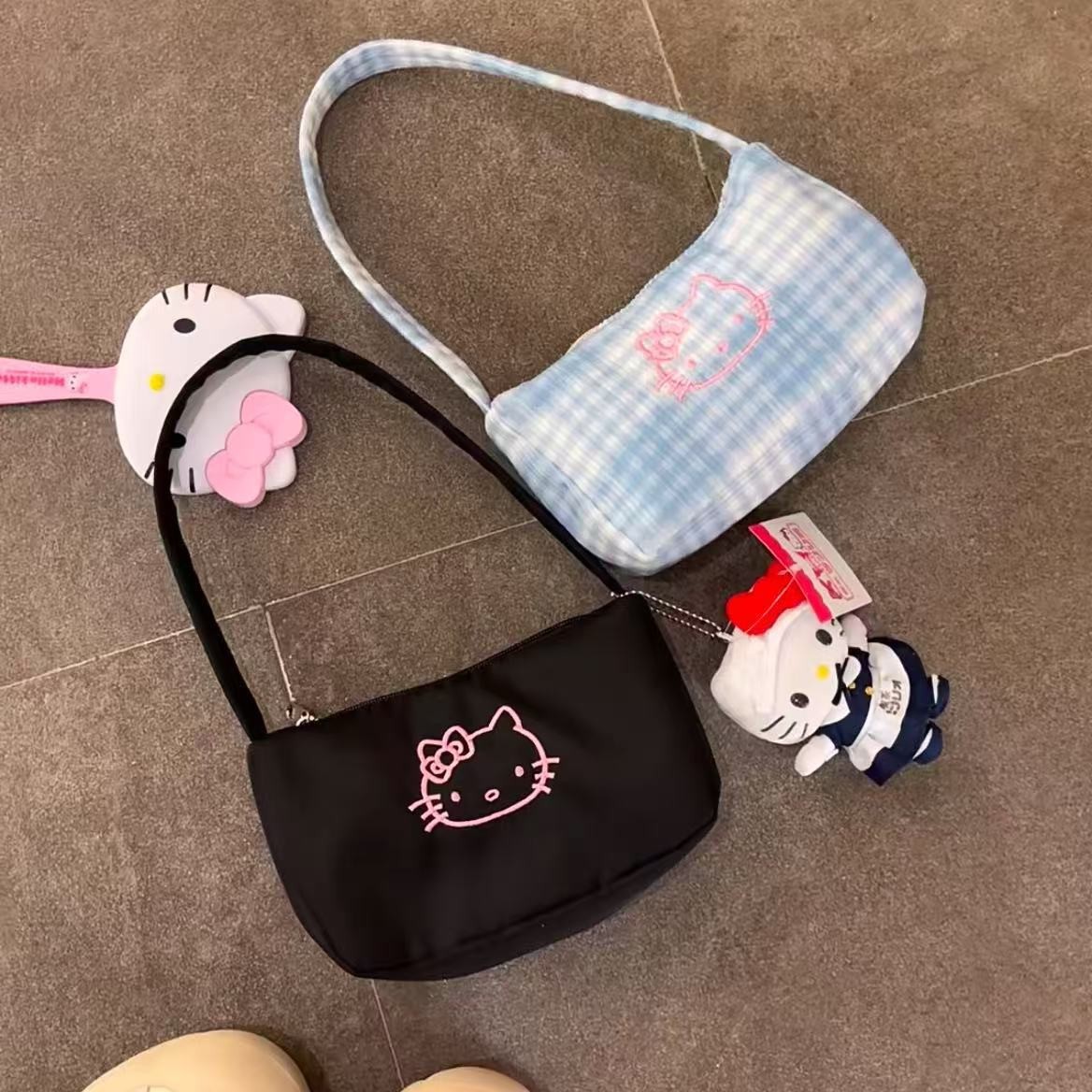 새로운 키티 자수 숄더백, 오리지널, 다재다능하고 귀엽고 신선하고 절묘한 외출용 겨드랑이 휴대용 키티캣스토어 가기