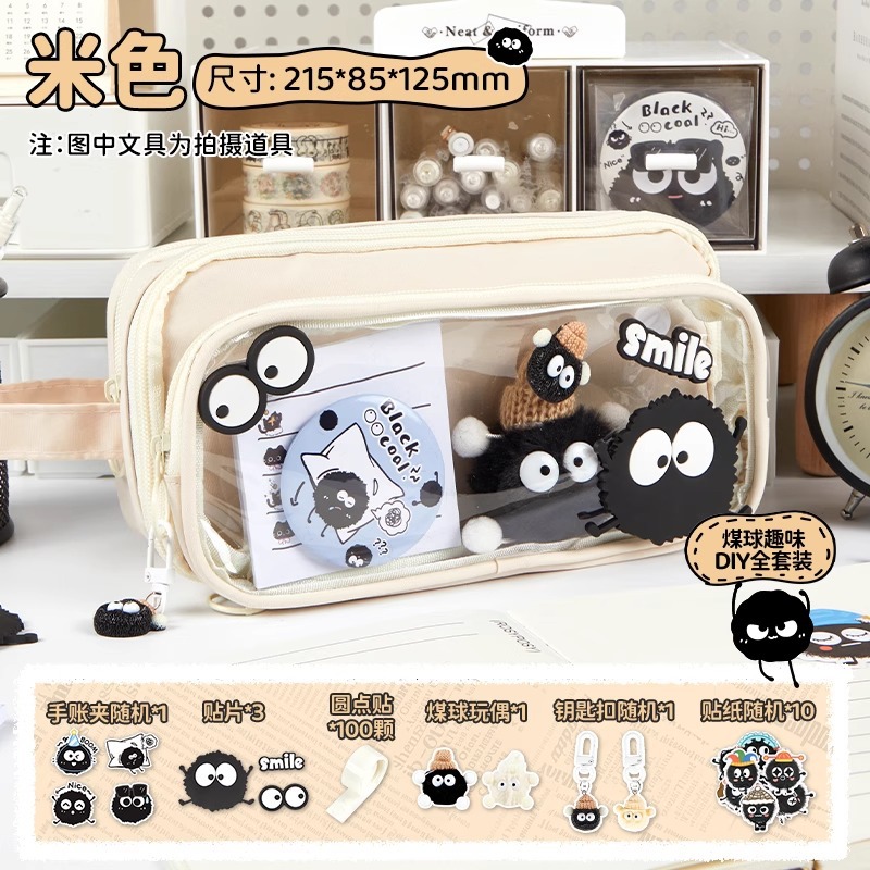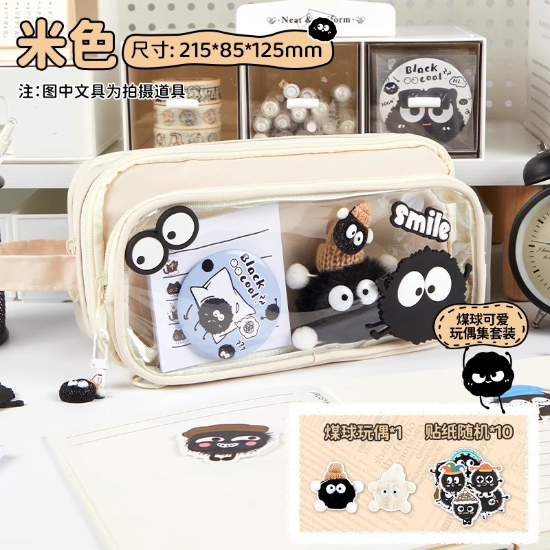 • [귀여운 인형 컬렉션 세트] 크림라이스 필통/10단 탈부착 가능 + 연탄인형 + 스티커*10