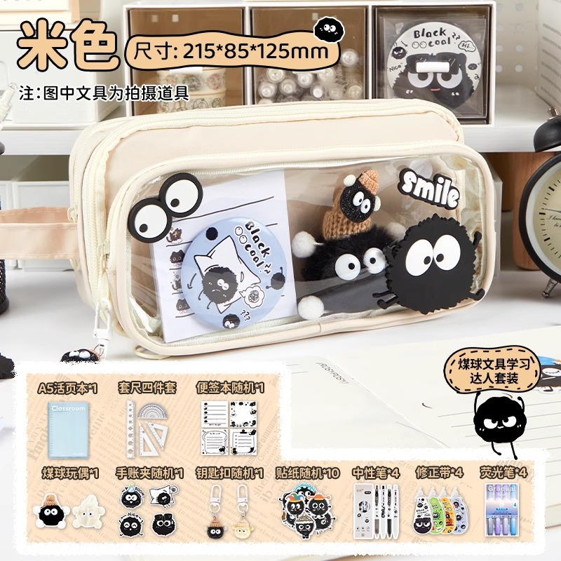 • [슈퍼밸류 노트 스터디박스] 크림라이스 필통 + 연탄 젤펜 + 형광펜 + 메모장 + 지갑 + 연탄인형 + 스티커*10