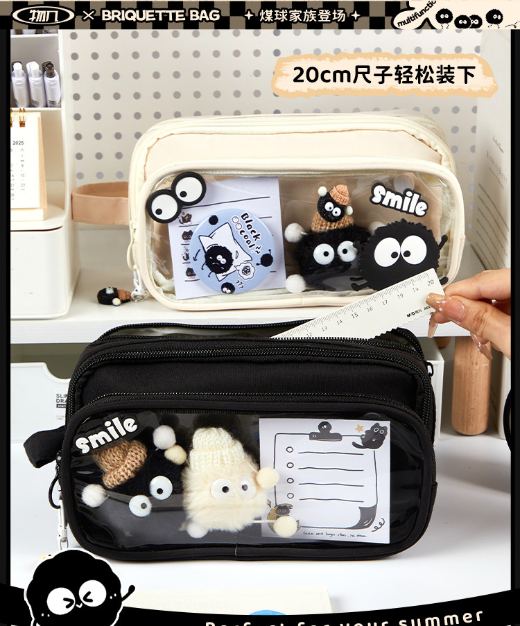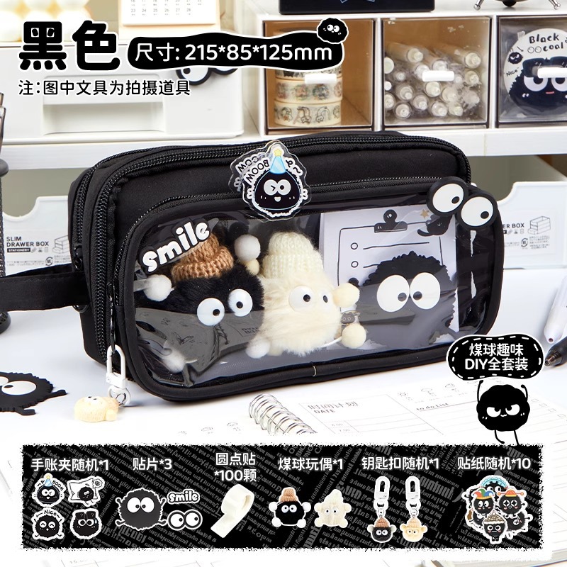 • [귀여운 연탄인형 컬렉션세트] 쿨블랙 필통/10단 탈부착 가능 + 연탄인형 + 스티커*10