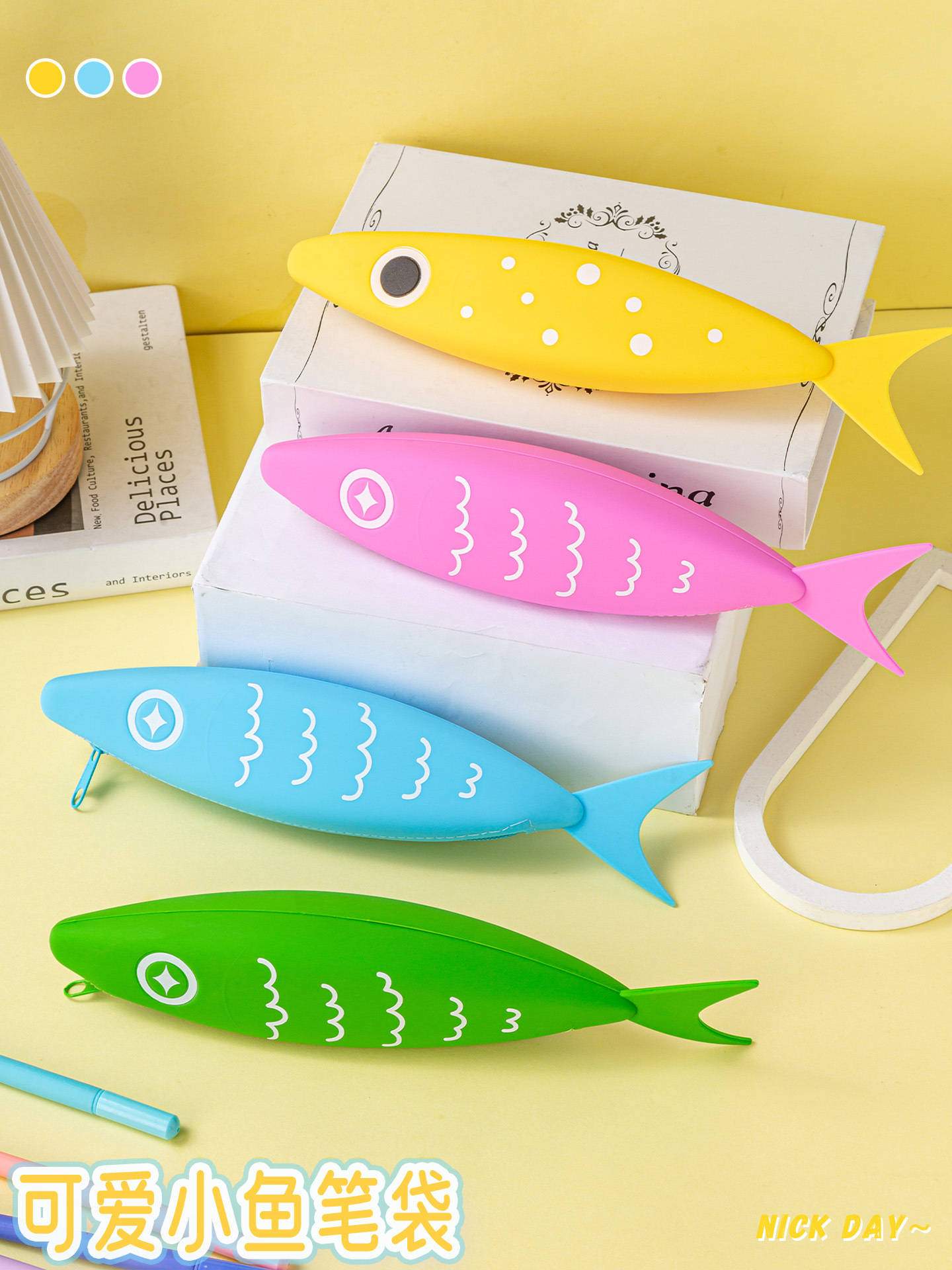 새로운 실리콘 연필 케이스 작은 물고기 버블 문구 연필 케이스 재미있는 멀티 컬러 물고기 간단한 고가의 초등학교 학생 연필 케이스