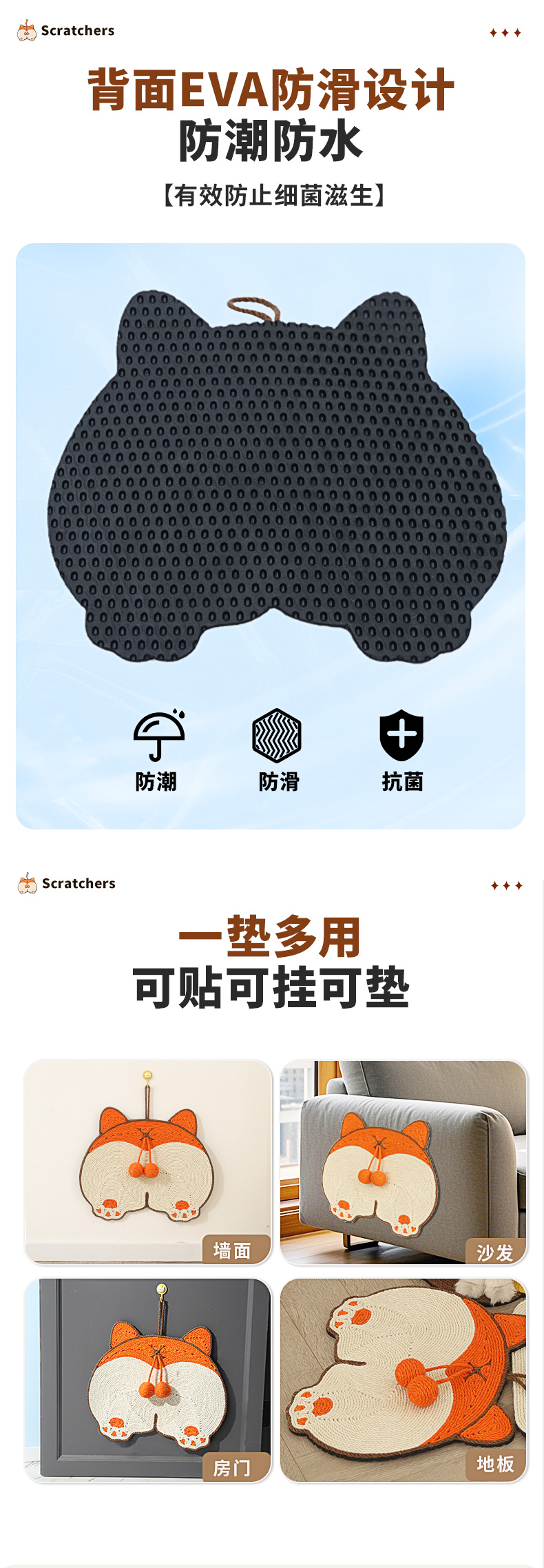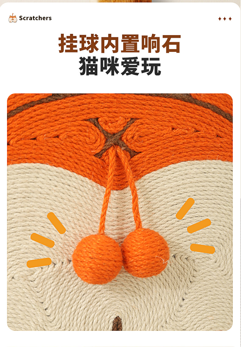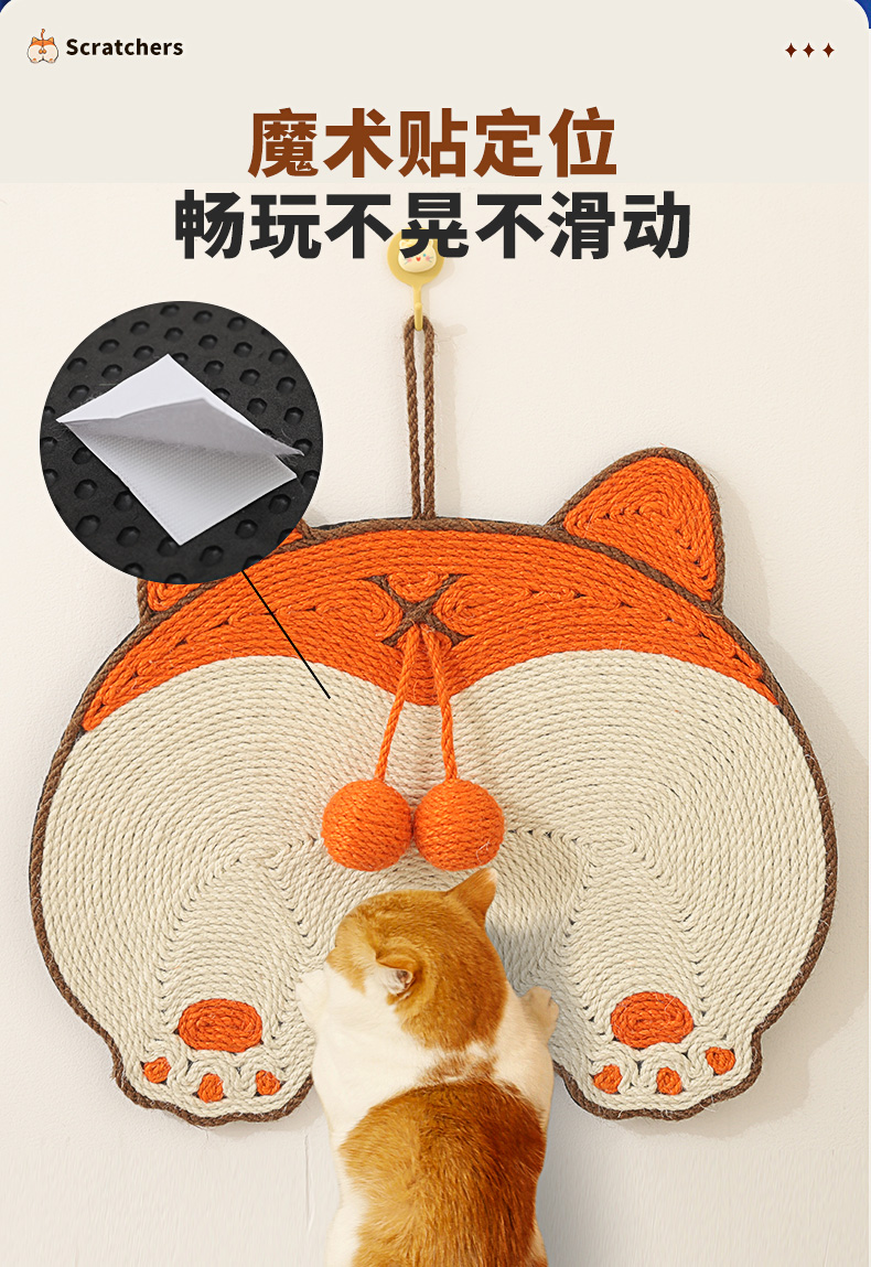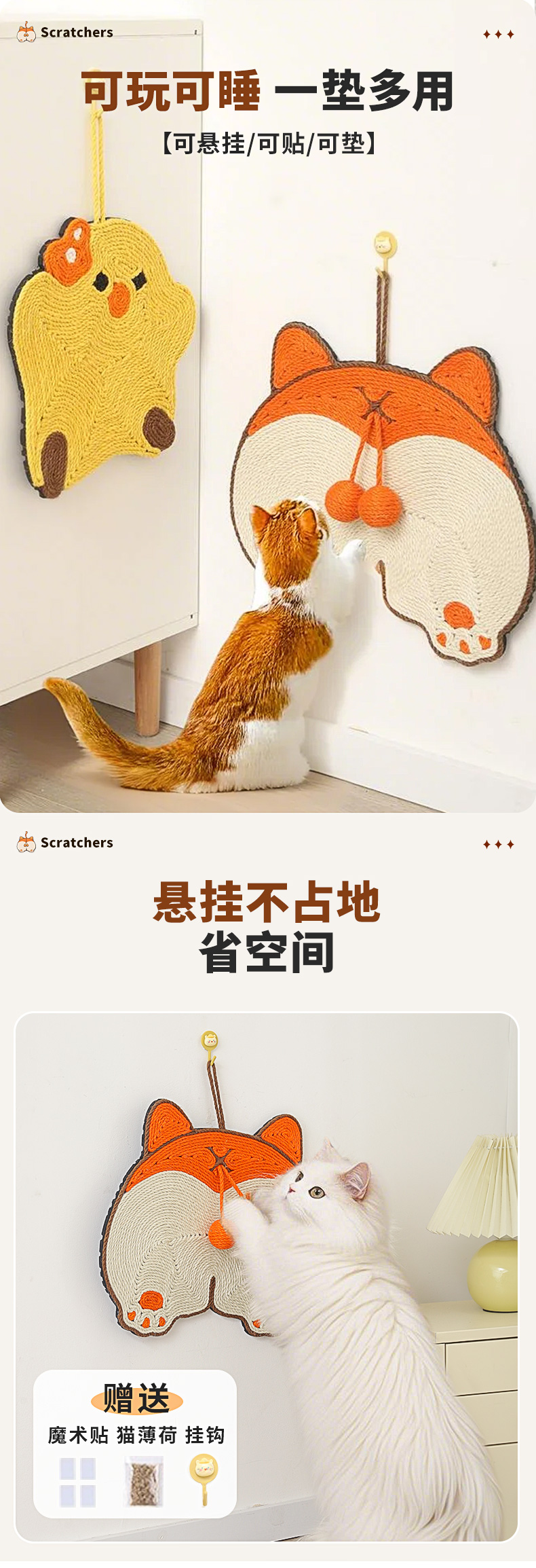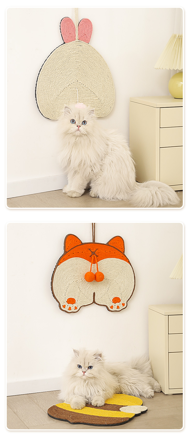 【品名】:hoopet小鱼/仙人掌款剑麻猫抓垫/企鹅/蜜蜂/新版柯基屁股/开心小鸡/白兔子带毛球/郁金香猫抓垫