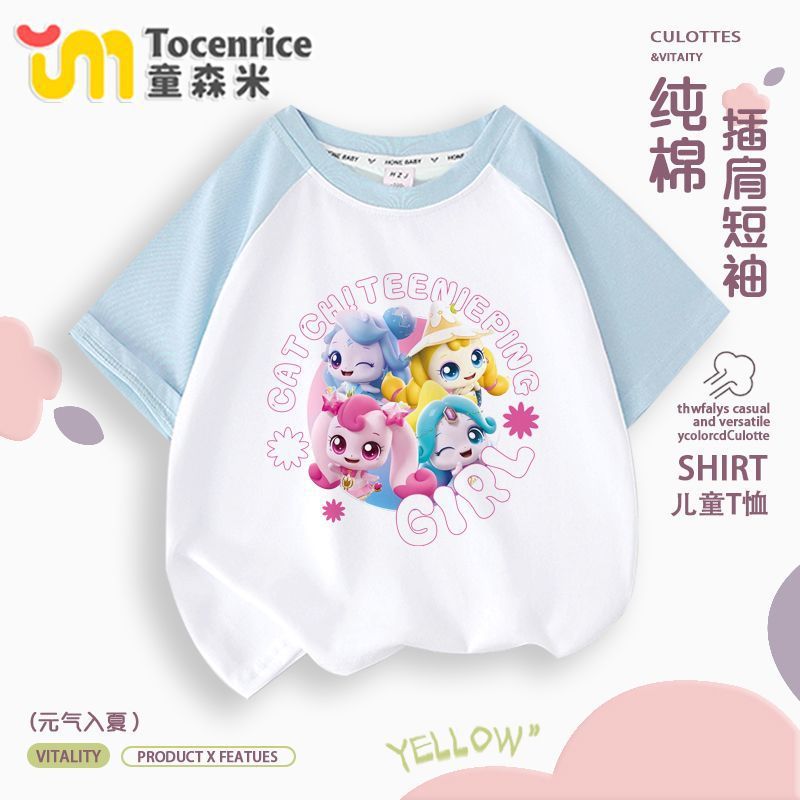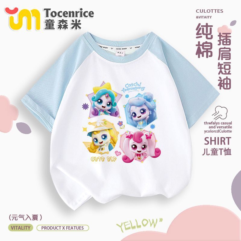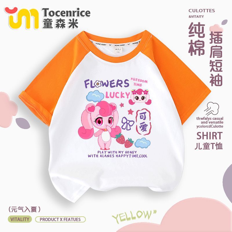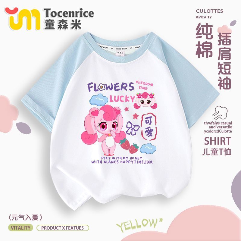 귀엽고 귀여운 소녀 반팔 멋진 귀여운 여름 티셔츠 라글란 반팔 아기 소녀 유행 라운드 넥 탑 트렌디 9스토어 가기