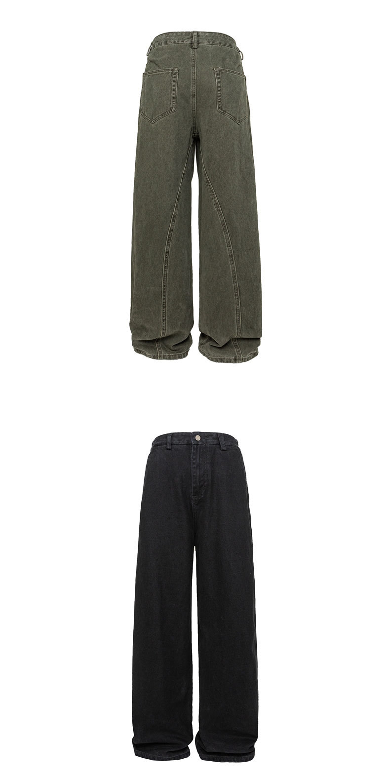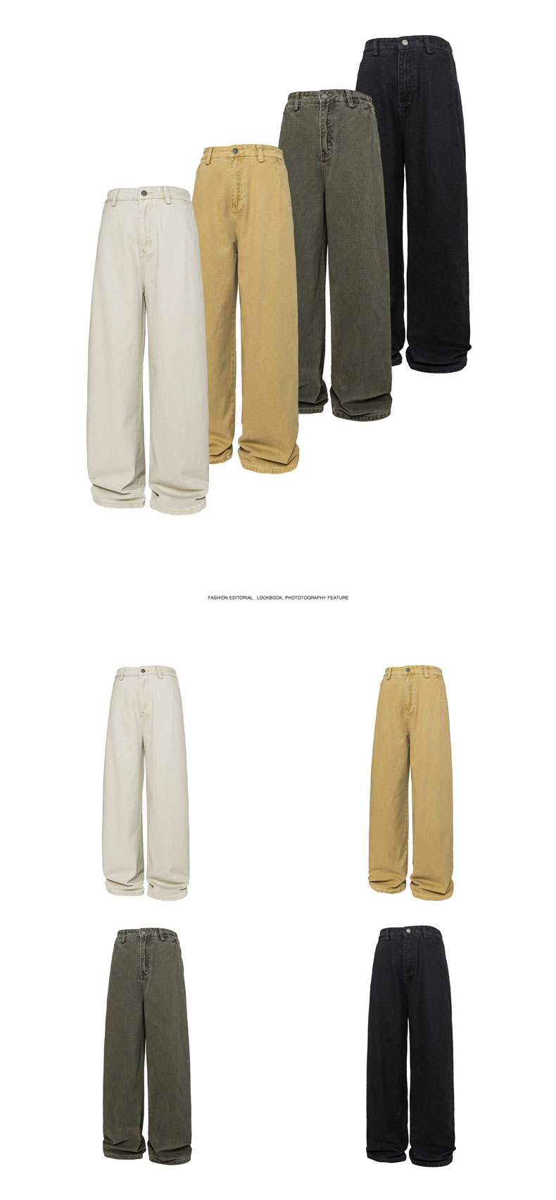 윤엔 봄과 가을 미국 복고풍 단색 심플 청바지 남녀 통근 느슨한 캐주얼 올매치 캐주얼 바지