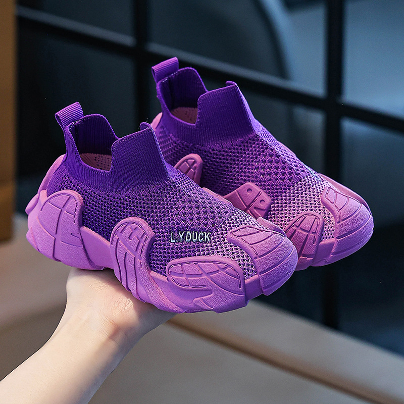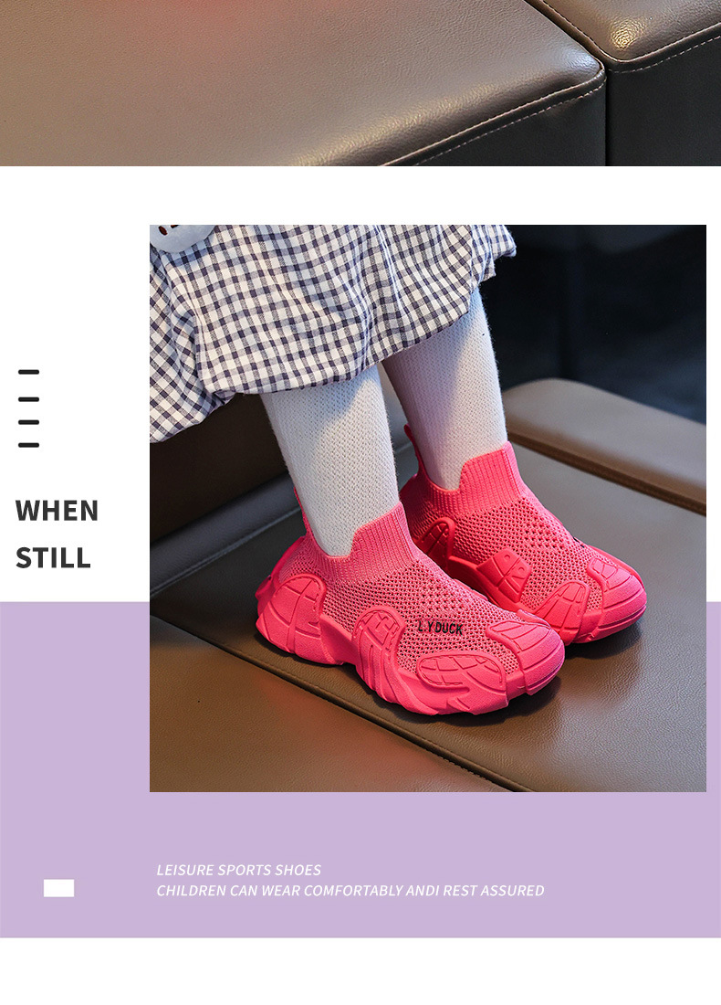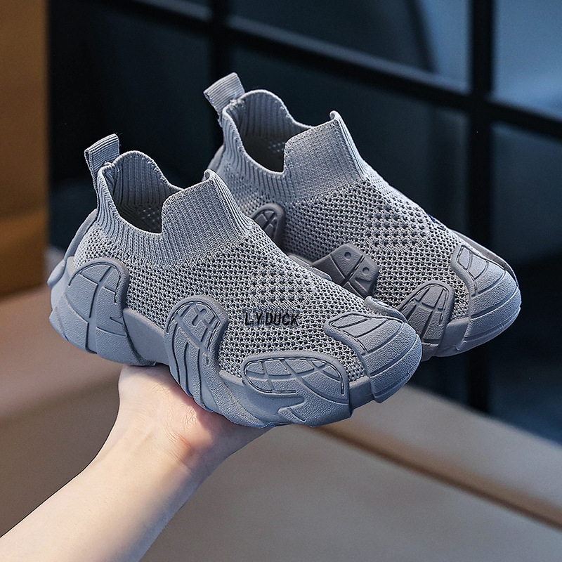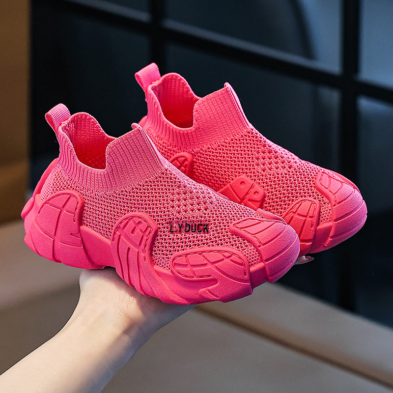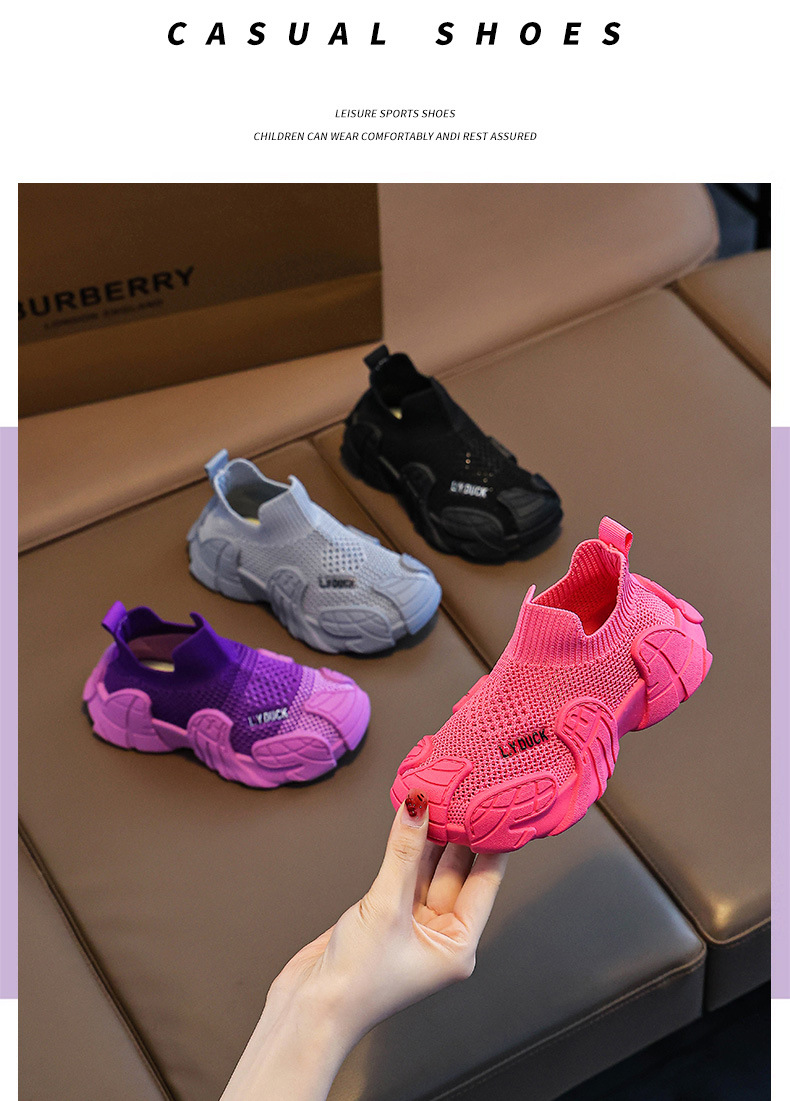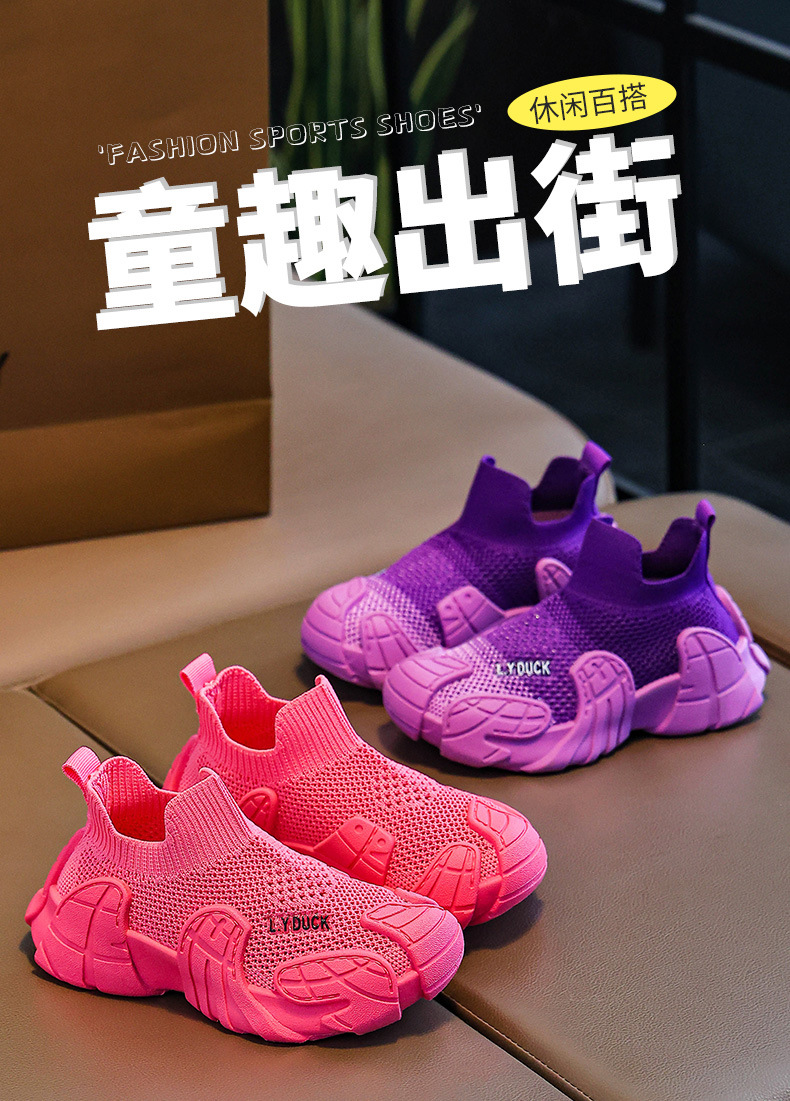 어린이 운동화 봄, 가을, 여름 소년과 소녀를위한 플라이 짠 신발 2025 새로운 간단하고 세련된 슬립 온 베이비 메쉬 신발스토어 가기