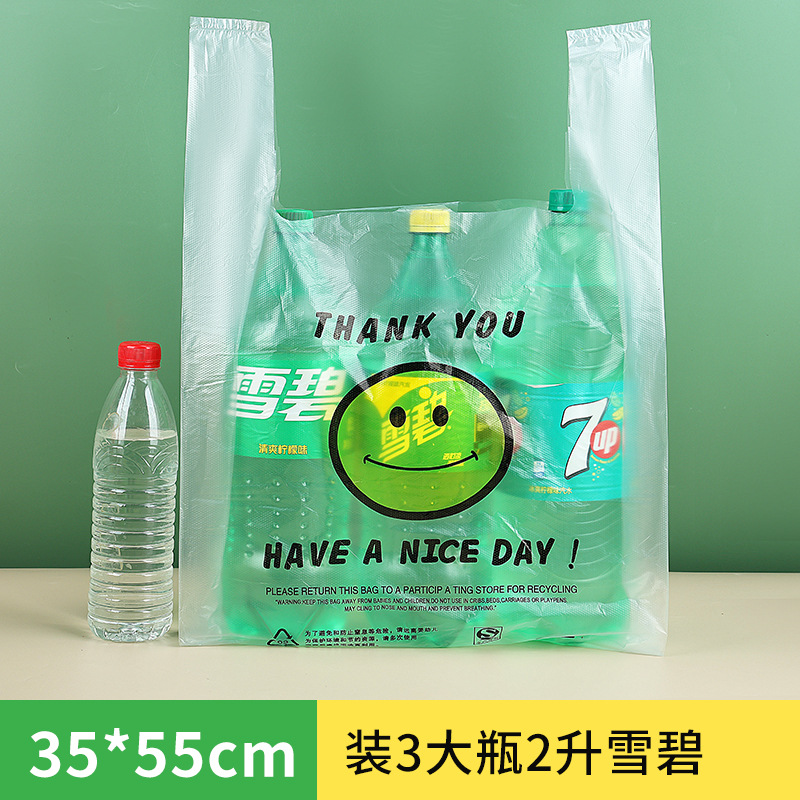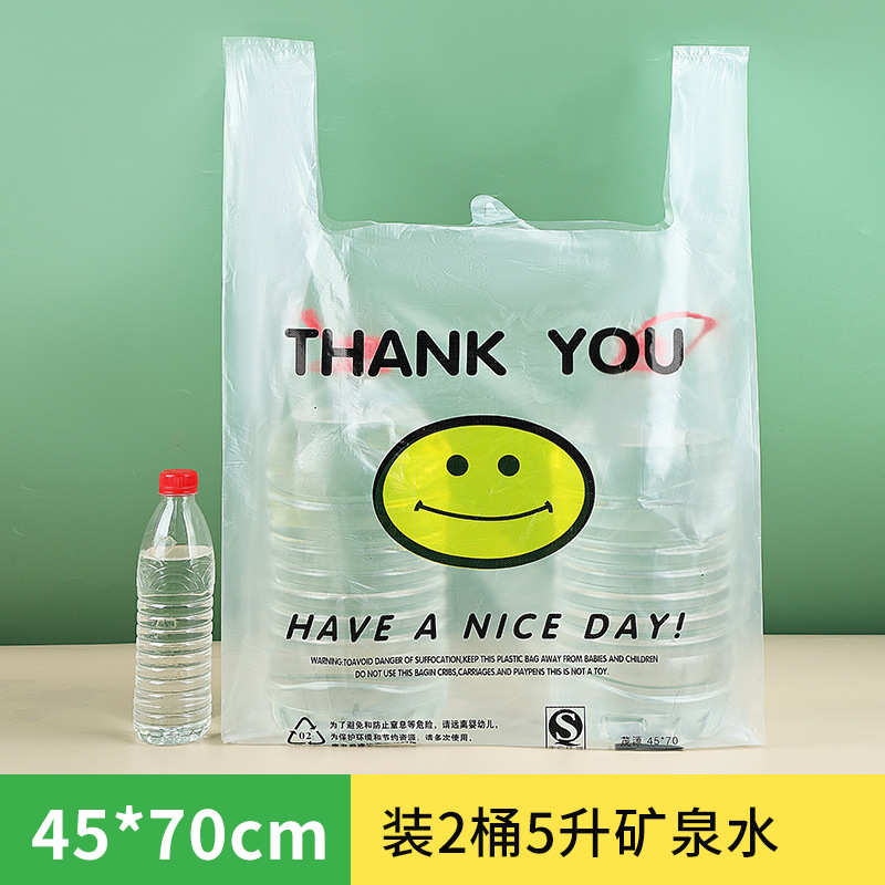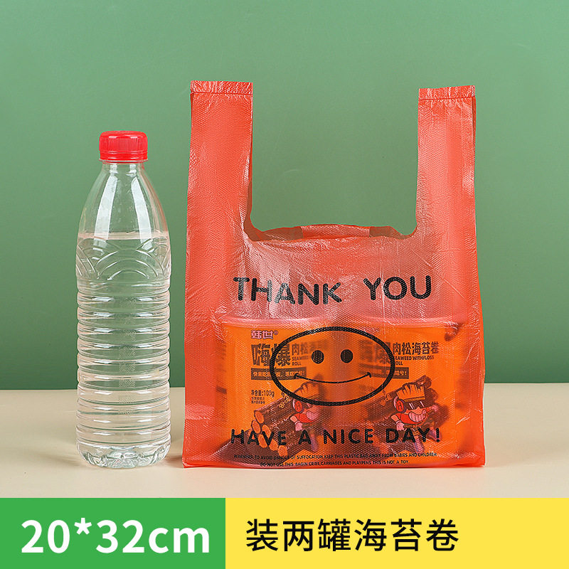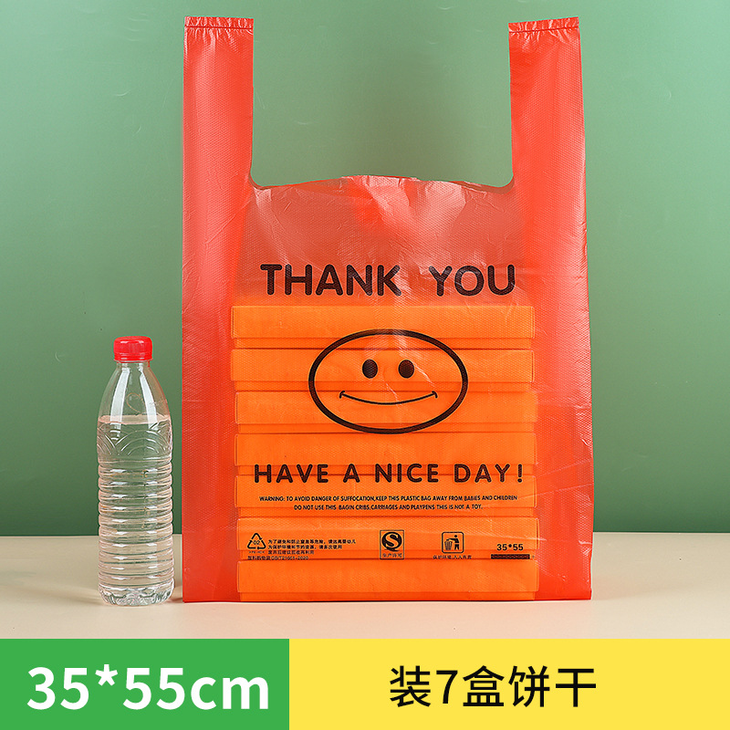 두꺼운 웃는 얼굴 비닐 봉투 식품 등급 편의 가방 투명 휴대용 테이크 아웃 포장 도매 빨간색 쇼핑백스토어 가기
