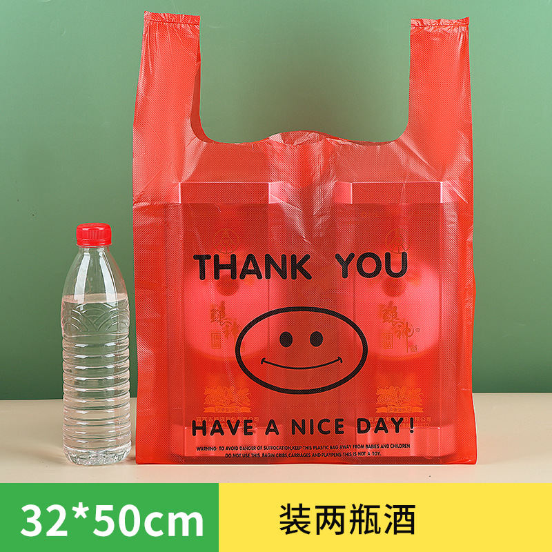 두꺼운 웃는 얼굴 비닐 봉투 식품 등급 편의 가방 투명 휴대용 테이크 아웃 포장 도매 빨간색 쇼핑백