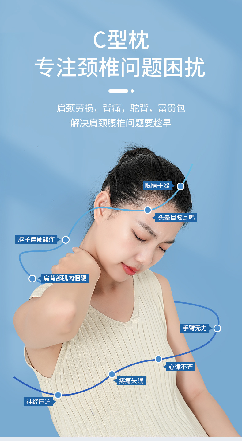 새로운 경추 베개, 반구형 C자형 베개, 곡선을 일직선으로 교정하는 마사지 견인 베개, 경추 재정렬 및 휴식을 위한 가정용스토어 가기