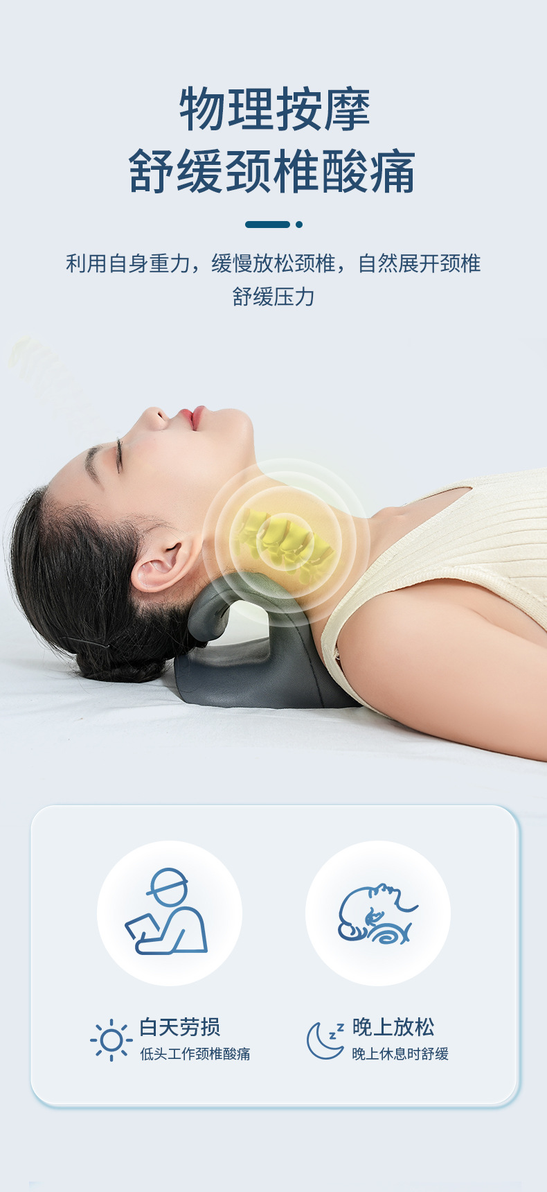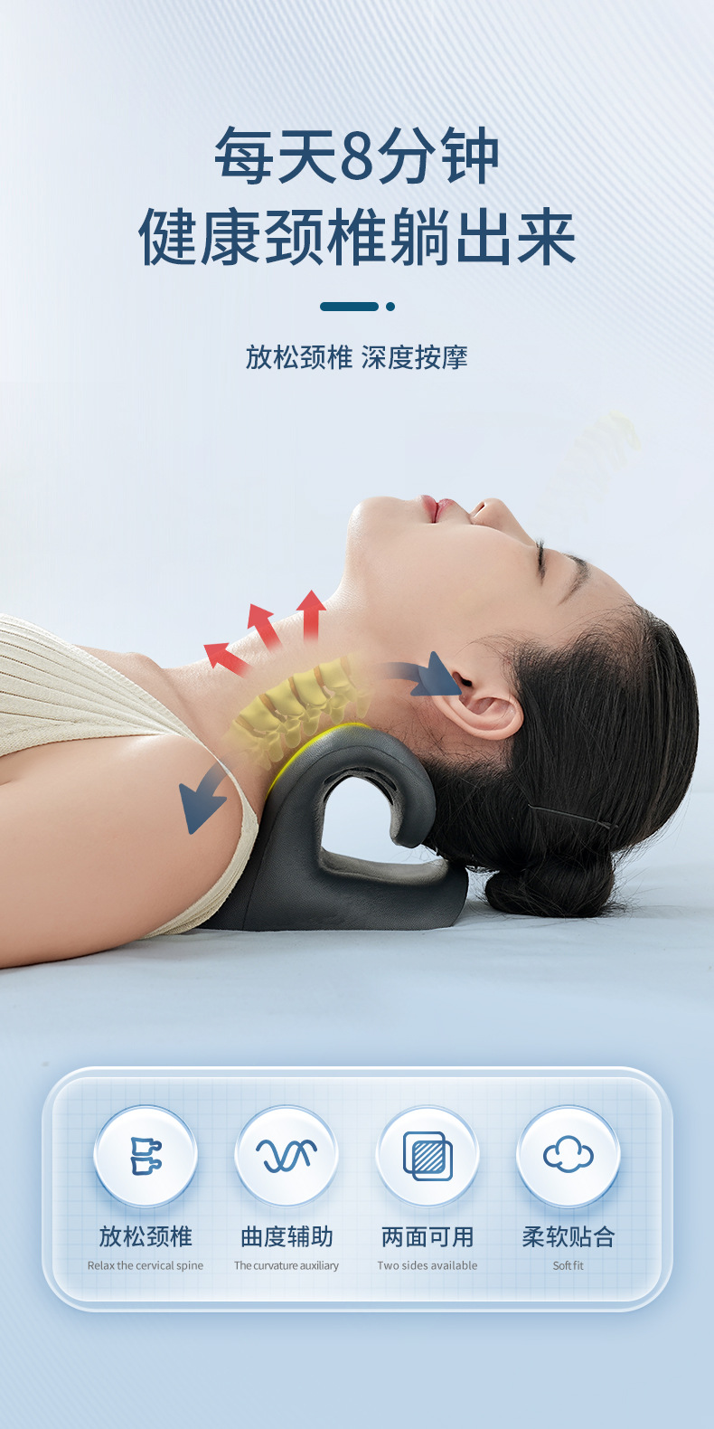 새로운 경추 베개, 반구형 C자형 베개, 곡선을 일직선으로 교정하는 마사지 견인 베개, 경추 재정렬 및 휴식을 위한 가정용
