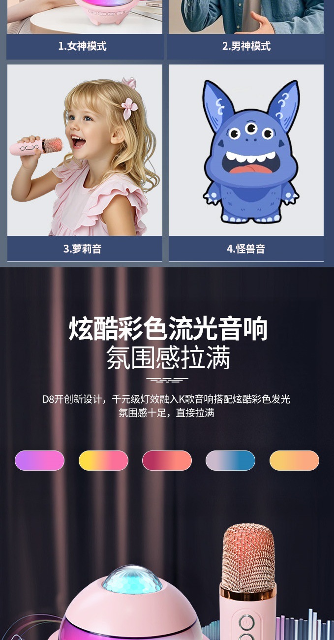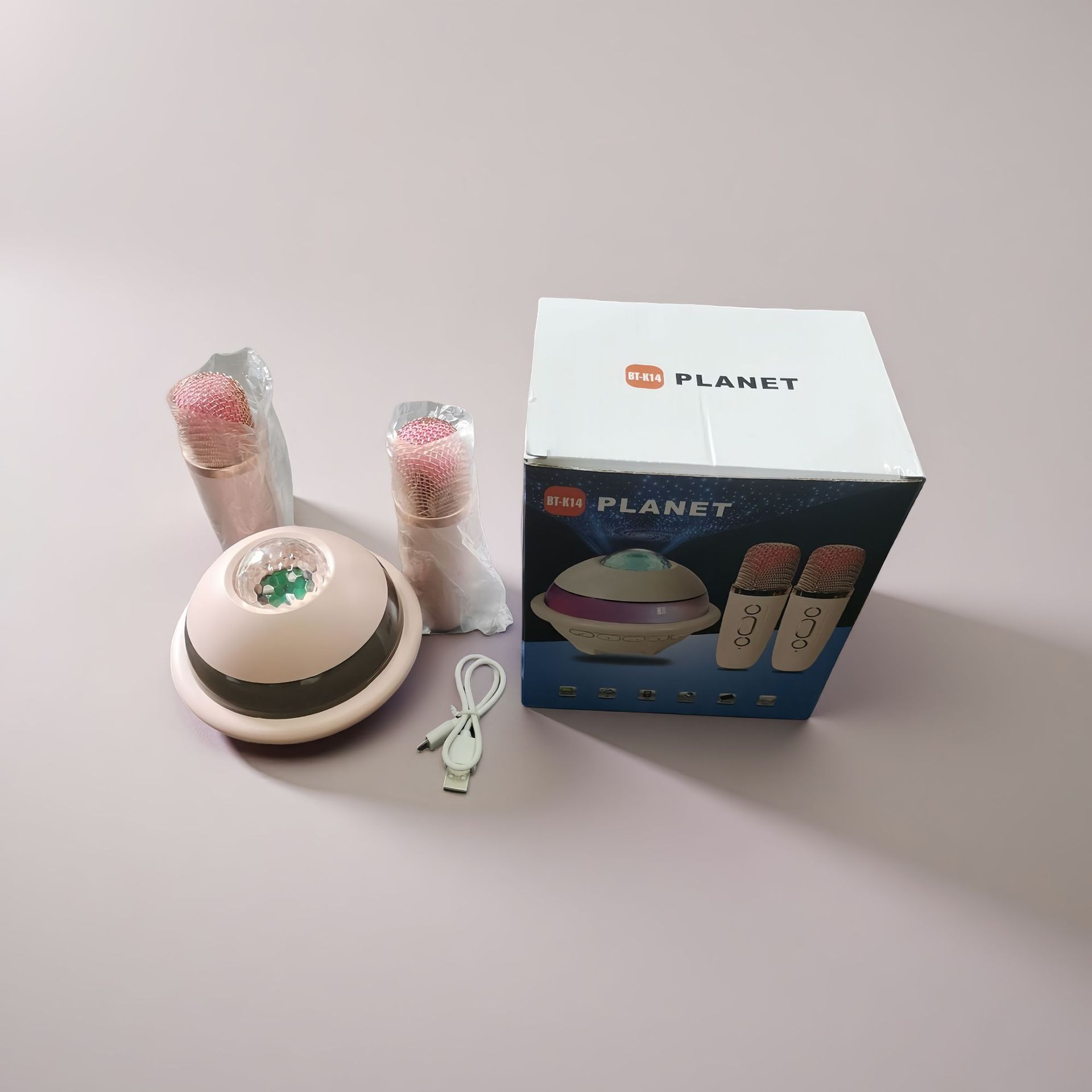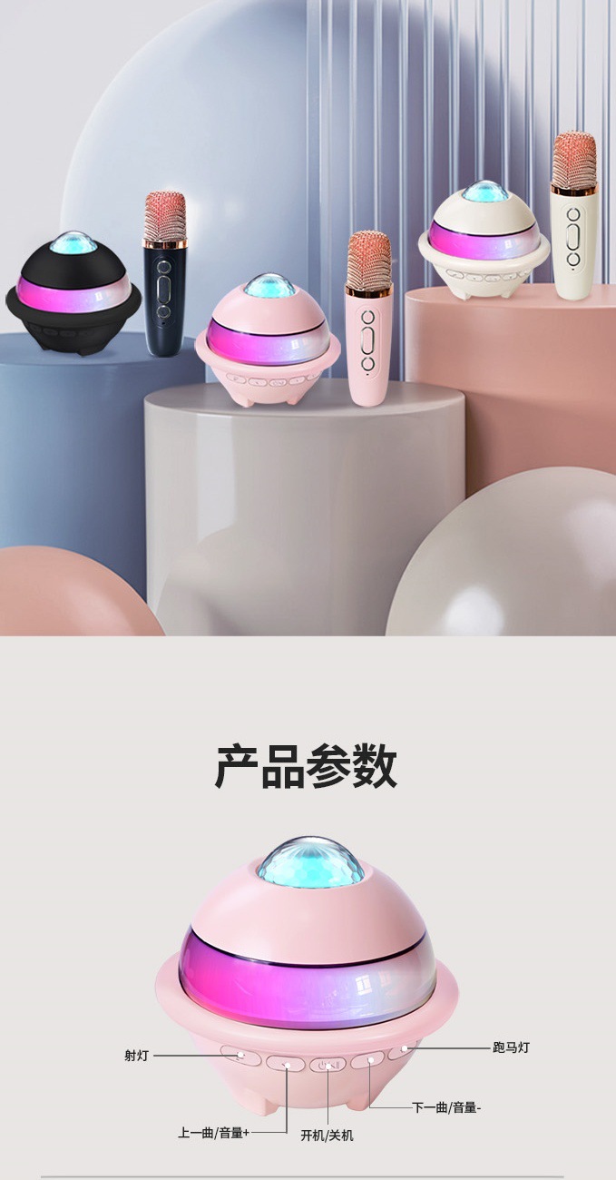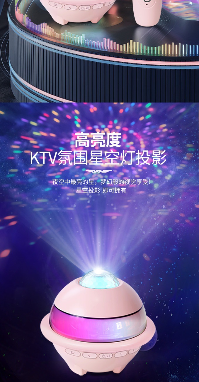 플래닛 블루투스 스피커, 별빛 천장, 다채로운 조명, 마이크, 스피커, 노래방 올인원 세트, 싱글/듀얼 마이크, KTV, 가정용스토어 가기