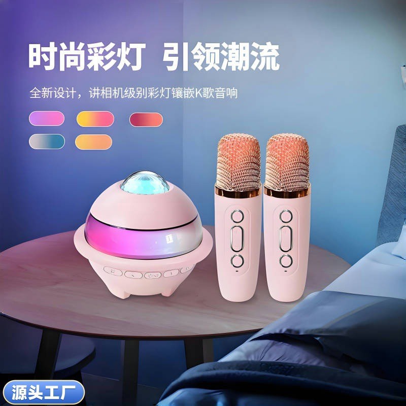플래닛 블루투스 스피커, 별빛 천장, 다채로운 조명, 마이크, 스피커, 노래방 올인원 세트, 싱글/듀얼 마이크, KTV, 가정용