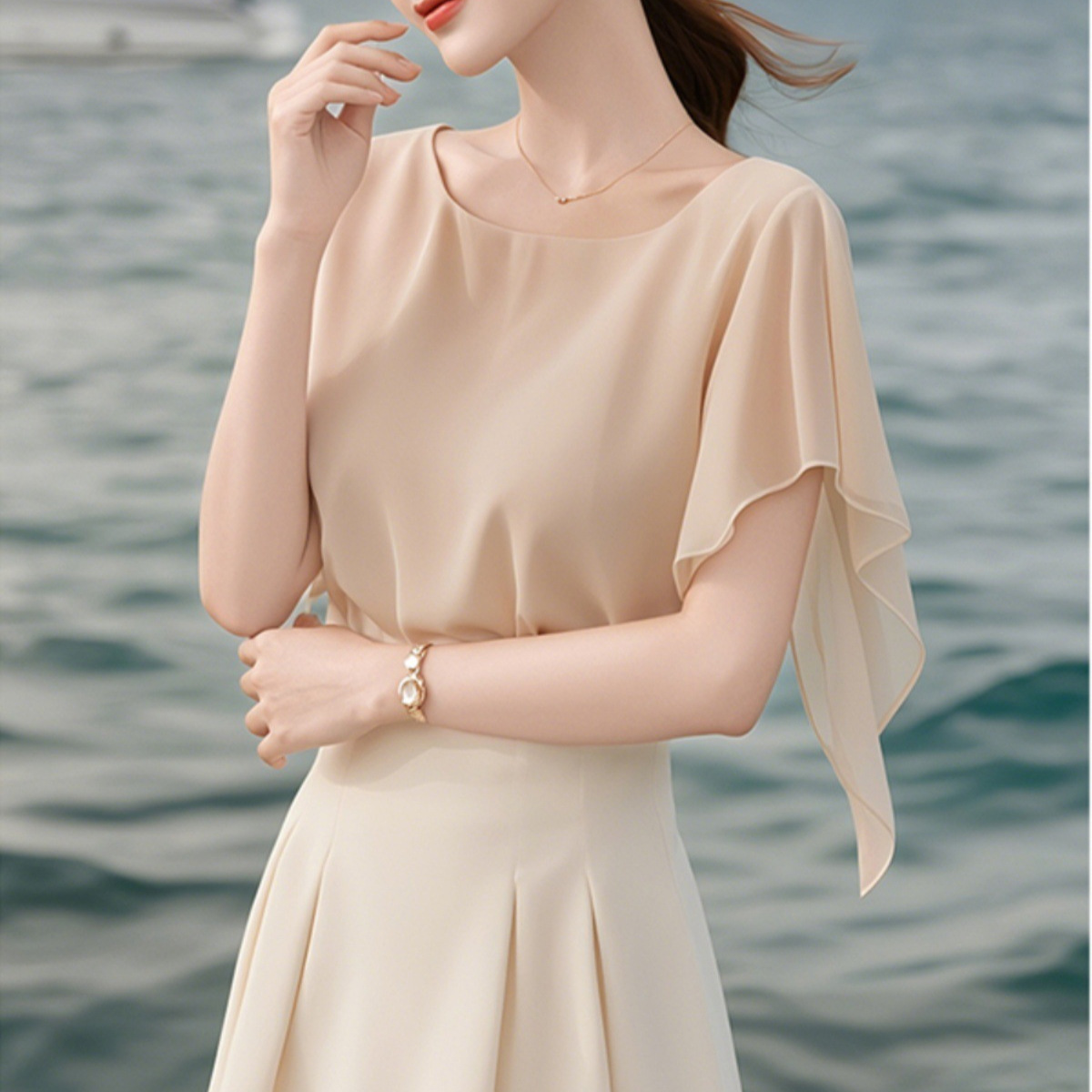2025 년 여름 여성을위한 독특한 아름다운 작은 셔츠 요정 우아한 통근 탑 프랑스 얇은 반팔 쉬폰 셔츠