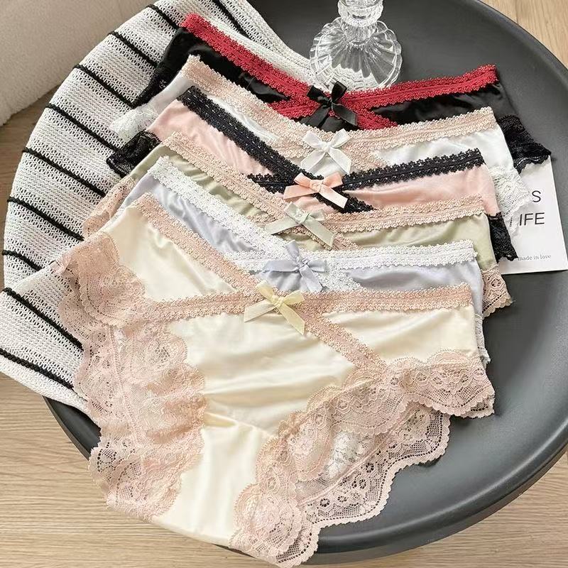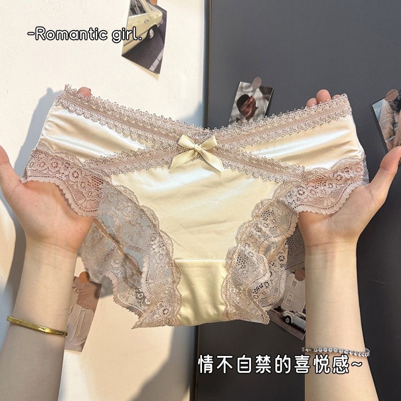 라이트 산소 레이스 ~ 프렌치 섹시 새틴 팬티 로우 웨이스트 코트 스타일 레이스 순수한 욕망 순수 코튼 팬티 소녀