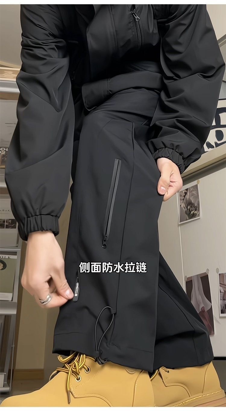 남성용 방수 아웃도어 팬츠, 봄 트렌디 브랜드 하이 스트리트 바이브 소프트 쉘 팬츠, 아메리칸 기능성 스타일 루즈 블랙 스트레이트 팬츠스토어 가기