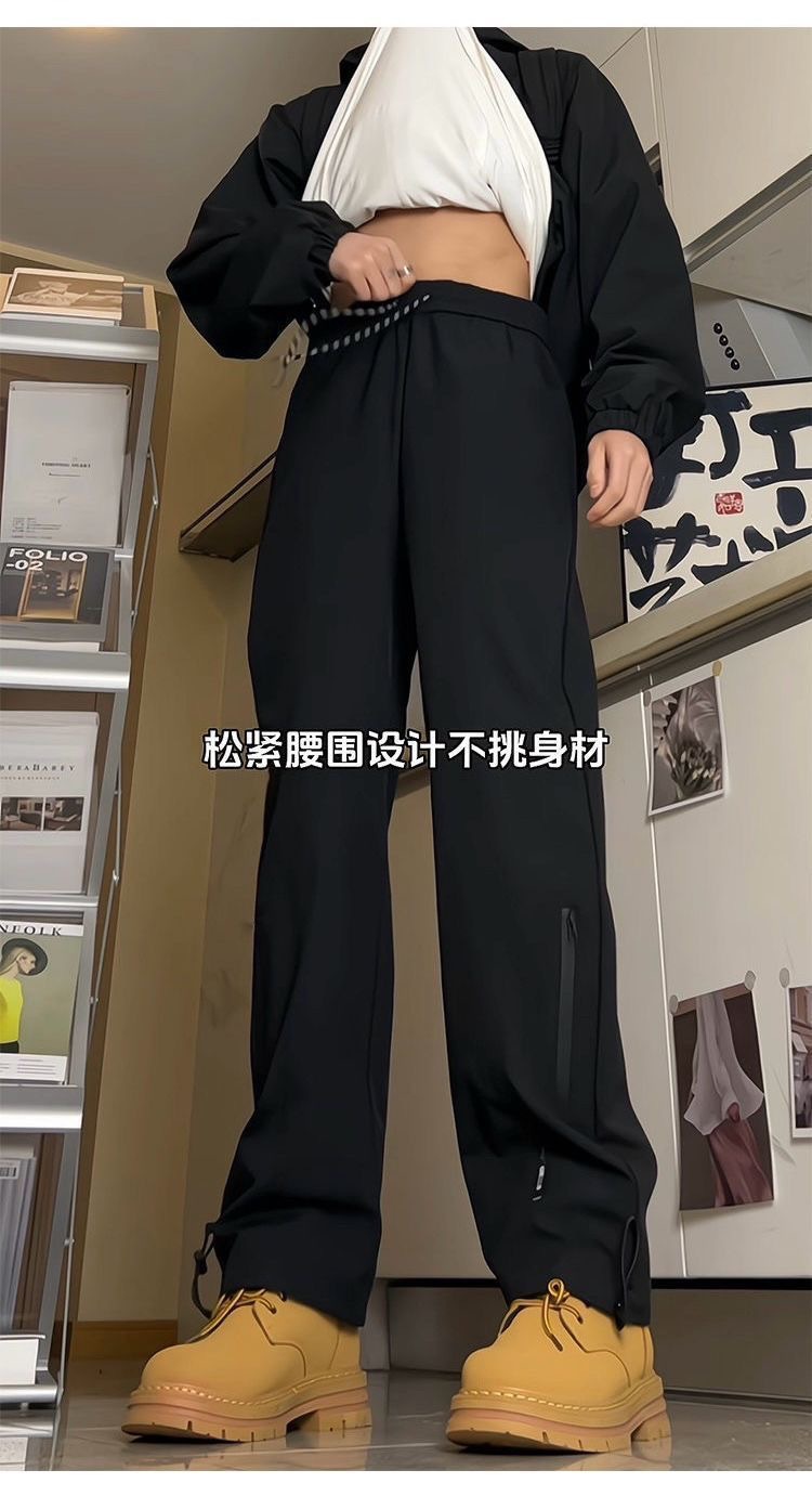 남성용 방수 아웃도어 팬츠, 봄 트렌디 브랜드 하이 스트리트 바이브 소프트 쉘 팬츠, 아메리칸 기능성 스타일 루즈 블랙 스트레이트 팬츠