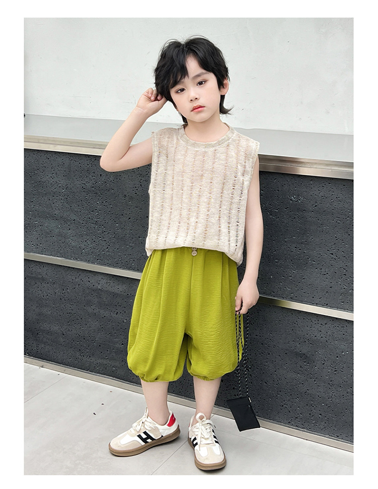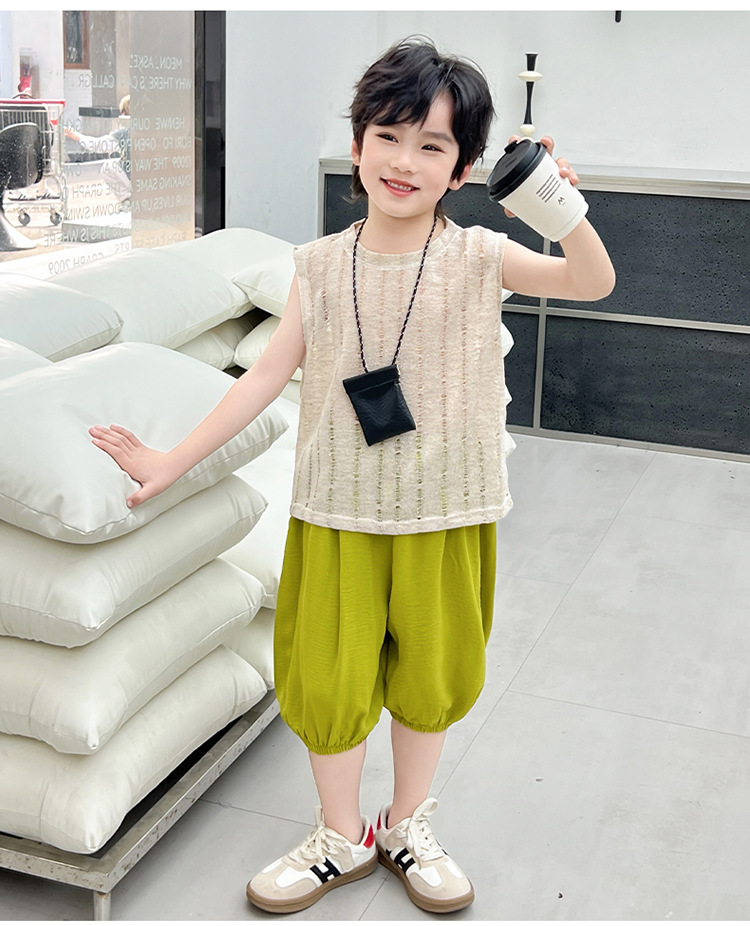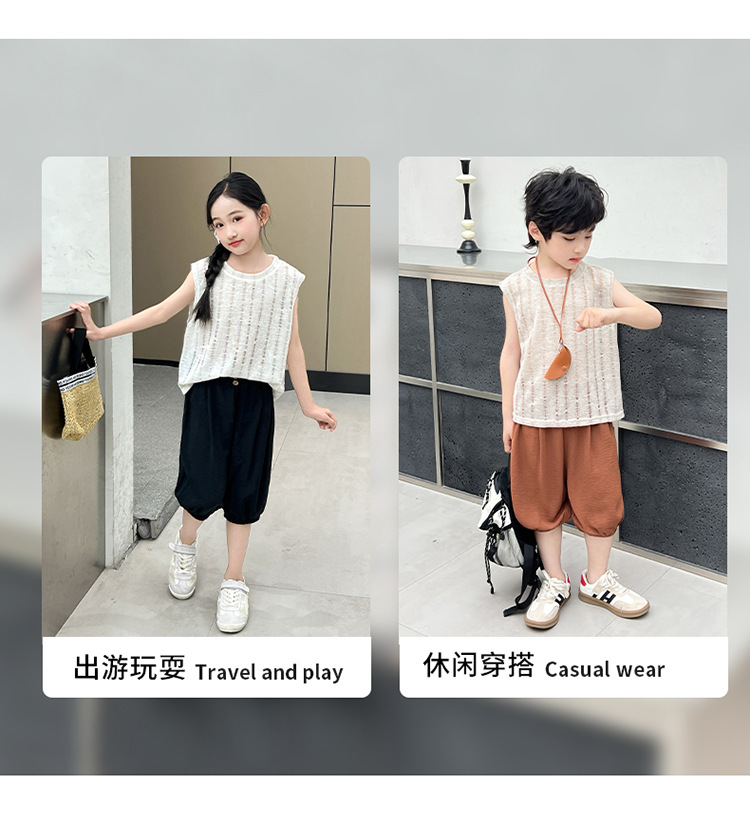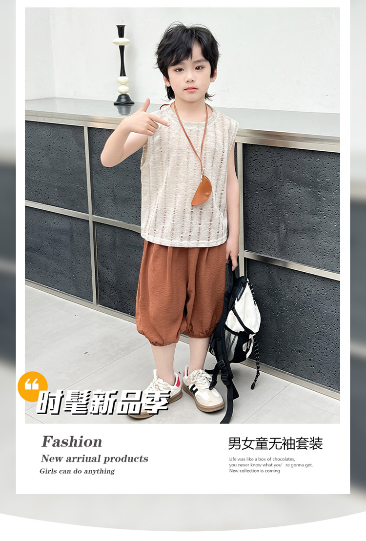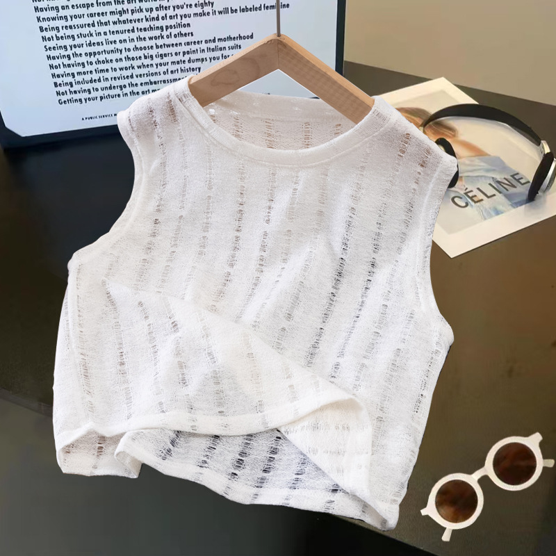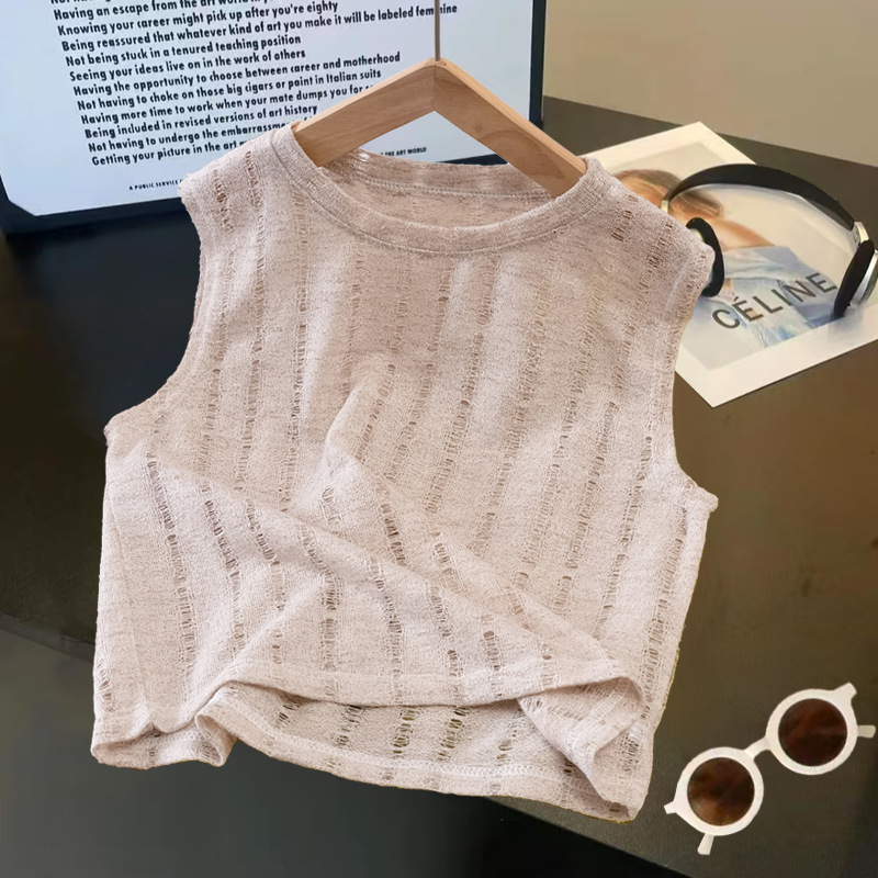 여름 중공 아기 소년과 소녀 올매치 패션 통기성 느슨한 민소매 니트 조끼 한국 유행 패션스토어 가기