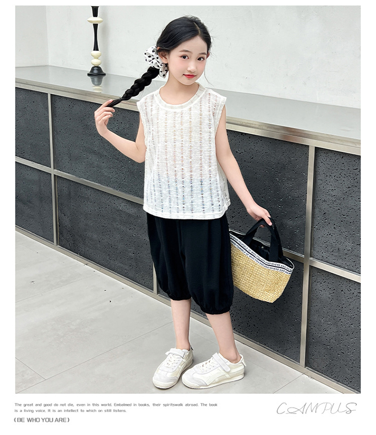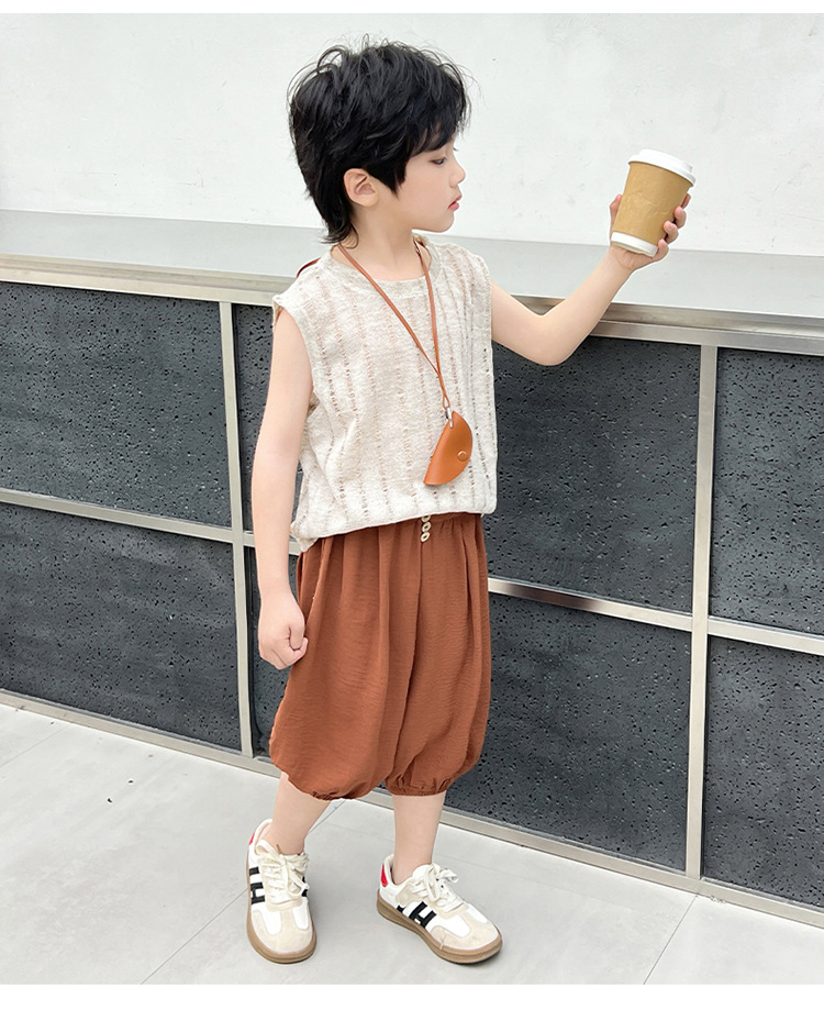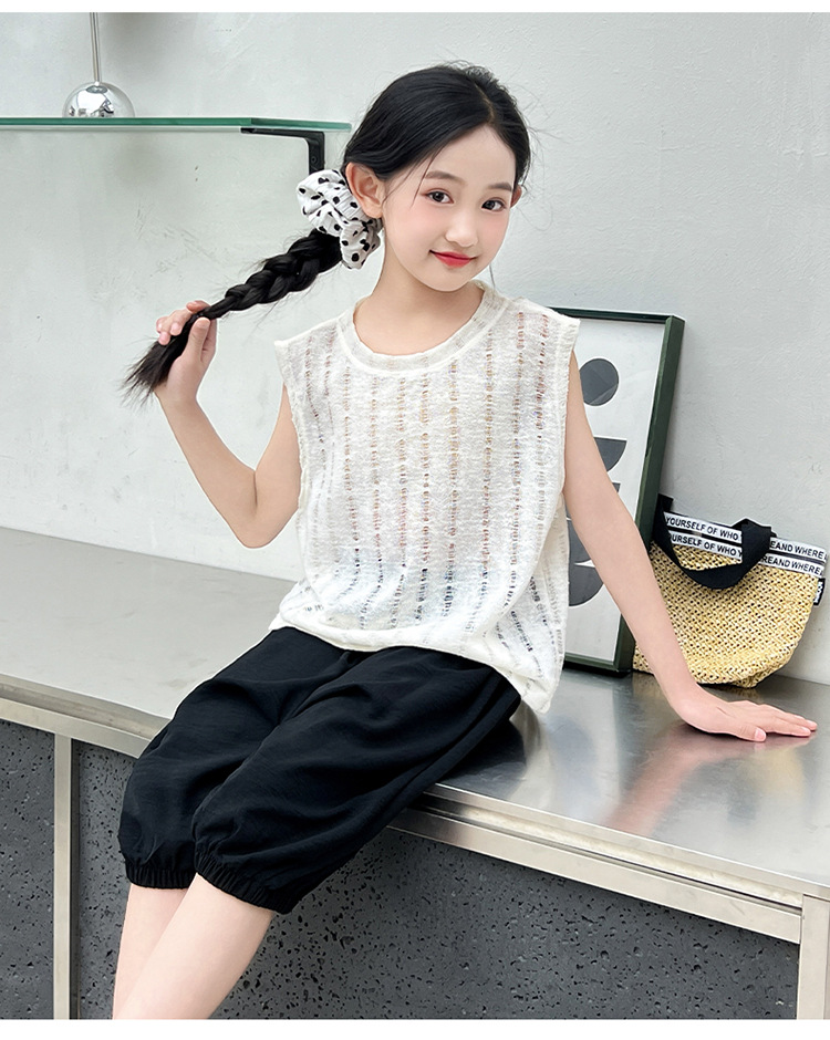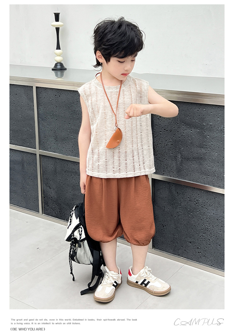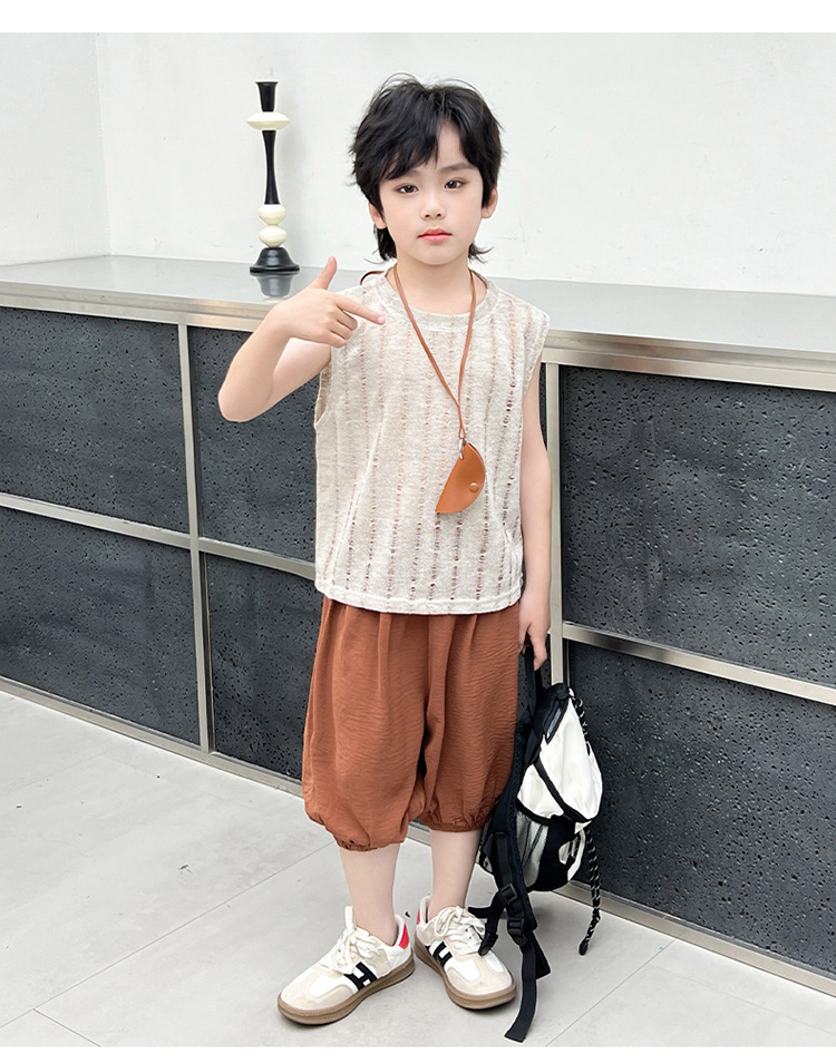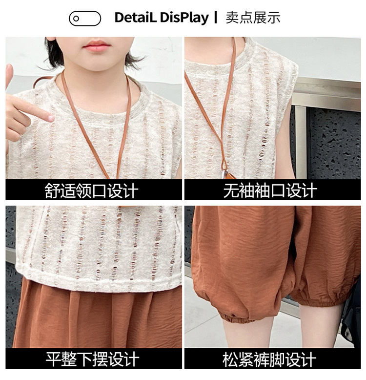 여름 중공 아기 소년과 소녀 올매치 패션 통기성 느슨한 민소매 니트 조끼 한국 유행 패션스토어 가기