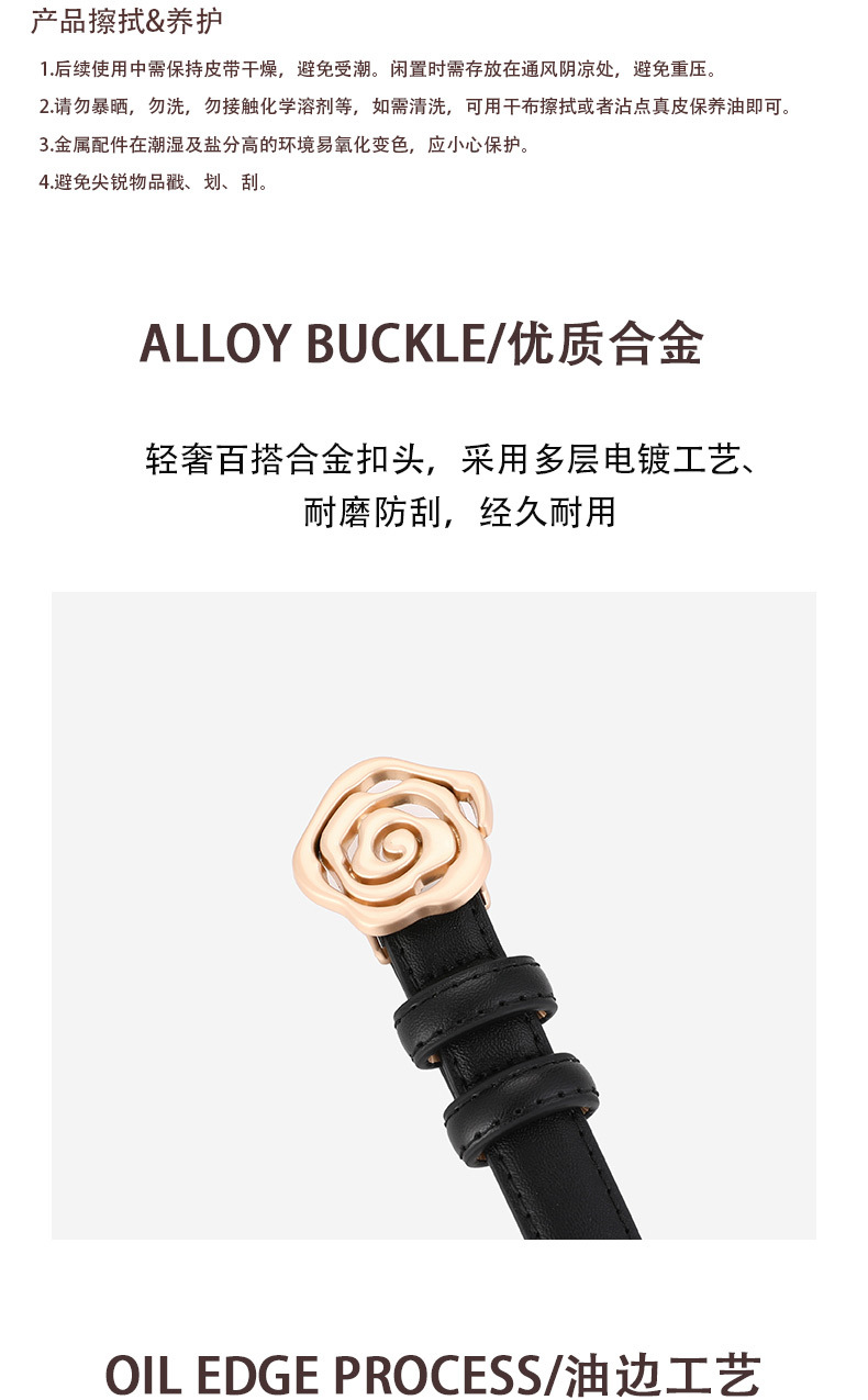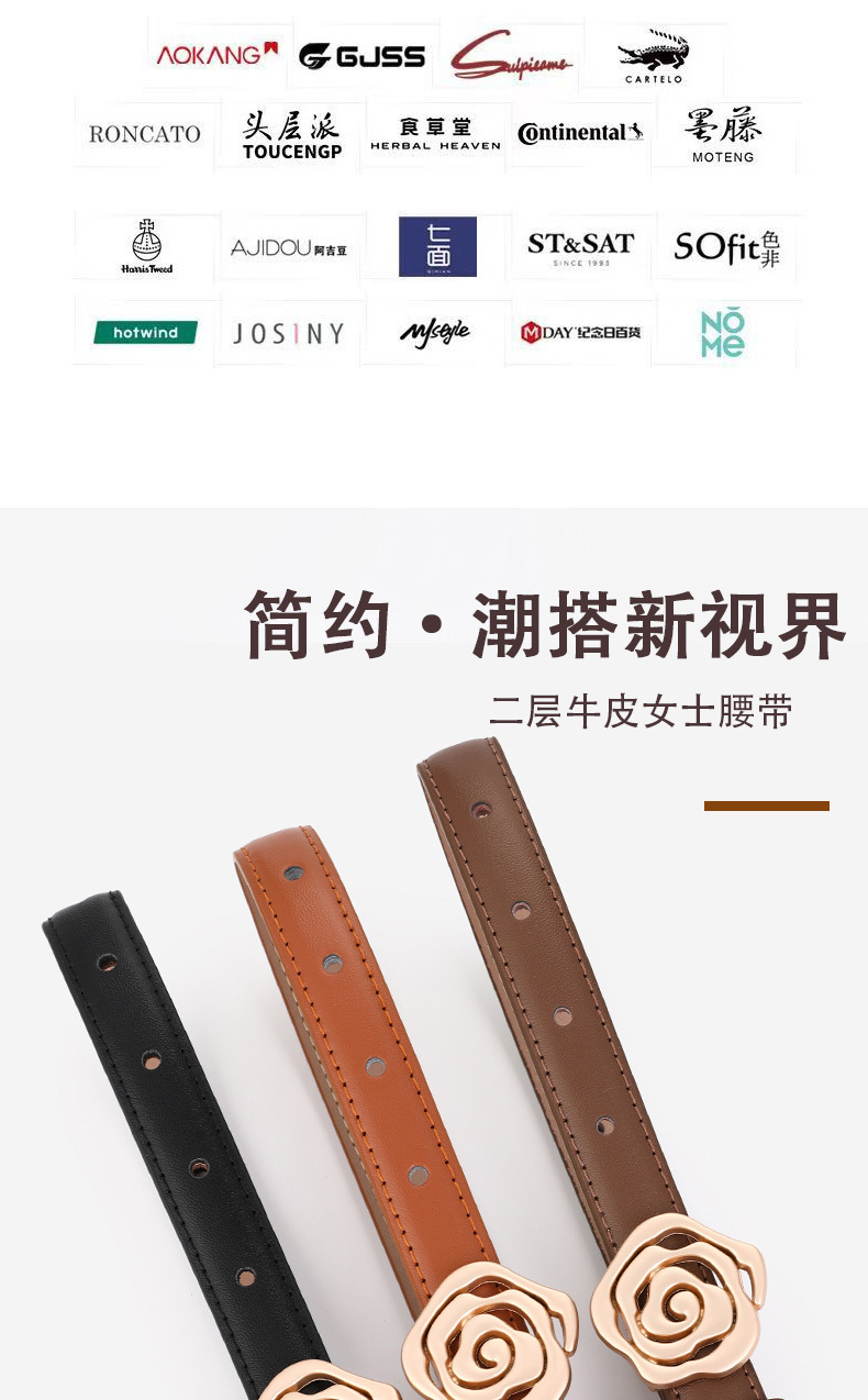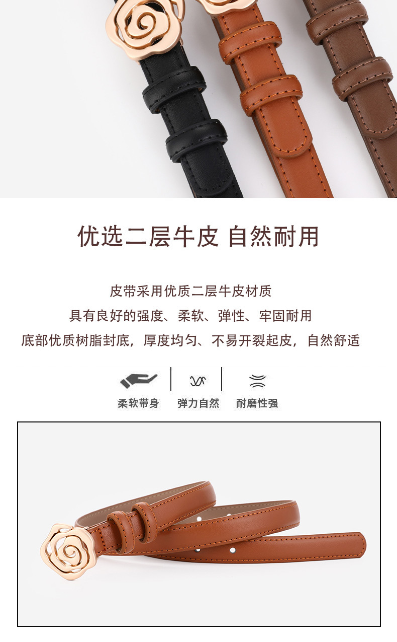 고급 장미 여성용 정품 가죽 벨트 바지 벨트, 심플하고 패셔너블하며 다재다능한 여성용 드레스 장식 벨트