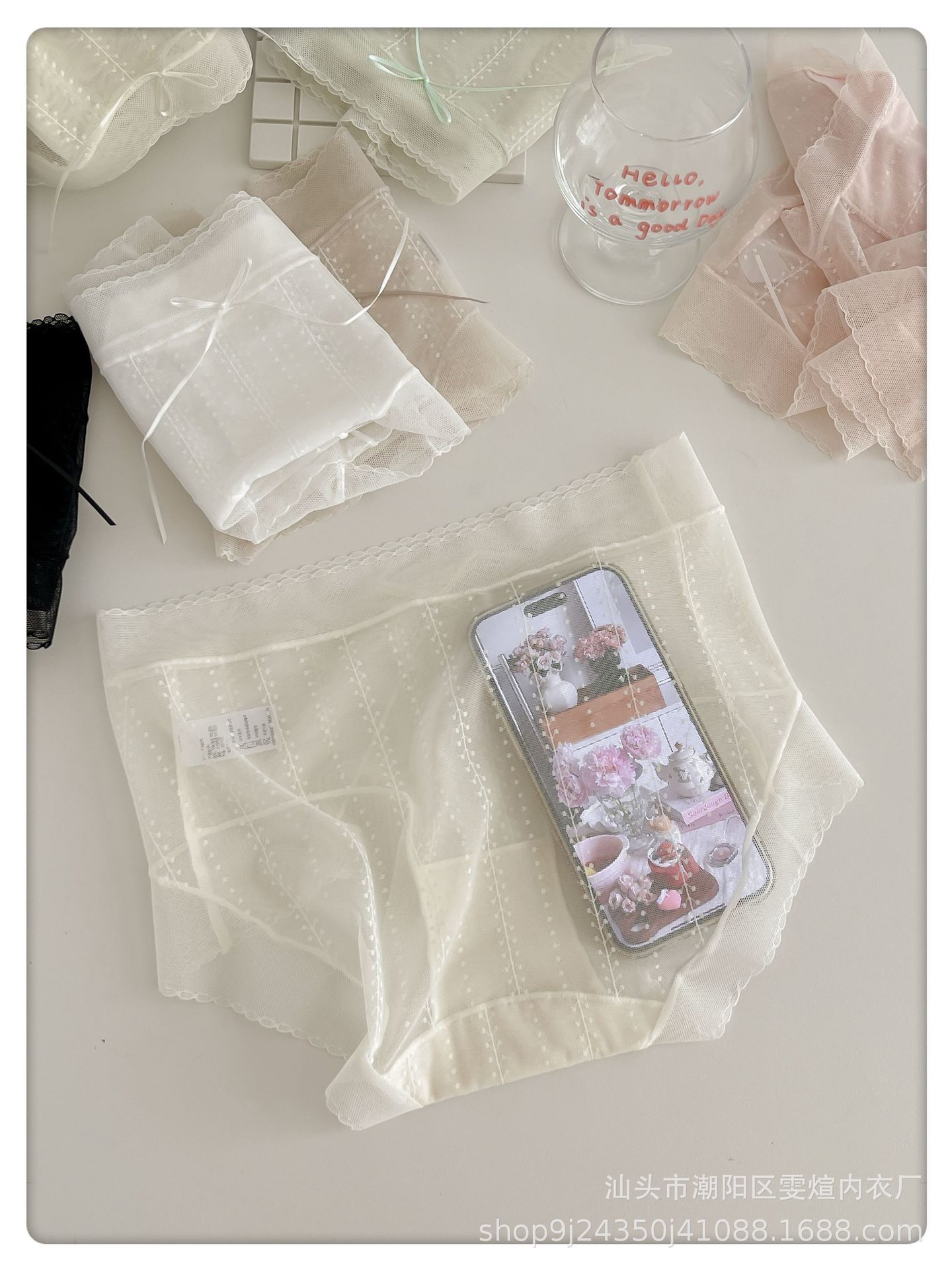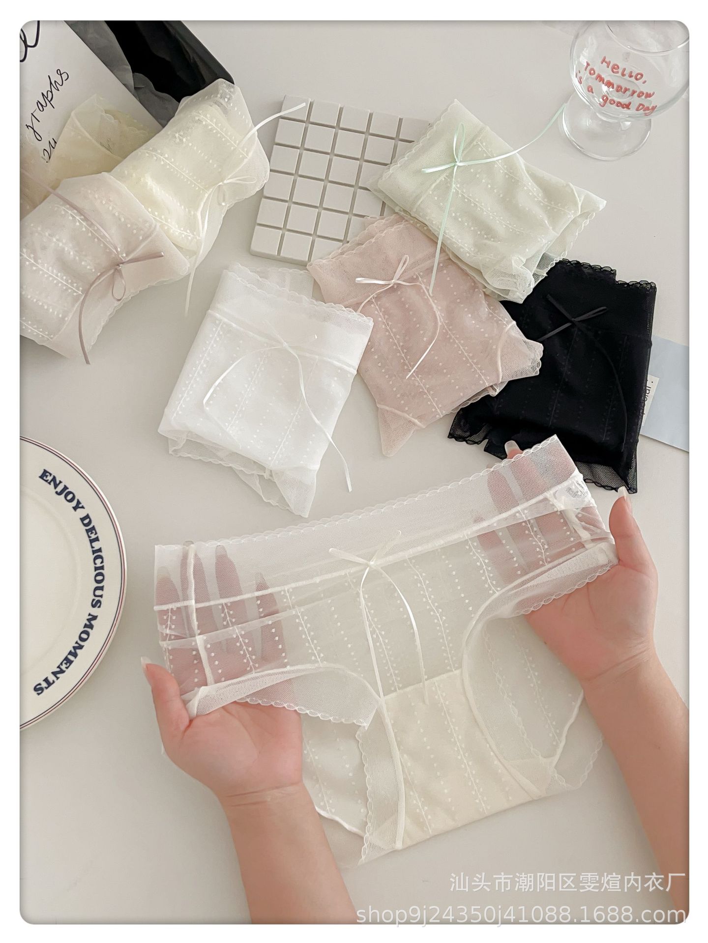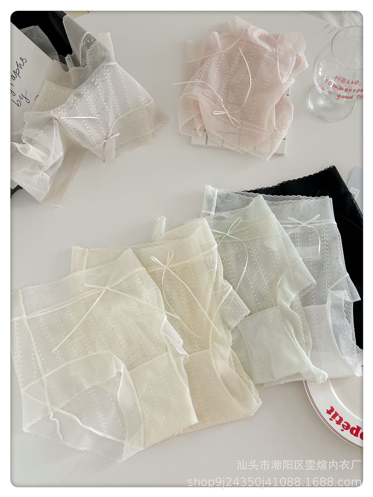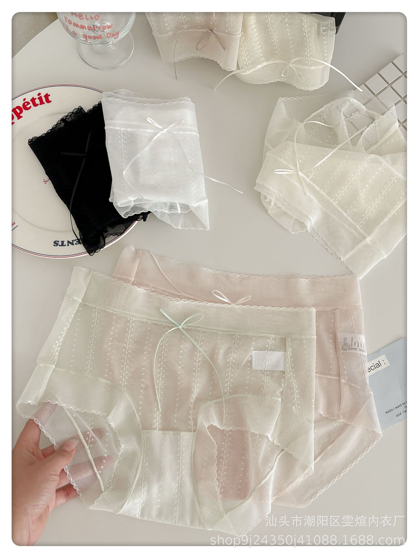 여름용 여성용 미드 웨이스트 투명 섹시 레이스 속옷, 얇고 매끄러운 메쉬, 피부 친화적인 부드러운 순면 삼각형 반바지스토어 가기
